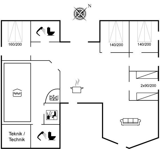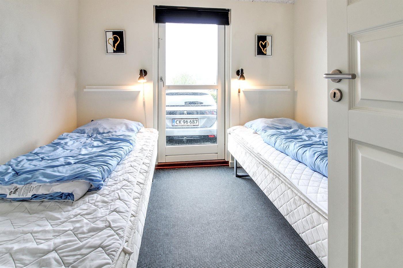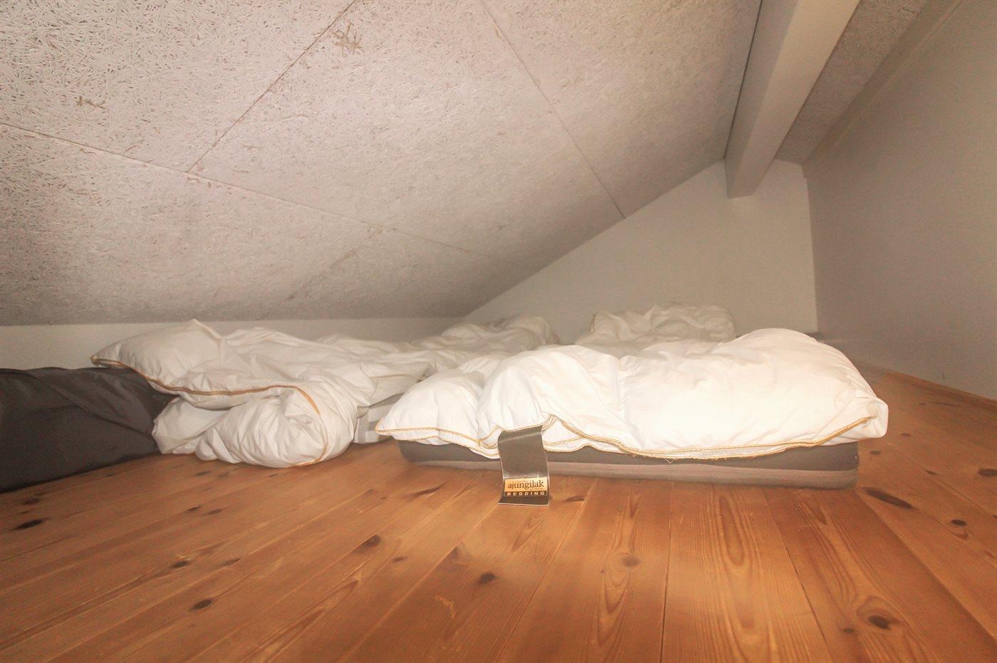 Der er i alt 4 soveværelser. Sovepladserne fordeler sig på: 6 sovepladser i dobbeltsenge. 2 sovepladser i enkeltsenge. 2 sovepladser på madrasser. Derudover er der 1 stk. barneseng.