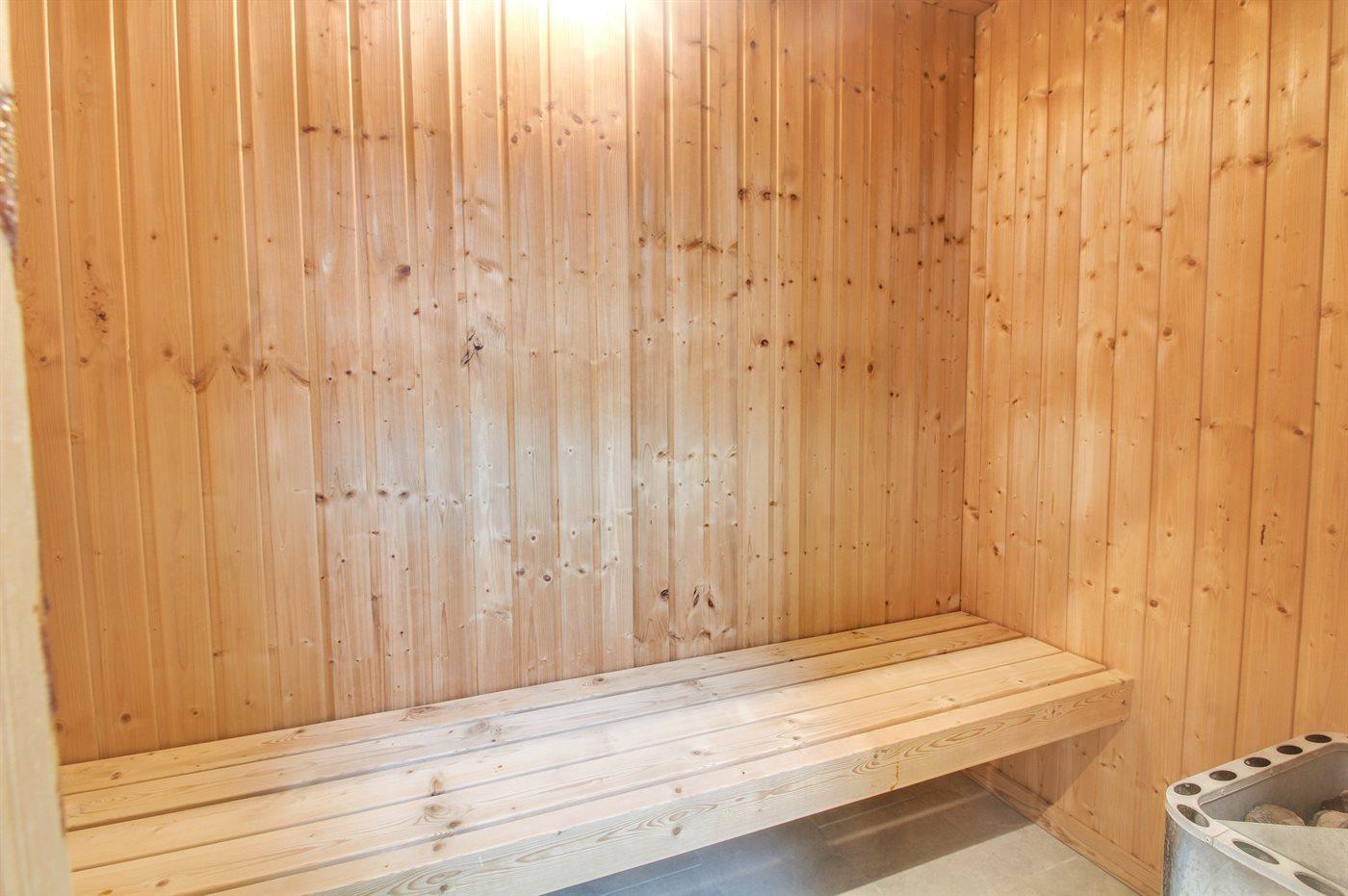 Der er 2 badeværelser med bruseniche og 2 toiletter. Der er gulvvarme på 2 badeværelser. I saunaen er der mulighed for afslapning.