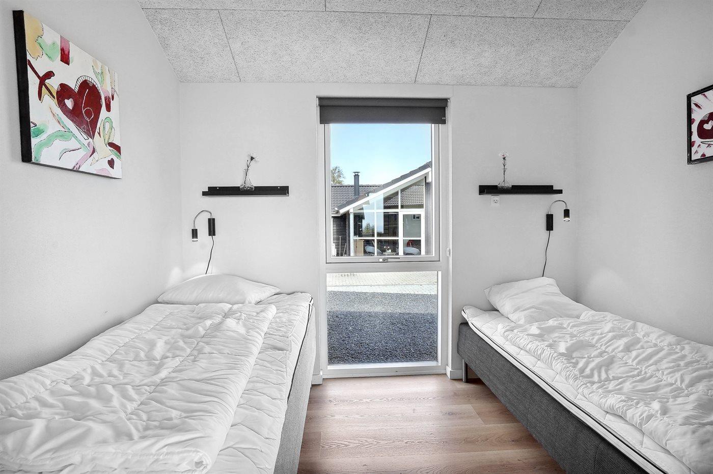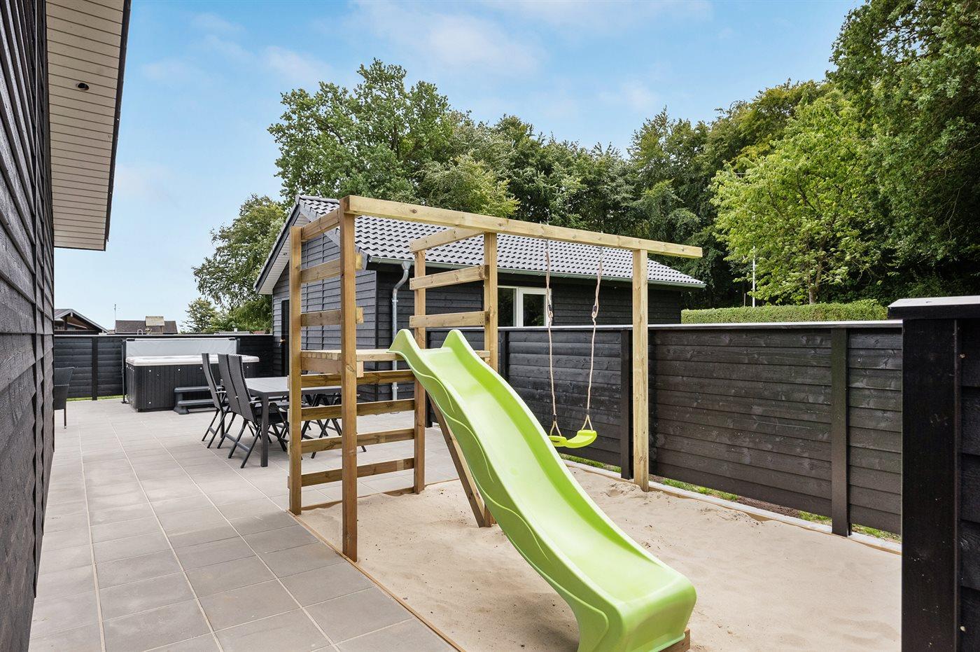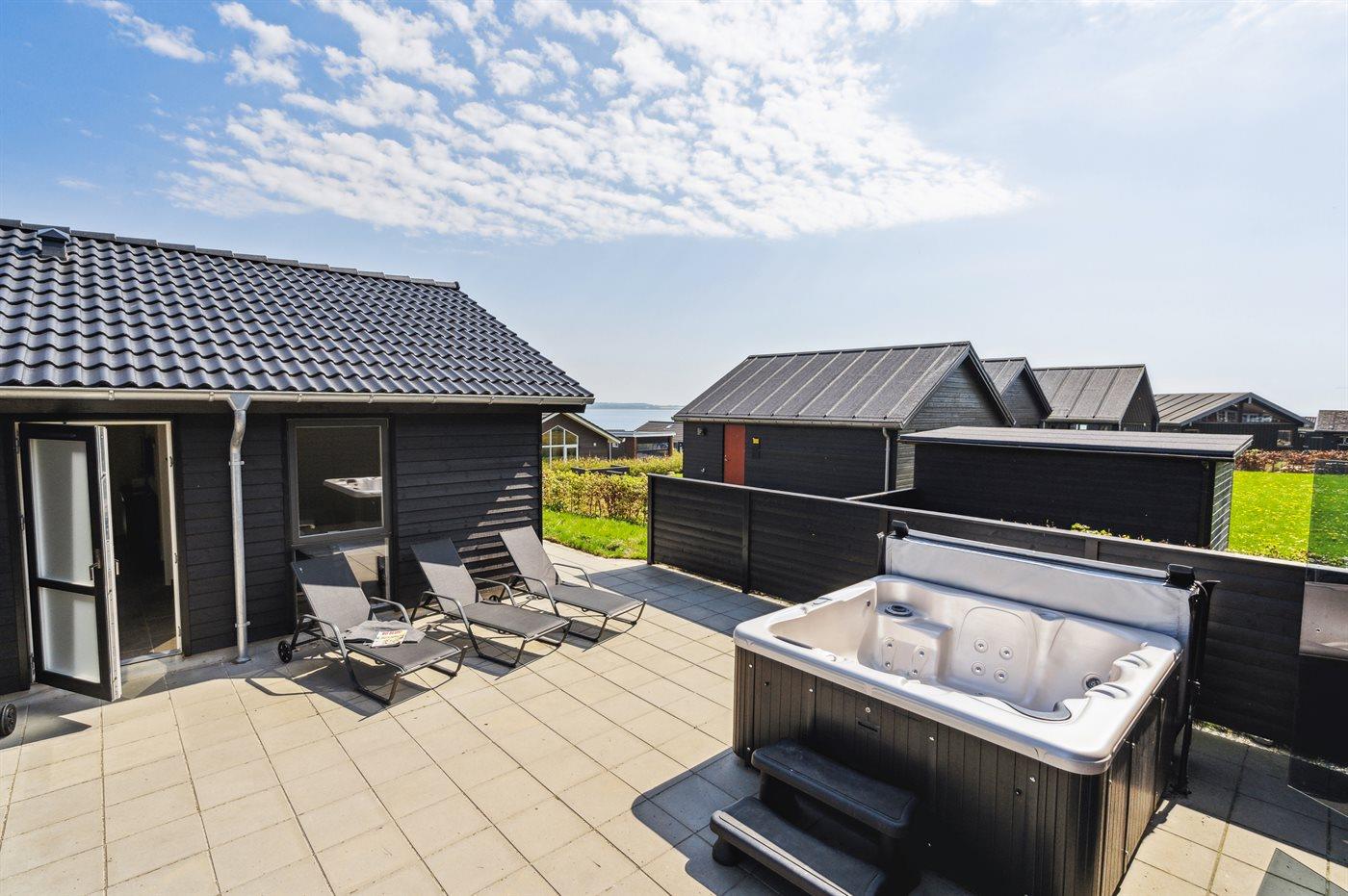 Flot, nyt sommerhus fra 2021 med god plads og gode aktivitetsmuligheder for hele familien. Her er der udsigt til vandet fra såvel huset som fra terrassen, hvor en stor udendørs spa som kan benyttes hele året rundt står til rådighed. Området byder på flot natur og er et rigtigt familievenligt område med en børnevenlig badestrand.