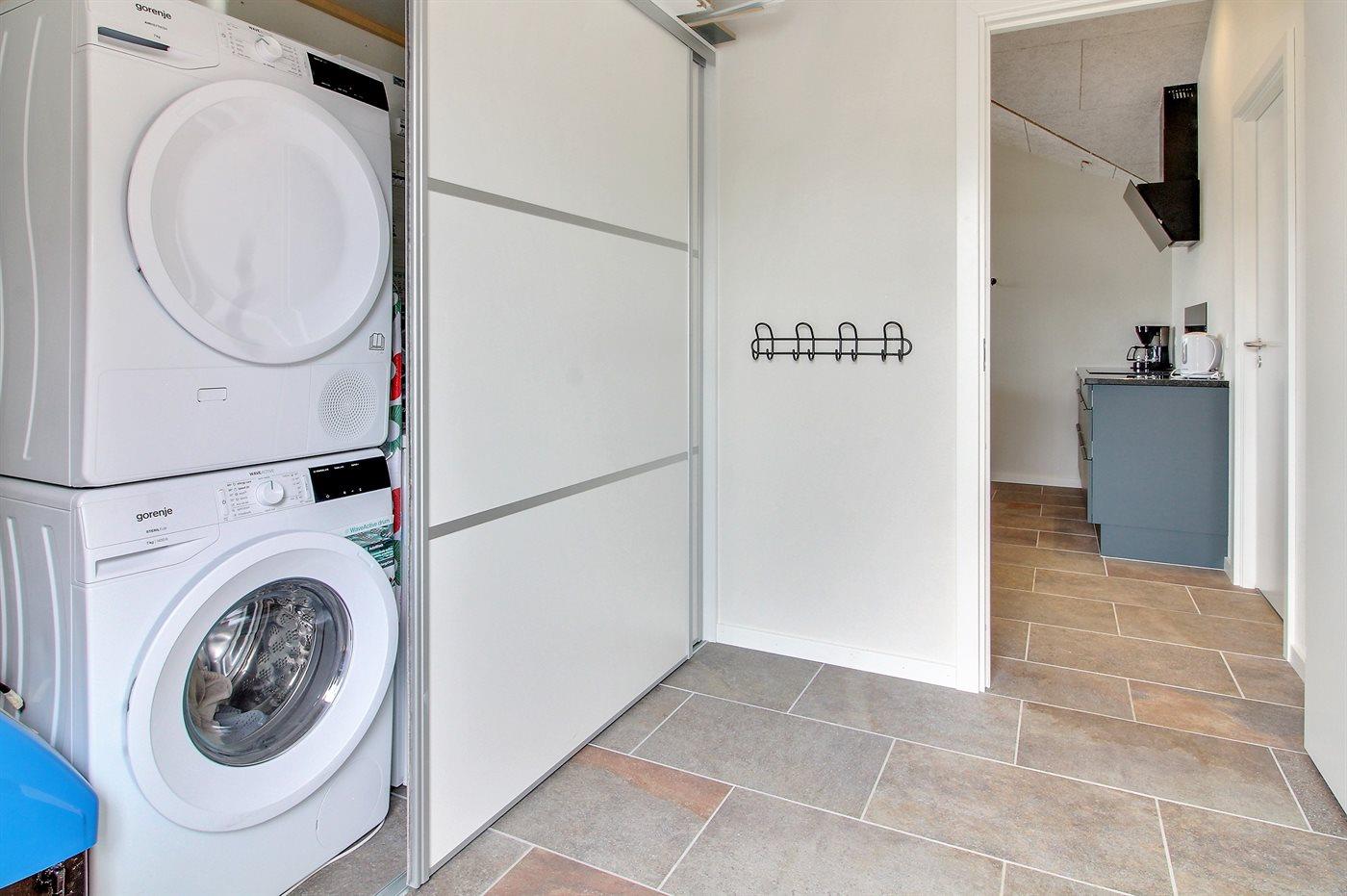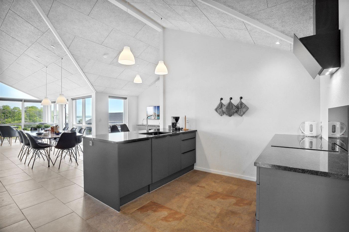 Køkkenet er udstyret med 1 køleskab. Der er 4 keramiske kogeplader, varmluftovn, mikrobølgeovn samt opvaskemaskine.
