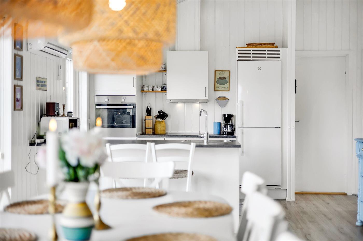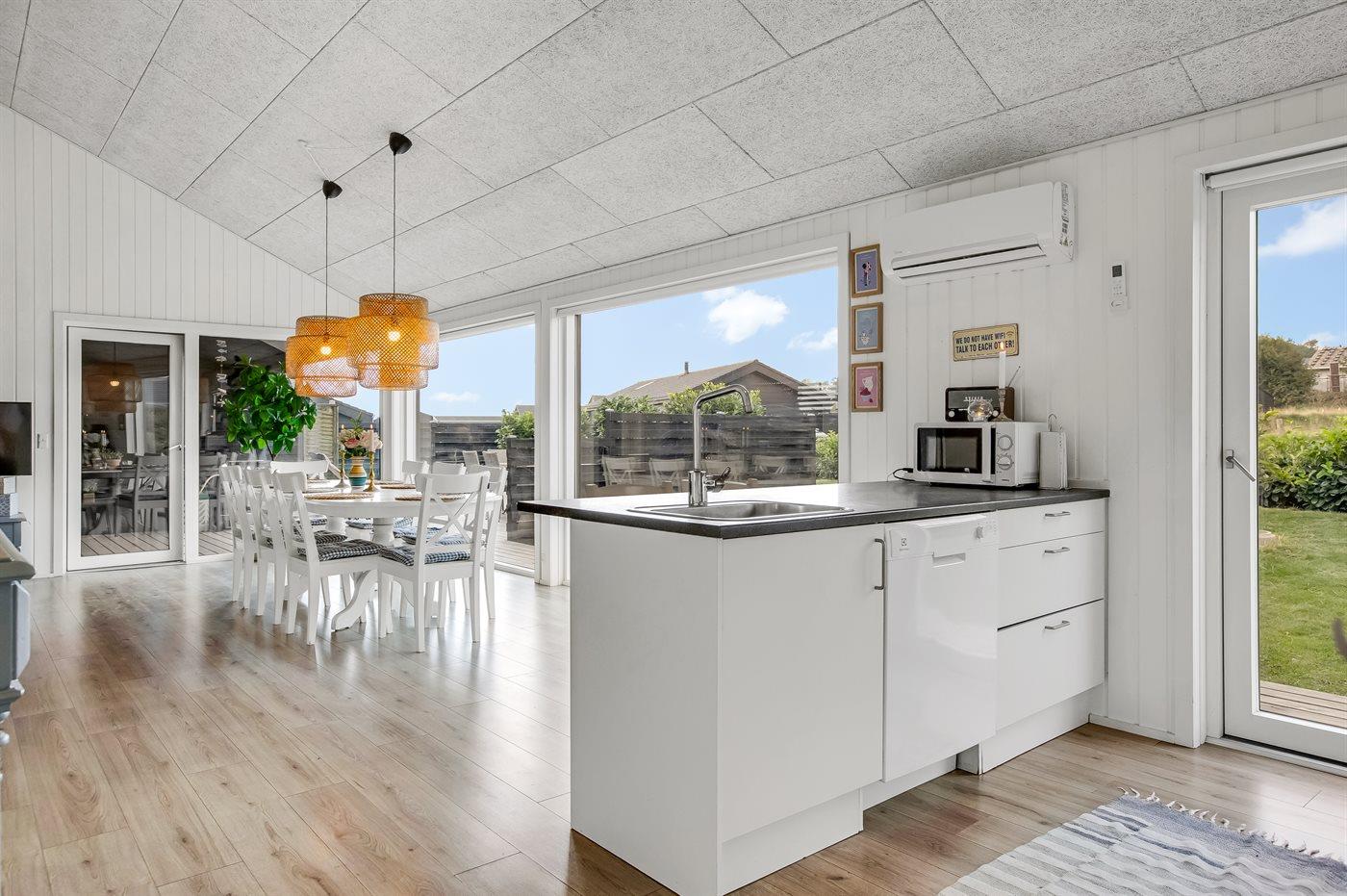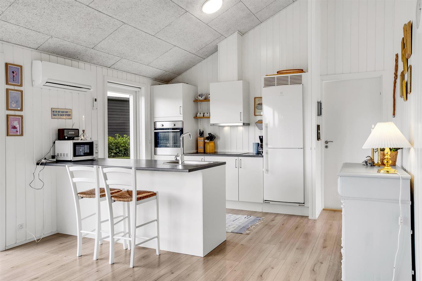 Køkkenet er udstyret med 1 køleskab. Der er 4 induktionskogeplader, varmluftovn, mikrobølgeovn samt opvaskemaskine.