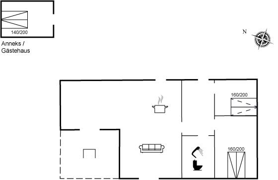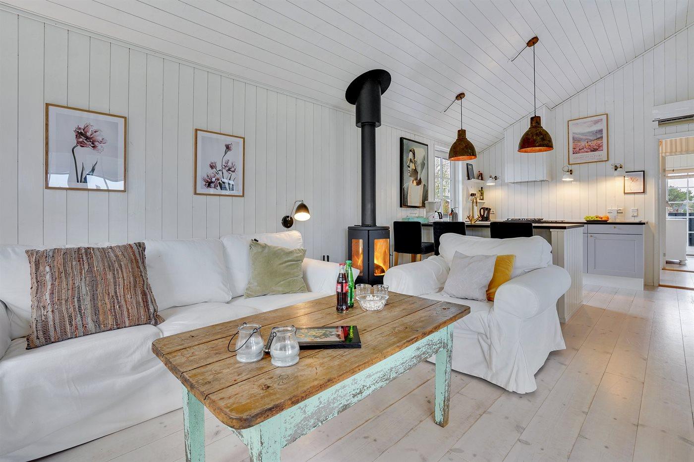 I køkkenalrummet findes der en alkove med mulighed for afslapning og hygge. Huset er indrettet med 2 soveværelser med hver to sovepladser, hvor der fra det ene er direkte udgang til terrasse og udebruser. De sidste 2 sovepladser befinder sig i det hyggelige anneks.