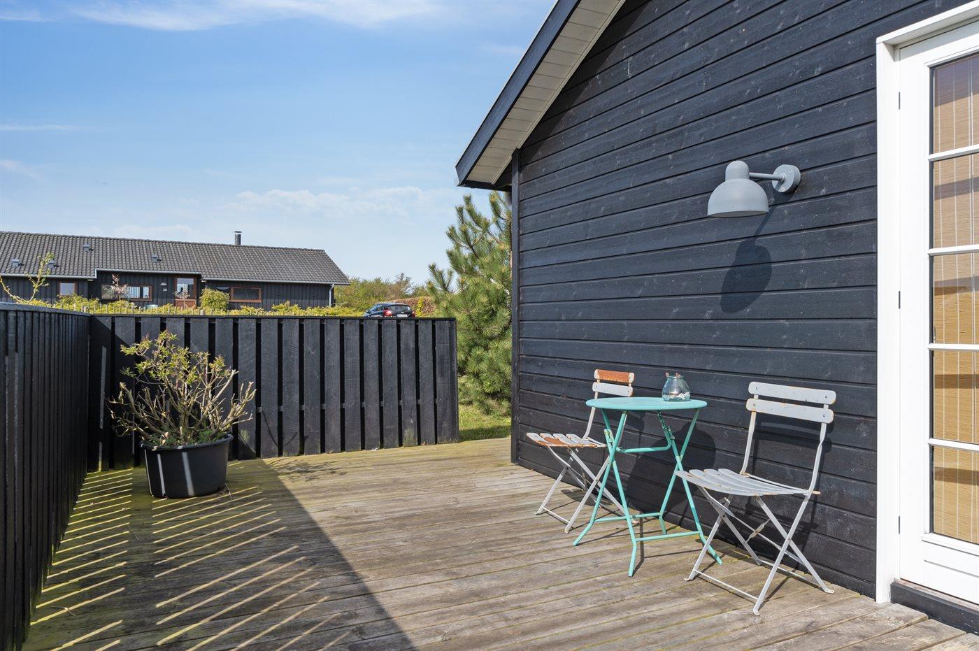 Ferieboligen er beliggende på en 966 m² stor havegrund. Nærmeste forretning er beliggende i en afstand af 2500 m. Til ferieboligen hører 70 m² terrasseareal. Desuden er der 14 m² overdækket terrasse. Heraf i alt 40 m² lukket terrasse. Udendørs bruser. Grill til rådighed. Parkering ved ferieboligen.