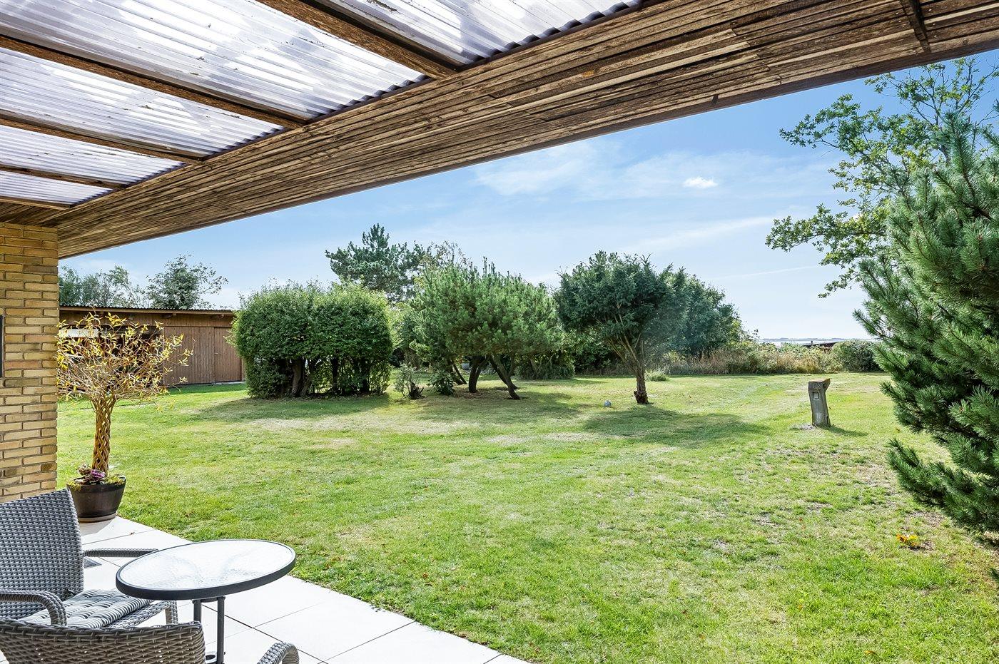 Mod vest findes der en overdækket terrasse med mulighed for at nyde udsigten og de flotte solnedgange. Desuden findes der en flot og lukket atriumgård med udebruser og overdækkede områder, der giver mulighed for at nyde solen helt ugenert og finde læ for vinden på dage, hvor det blæser.