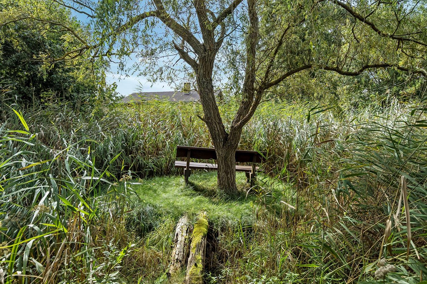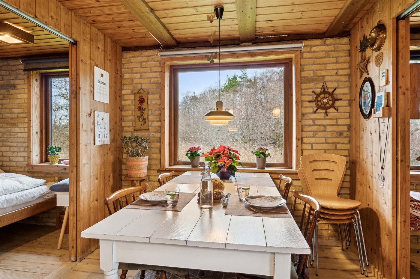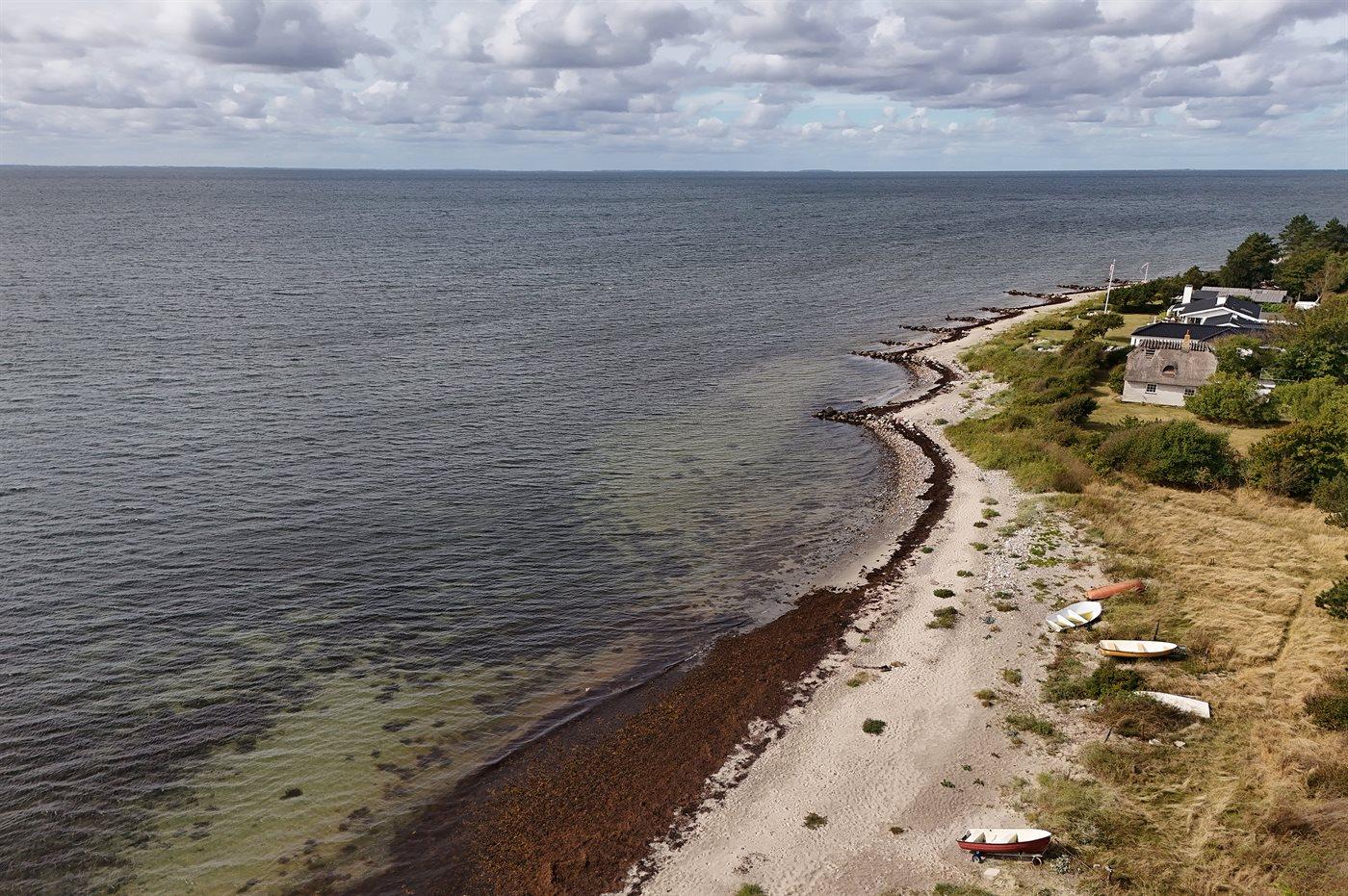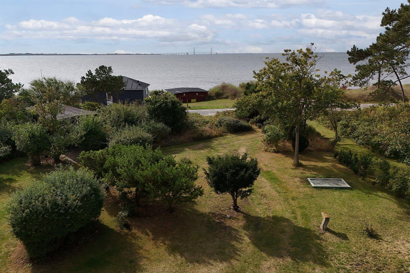 Dette hyggelige sommerhus ligger meget nær stranden med en storslået udsigt til havet og Storebæltsbroen. Huset er beliggende på en 4.599 kvadratmeter stor grund, hvoraf en større del er naturområde med eng og åløb.