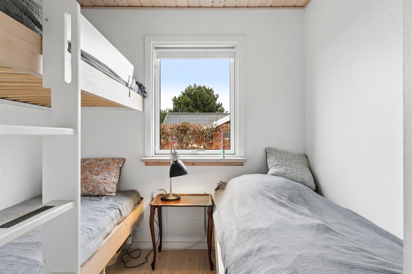 Der er 3 soveværelser i selve huset. 1 soveværelse er med dobbeltseng, 1 med køjeseng og en enkeltseng og i det sidste soveværelse er en køjeseng. I det store anneks er der en dobbeltseng. Badeværelset er med bruseniche. Der er vaskemaskine og tørretumbler.