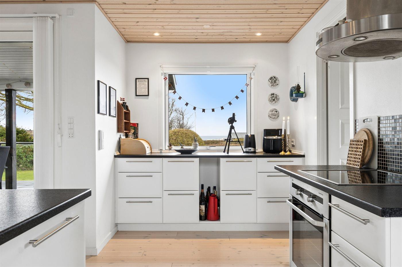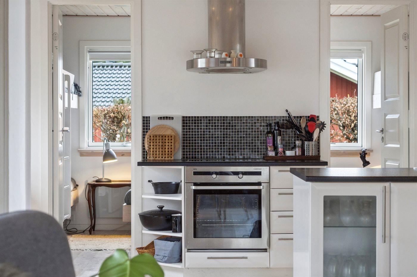 Køkkenet er udstyret med 1 køleskab, varmluftovn, Airfryer samt opvaskemaskine.