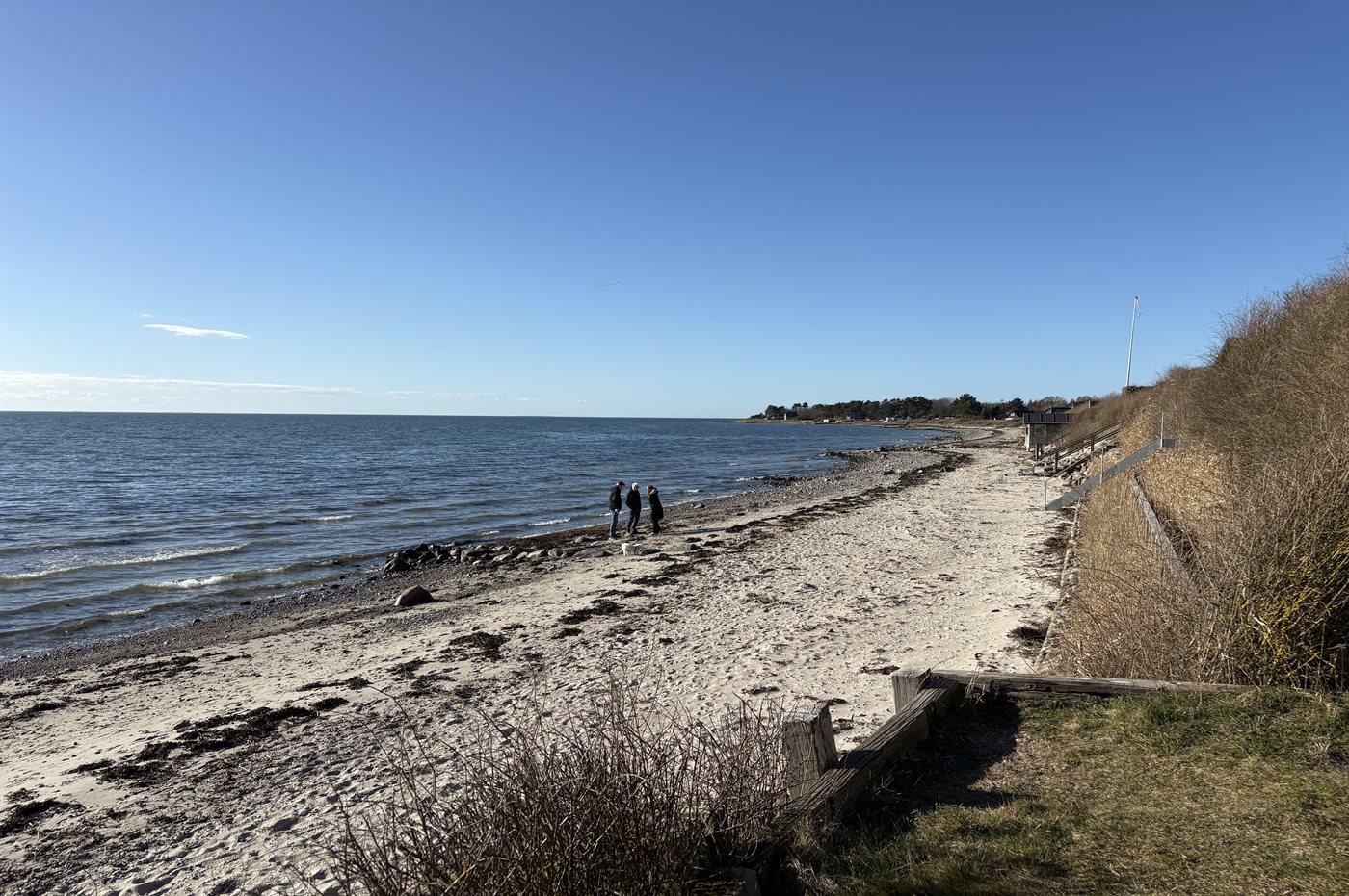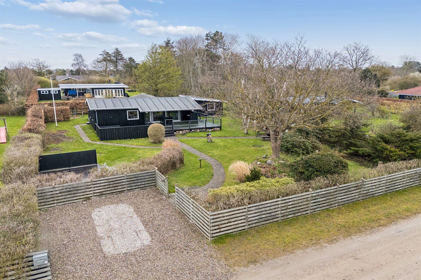 Ferieboligen er beliggende på en 1014 m² stor havegrund. Der er 75 m til havet. Der er en badebro i nærheden. Nærmeste forretning er beliggende i en afstand af 2100 m. Der er en golfbane i en afstand af 8300 m. Til ferieboligen hører 25 m² terrasseareal. Desuden er der 8 m² overdækket terrasse. Heraf i alt 8 m² lukket terrasse. Der er redskabsrum. Shelter. Udendørs bruser. Grill til rådighed. Parkering ved ferieboligen.