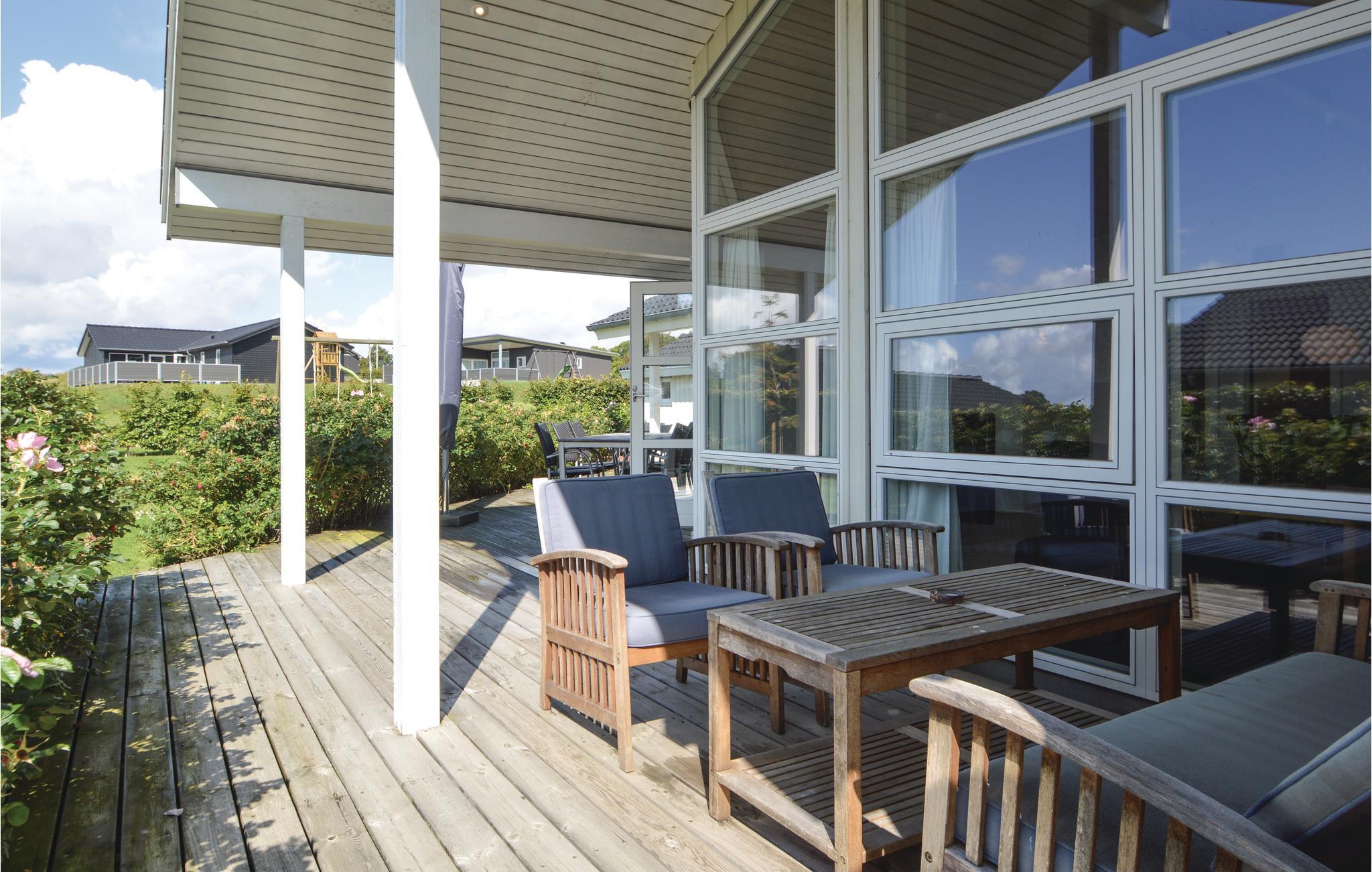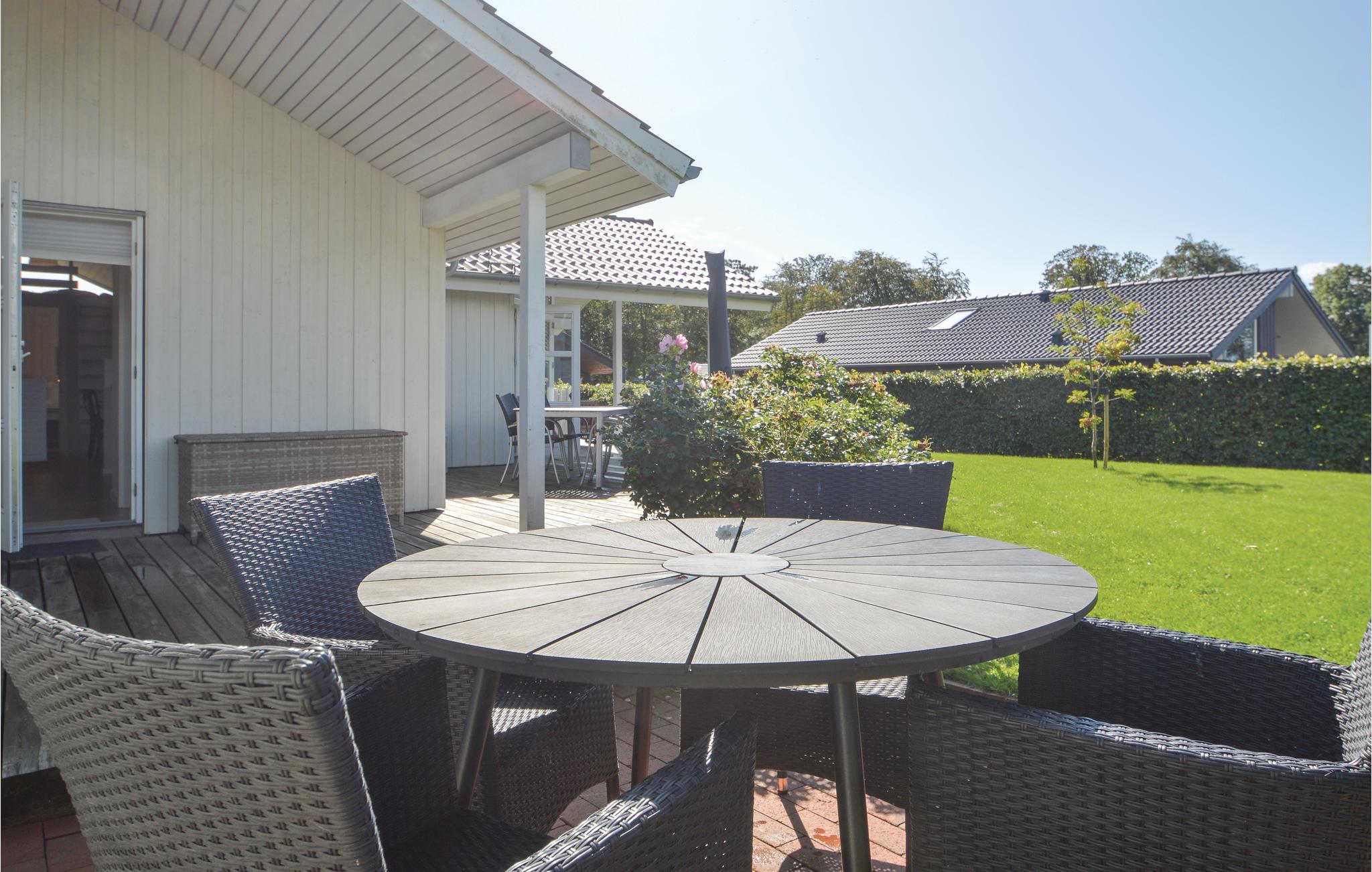 Huset ligger på en rummelig grund med en velplejet græsplæne og flere terrasseområder. Spis morgenmad på den overdækkede terrasse, eller nyd aftentimerne med lækre grillretter under åben himmel, mens I nyder freden. Børnene kan lege på den store grund, mens de voksne benytter de solrige siddepladser.
