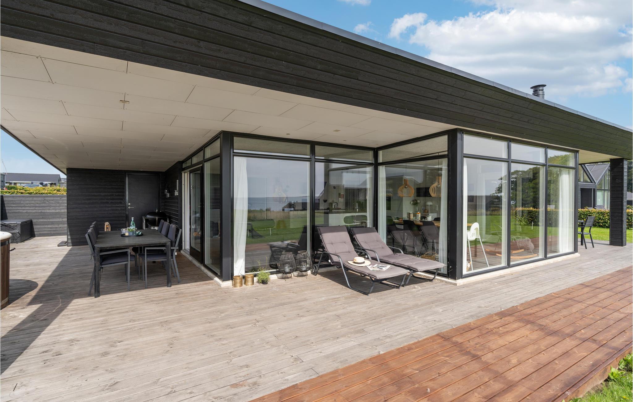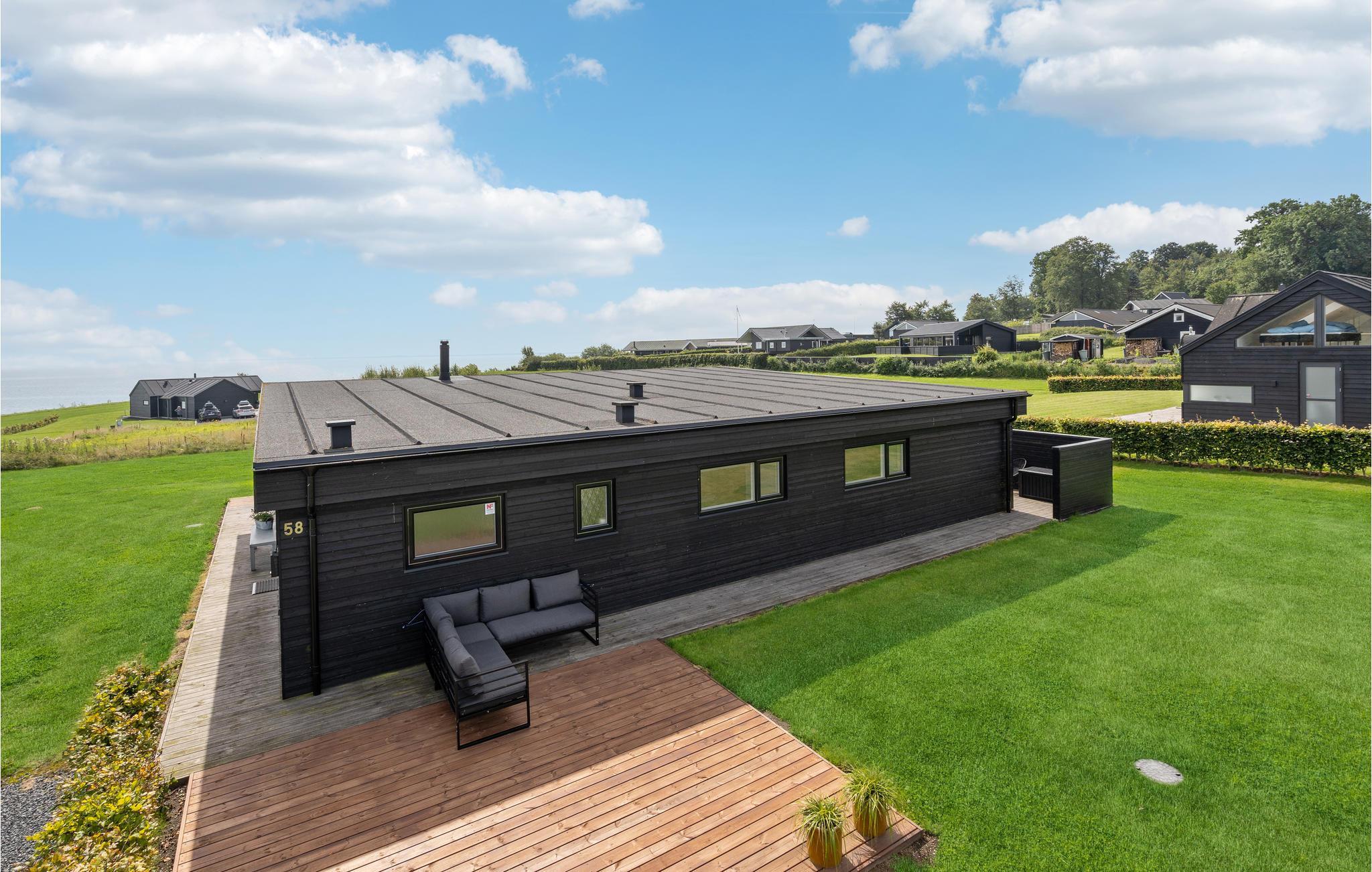 Attraktivt feriehus fra 2016 med panoramaudsigt over Lillebælt, store terrasser og vildmarksbad i rolige naturomgivelser.