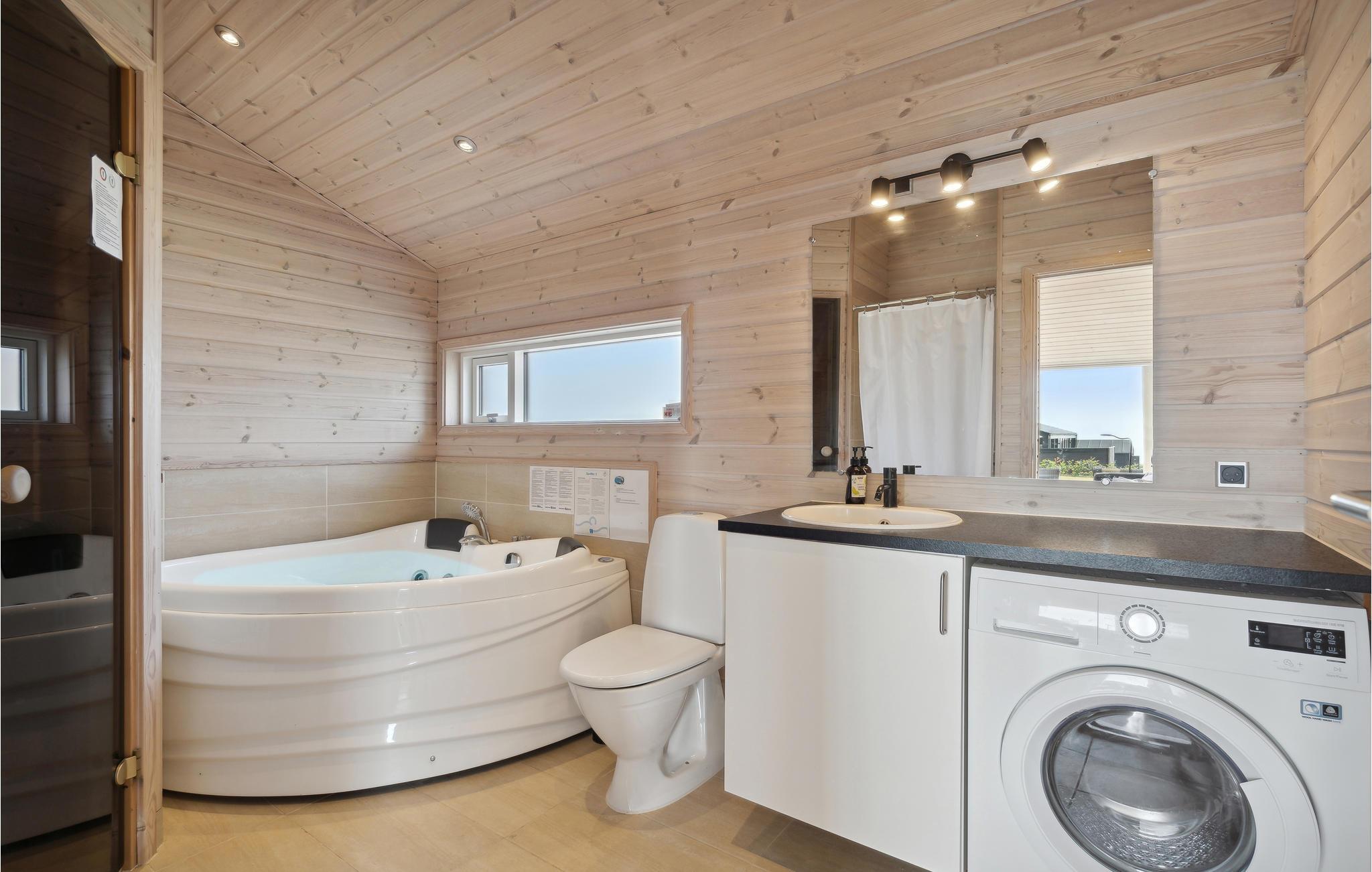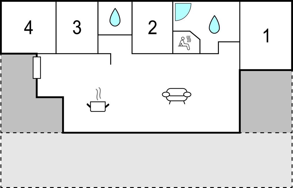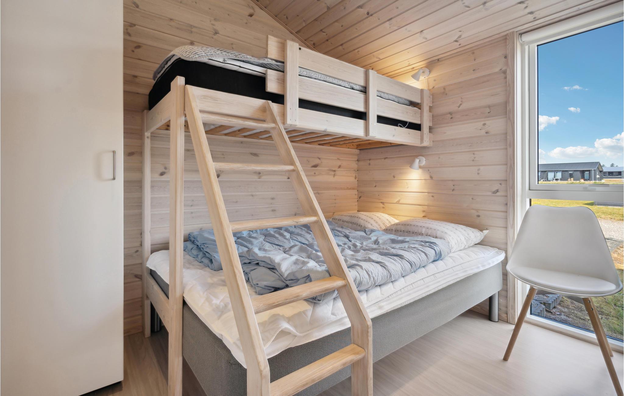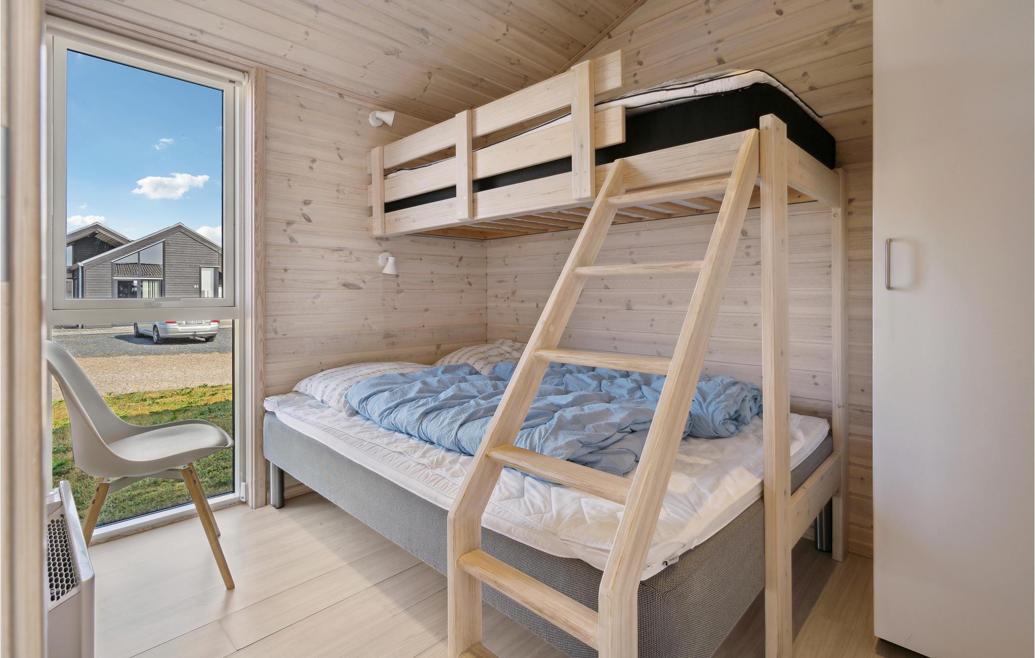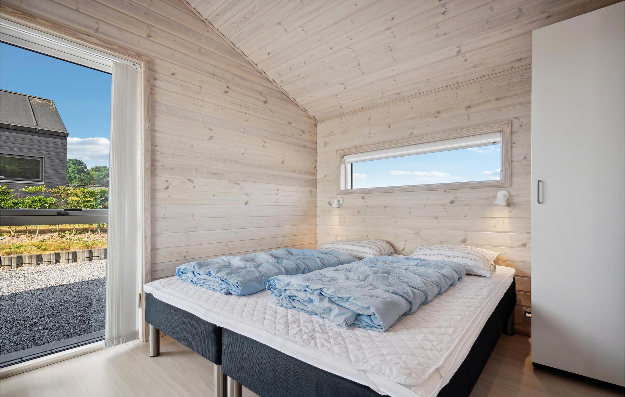 Det store køkken i åben forbindelse med stuen er familiens samlingspunkt, og forvandler selv regnvejrs dag til en rigtig god feriedag, når brændeovnen spreder hygge og varme. De store vinduer i køkken og stue giver et dejligt lysindfald, samtidig med at I har en rigtig fin udsigt ud over området. Soverummene er velindrettede med gode senge og i S2 og S3 er der en køjeseng så to gange tre personer kan sove i samme rum. Der er dejlig havudsigt fra både S1 og S4. Huset er bygget i kvalitetsmaterialer, b.la. med lækre armaturer i badeværelserne og køkken og der er selvfølgelig gulvvarme i begge badeværelser. Fra det ene badeværelse med dejligt spabad, er der adgang til saunaen så her er der alle muligheder for wellness.