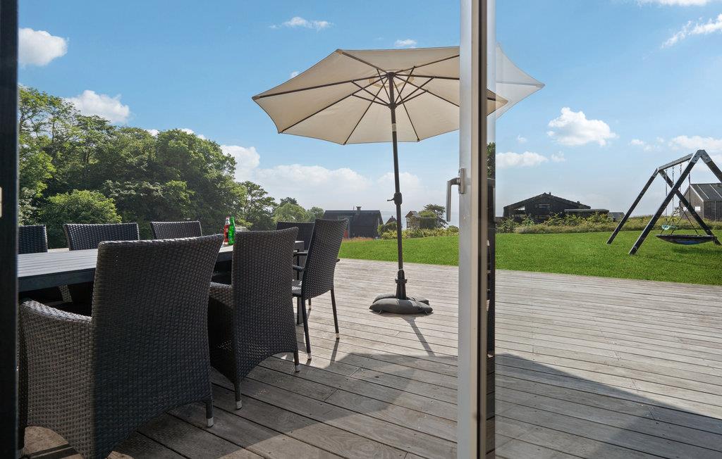 Luksusferiehus ved Kelstrup Strand med panoramaudsigt, udendørs wellness og to store terrasser.