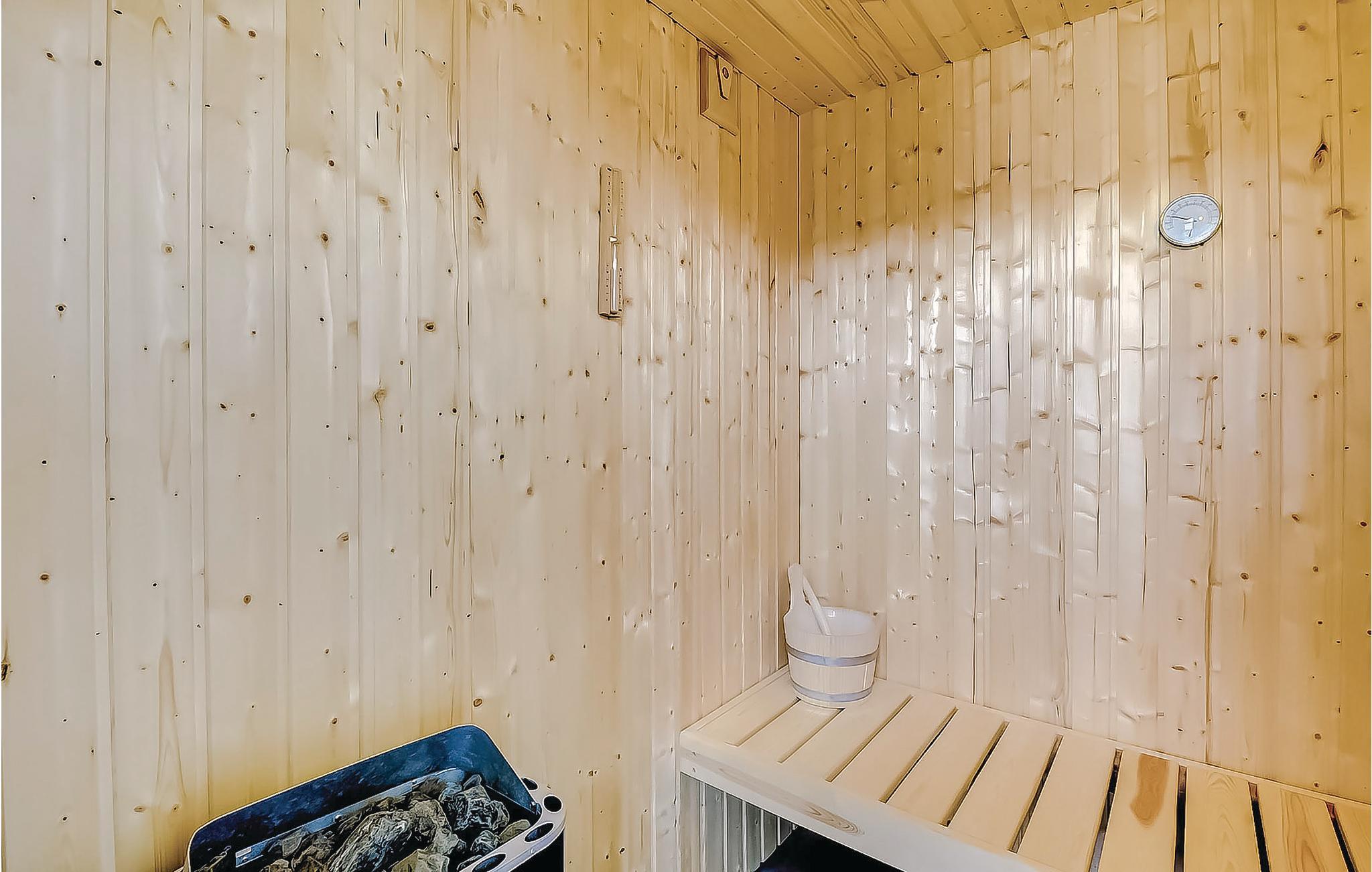 Attraktivt luksusferiehus bygget i 2014 med energibesparende tiltag. Der er terrasse på næsten alle sider af huset, så både morgen- og aftensol kan nydes ude fra tidligt forår til sent efterår. Den store have er anlagt med græs, og der er gyngestativ og sandkasse til børnene samt solsenge og moderne havemøbler til de voksne. Når I har været en tur i vandet, som kun ligger 350 m væk, kan I nyde et afslappende bad i spaen, eller få varmen i kroppen i saunaen. Det store køkken/alrum er familiens samlingspunkt i huset, køkkenet fremstår flot i hvidt med en sort bordplade. I tv-stuen er der internetadgang, så der kan surfes på nettet, findes musik eller underholdning ligeledes er der Chromecast - mulighed for underholdning fra mobile enheder direkte til tv. De store vinduer i køkken-/stueområdet giver et skønt lysindfald. Huset er møbleret i moderne, skandinavisk stil. Soveværelserne er velindrettede med særdeles gode senge og madrasser, således at alle kan få en god nattesøvn. Hemsen er stor og rummelig, og mon ikke mindst børnene vil finde det meget fornøjeligt at opholde sig der. Overalt er der benyttet kvalitetsmaterialer, og så er der selvfølgelig to badeværelser i feriehuset. Der er tænkt på at holde energiforbruget så lavt som overhovedet muligt, bl.a. med luft til vand varmeanlæg. Gratis trådløst internet er en selvfølge.
