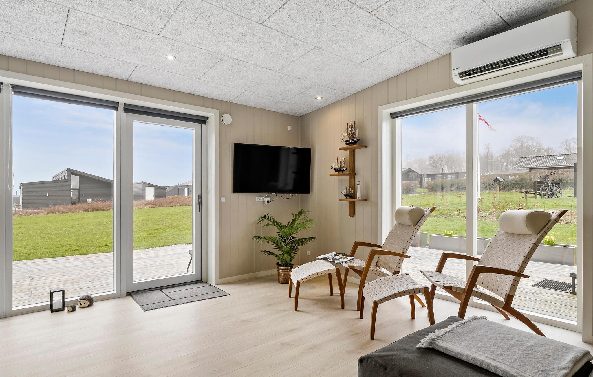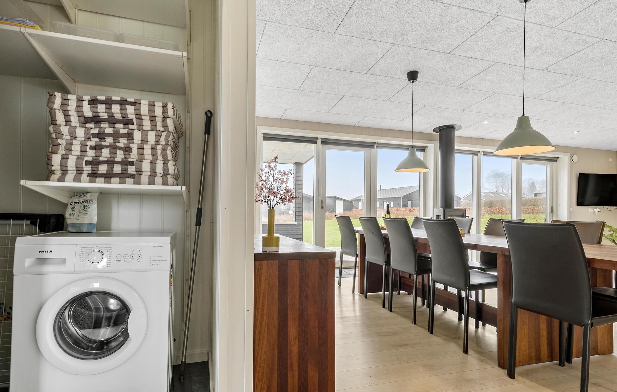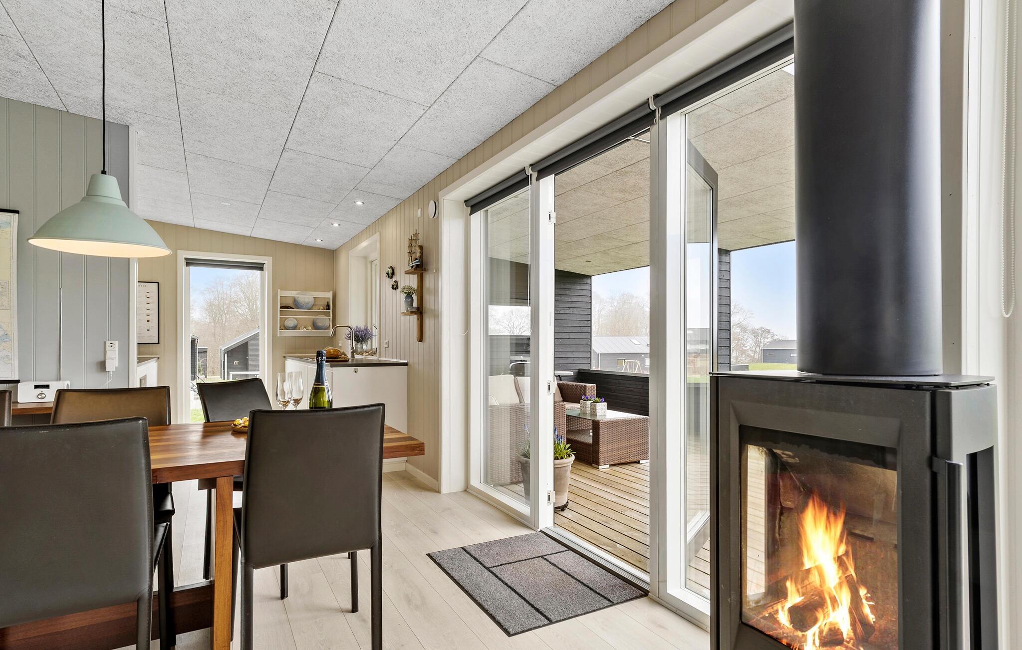 Dette hus har en helt fantastisk beliggenhed kun en lille gåtur fra stranden. Her kan I slappe af i den lyse opholdsstue efter en aktiv dag, nyde måltiderne med smuk udsigt over vandet og planlægge fremtidige eventyr, mens ilden knitrer i brændeovnen. Det store køkken/alrum er familiens samlingssted og forvandler selv en regnvejrsdag til en rigtig god feriedag. De store vinduer i køkken og stue giver et dejligt lysindfald, samtidig med at I har udsigt ud over området og ud til Lillebælt.