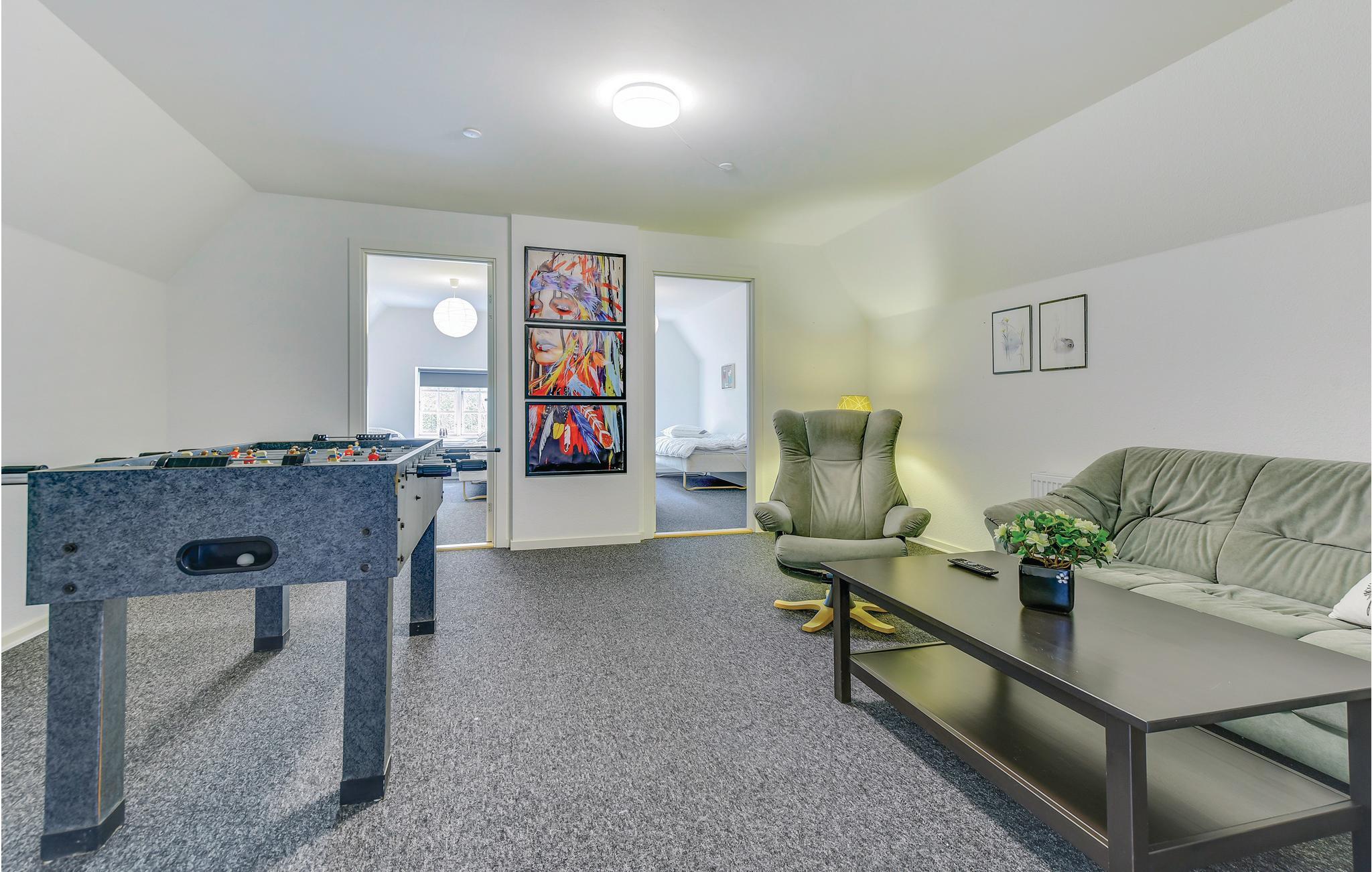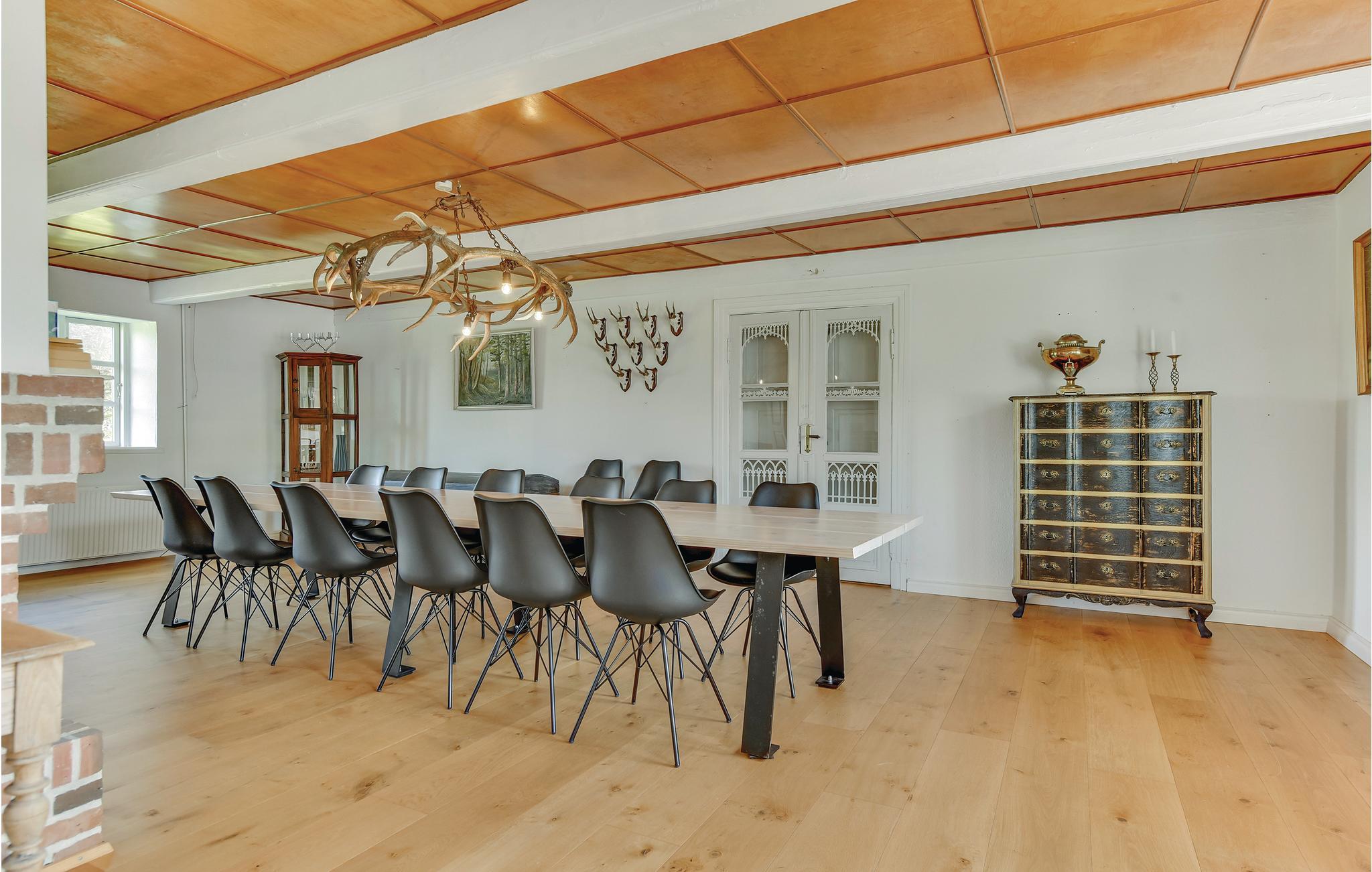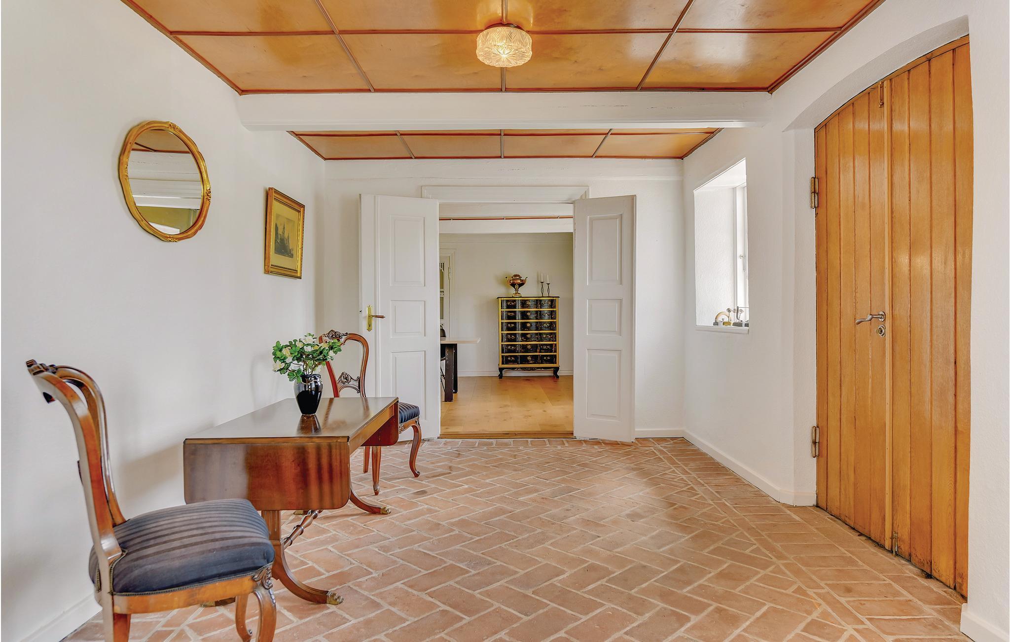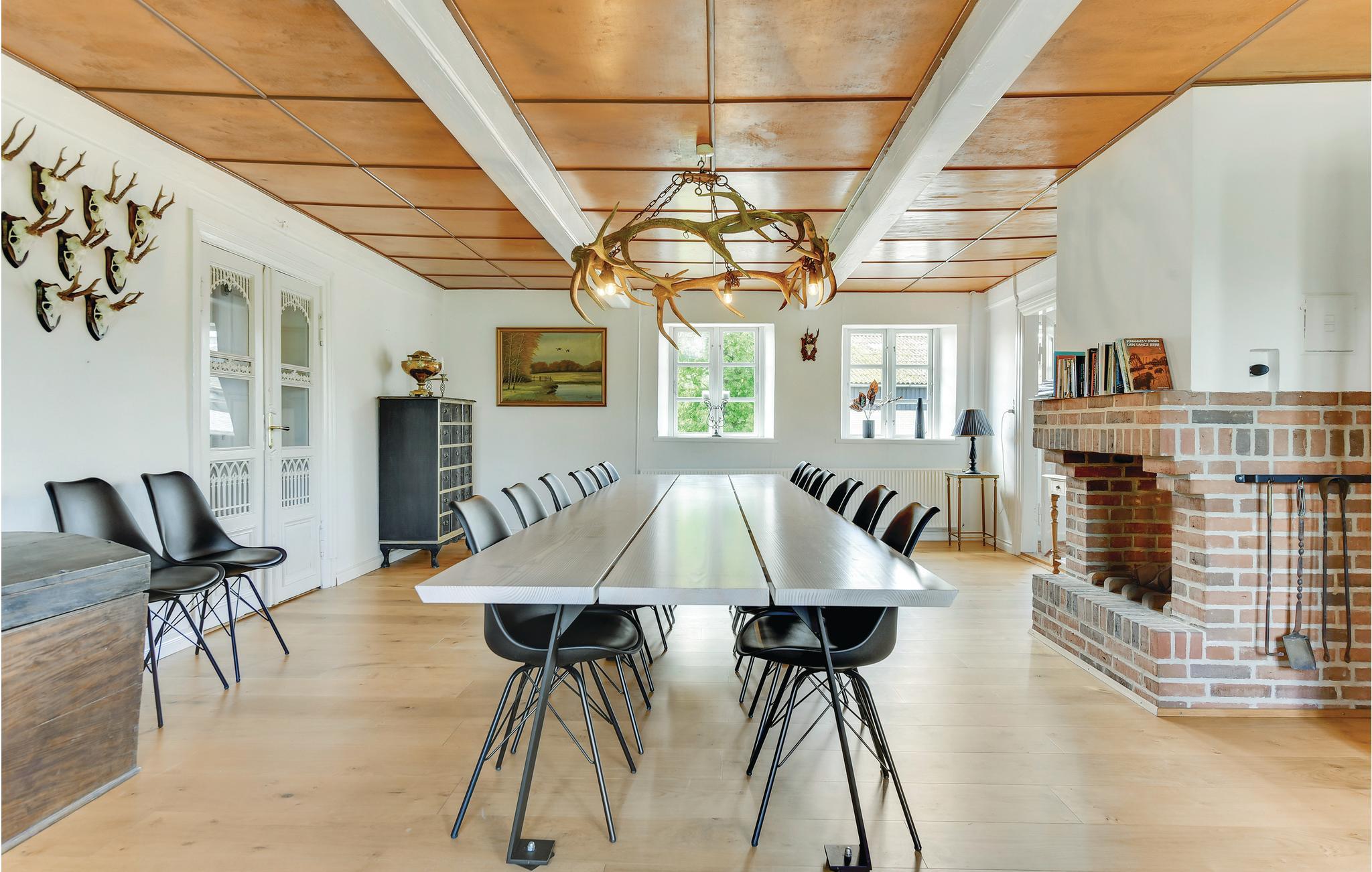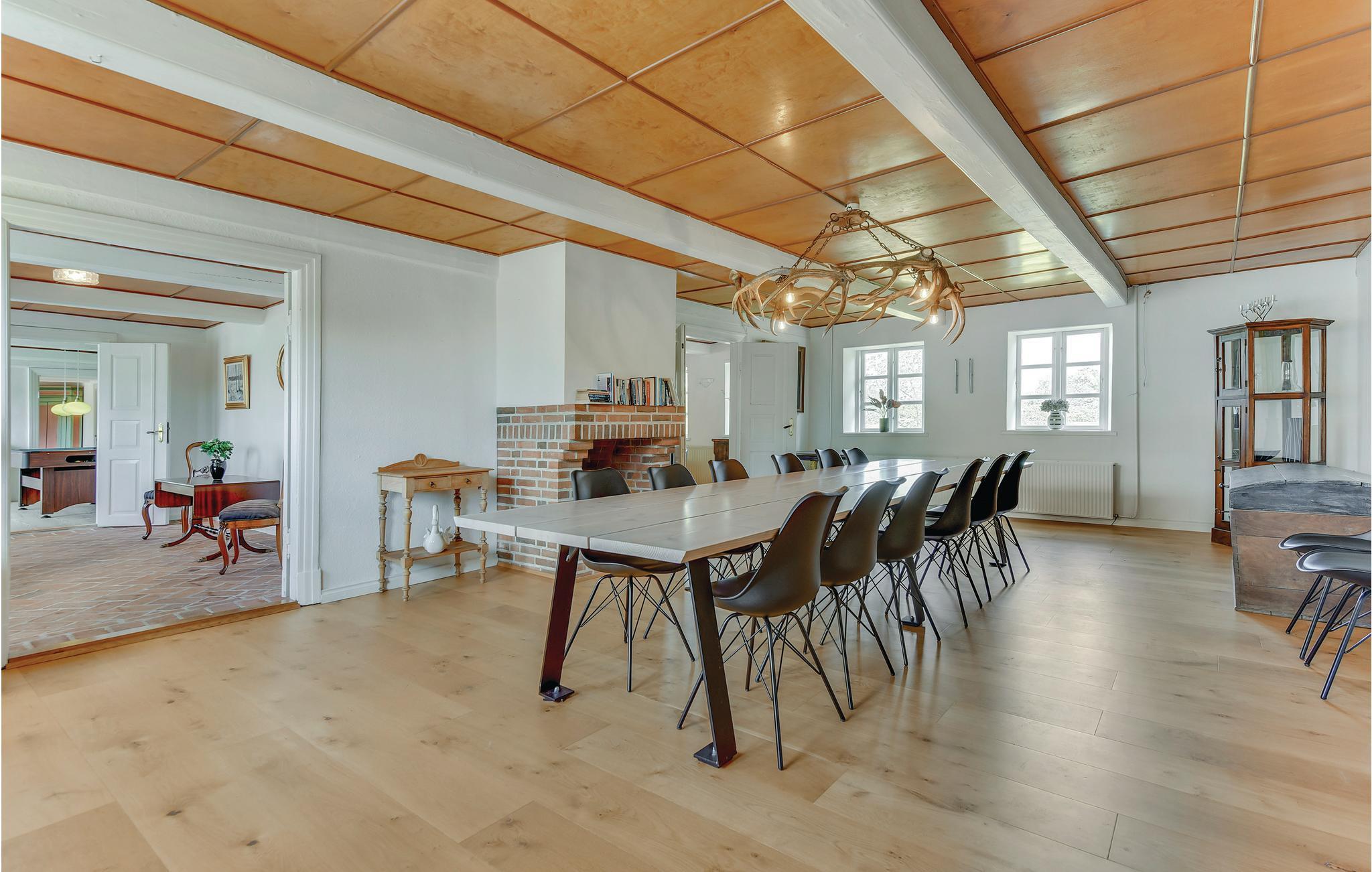 Denne unikke bolig ligger på en stor, parklignende grund, og fremstår som et yderst charmerende ferieidyl efter en nænsom modernisering. Her finder I aktivitets- og udfoldelsesmuligheder for hele familien. I stueetagen ligger køkkenet og husets to badeværelser samt et af de seks soveværelser. Derudover finder I hele fire stuer, hvor der i det ene er billard og en jagtstue med plads til bespisning af alle husets gæster. Lige velegnet til større familiesammenkomster, som til en hyggelig intim middag i venners lag. Førstesalen er der to adgange til via trapper, heraf er den ene lidt stejl. De to afdelinger indeholder henholdsvis to og tre soveværelser samt yderligere et opholds- og aktivitetsrum med bordfodbold.