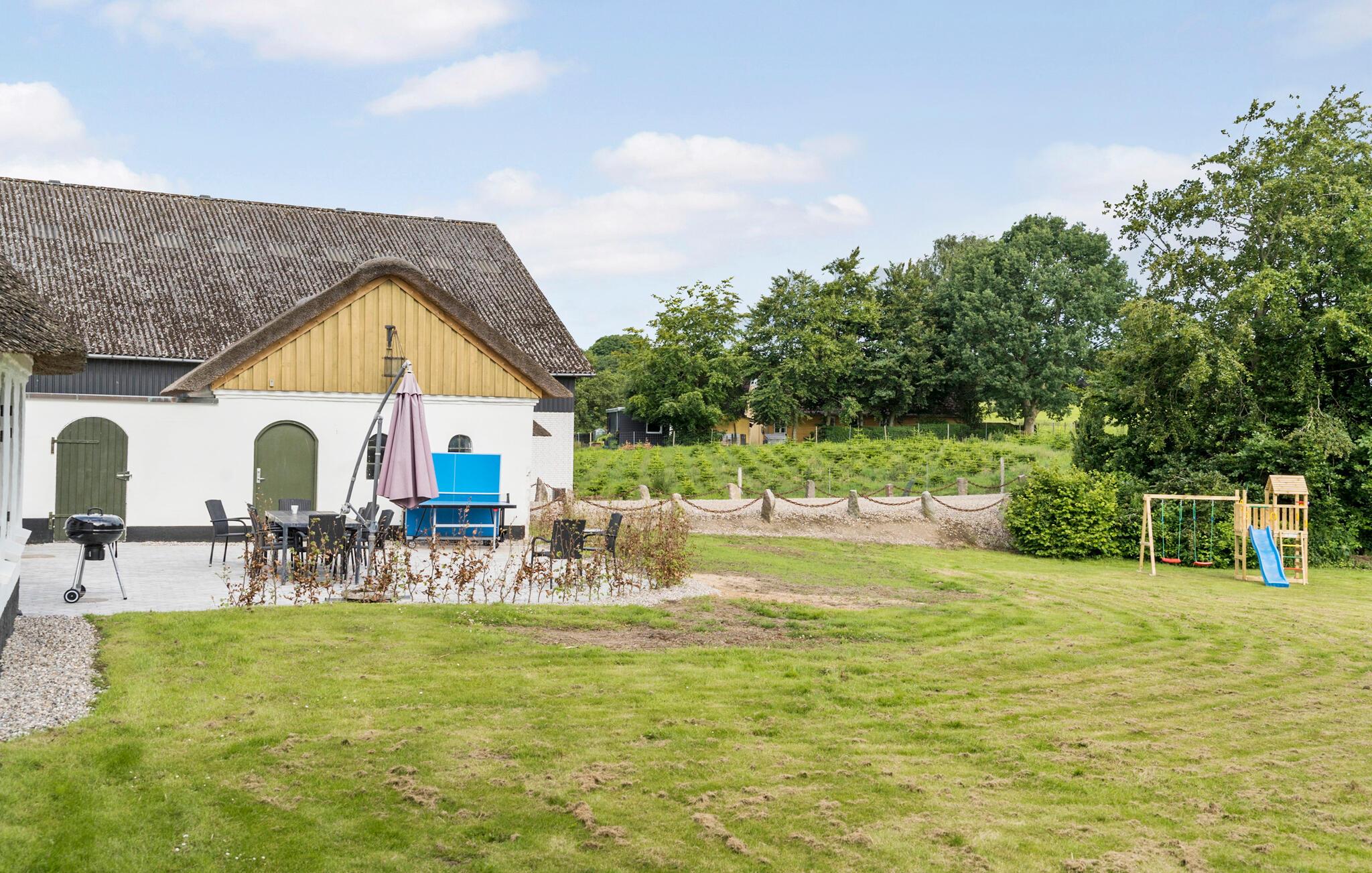 Charmerende og stråtækt landejendom nær Kelstrup Strand med aktiviteter for hele familien.