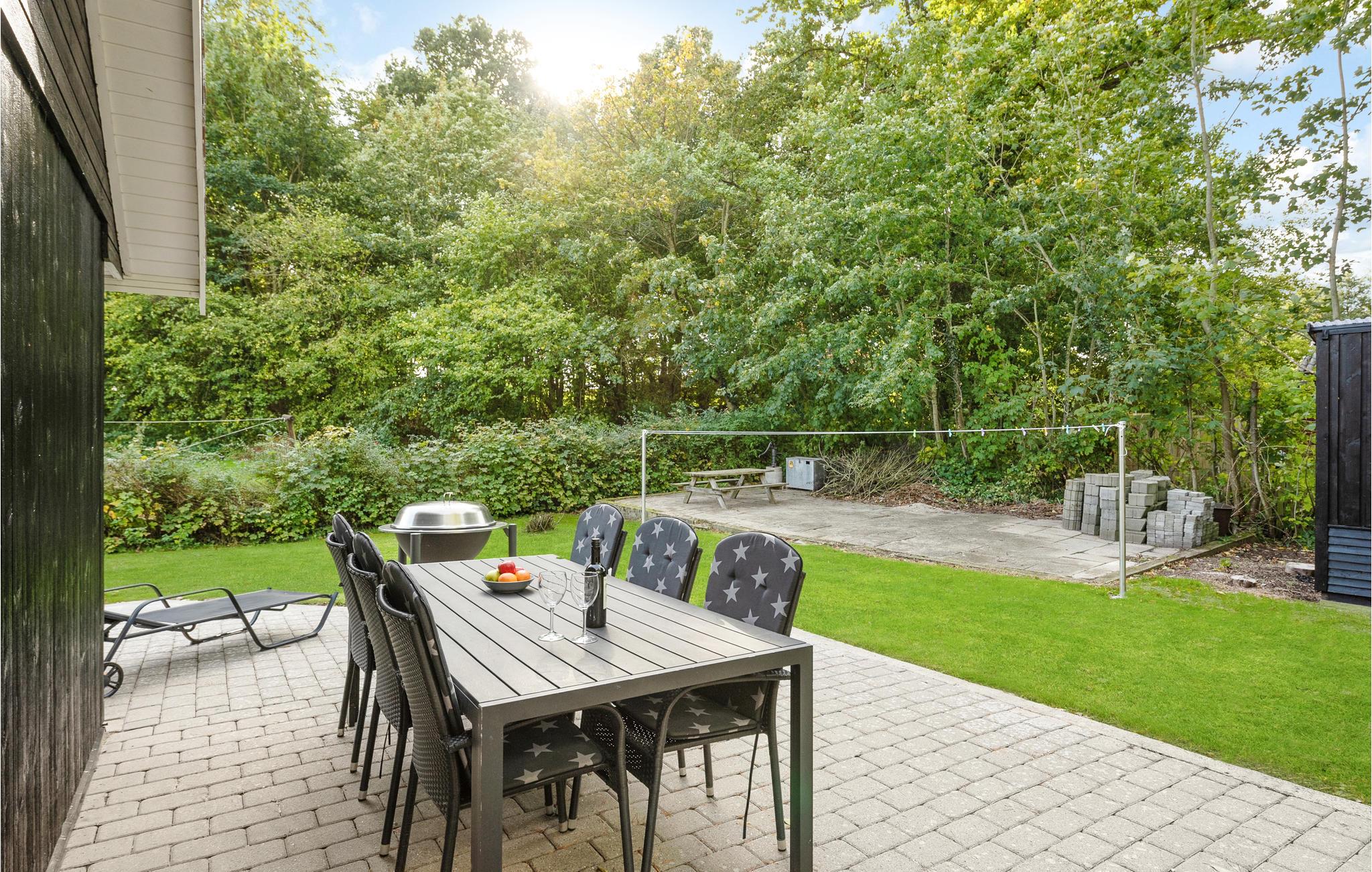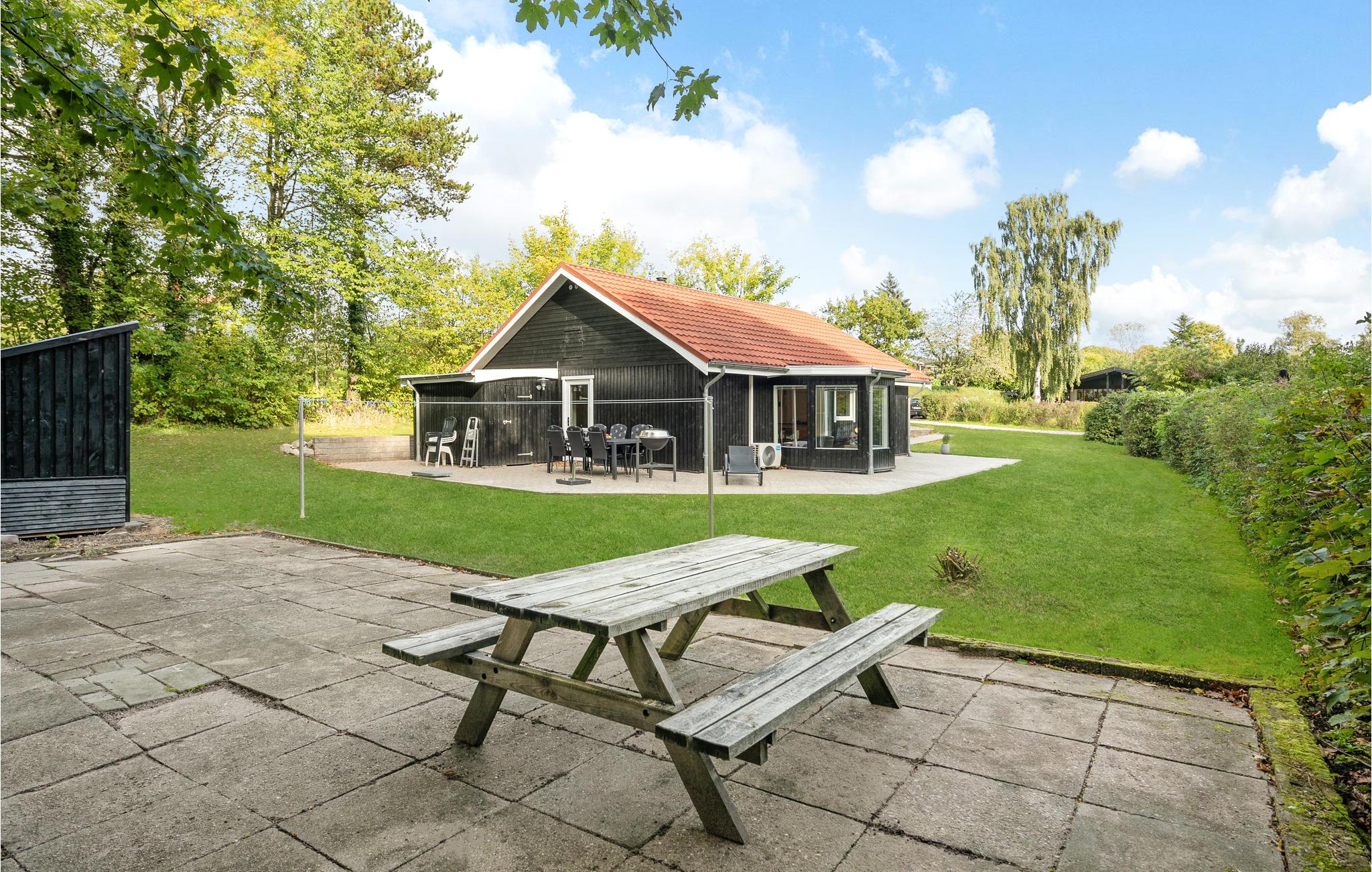 Hyggeligt feriehus i Kelstrup, kun 300 m fra børnevenlig strand med roligt vand og flere terrasser til solrige dage.
