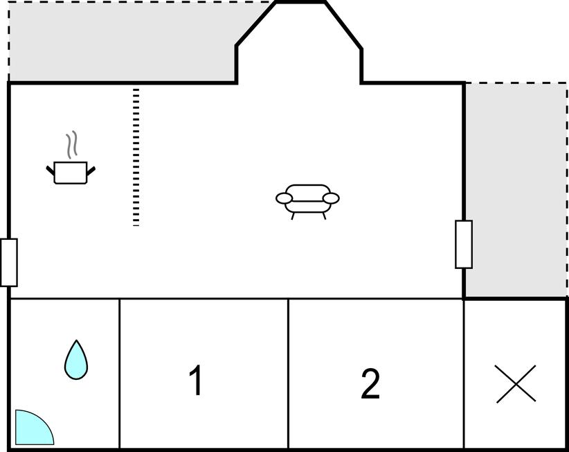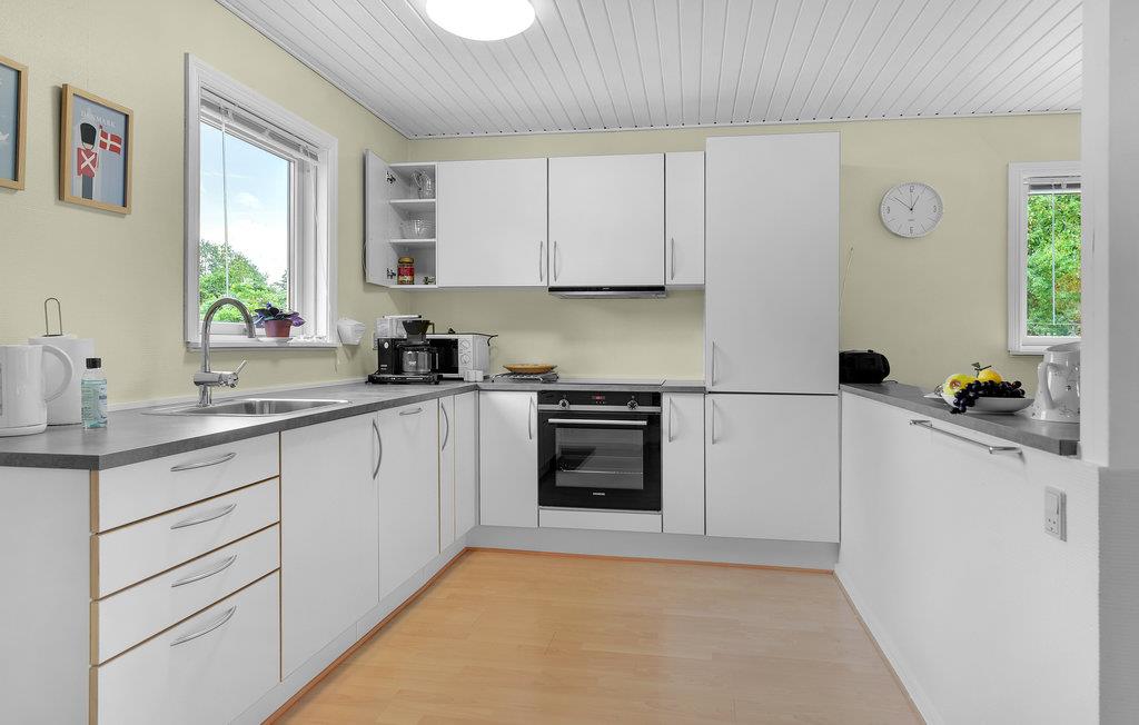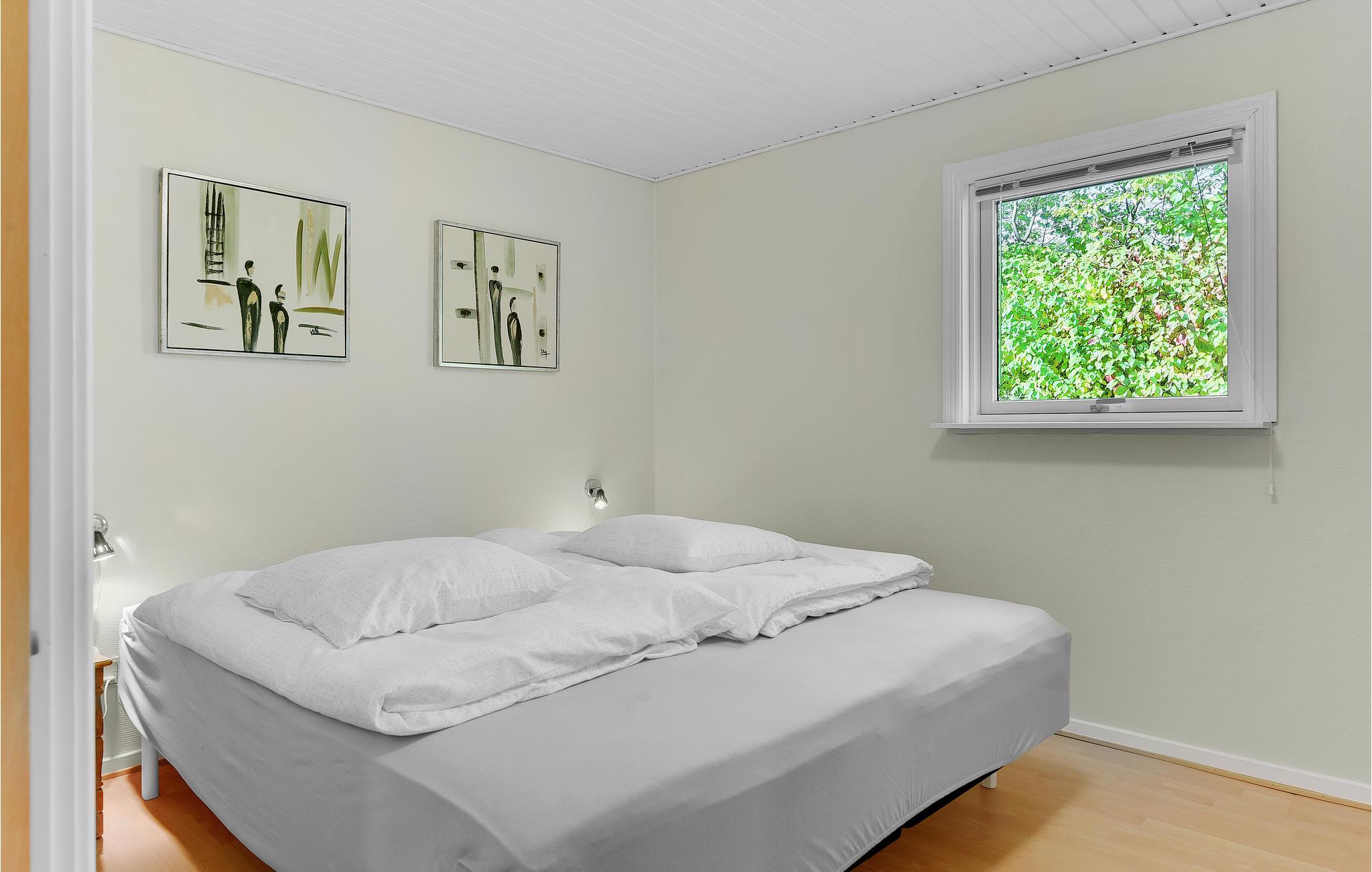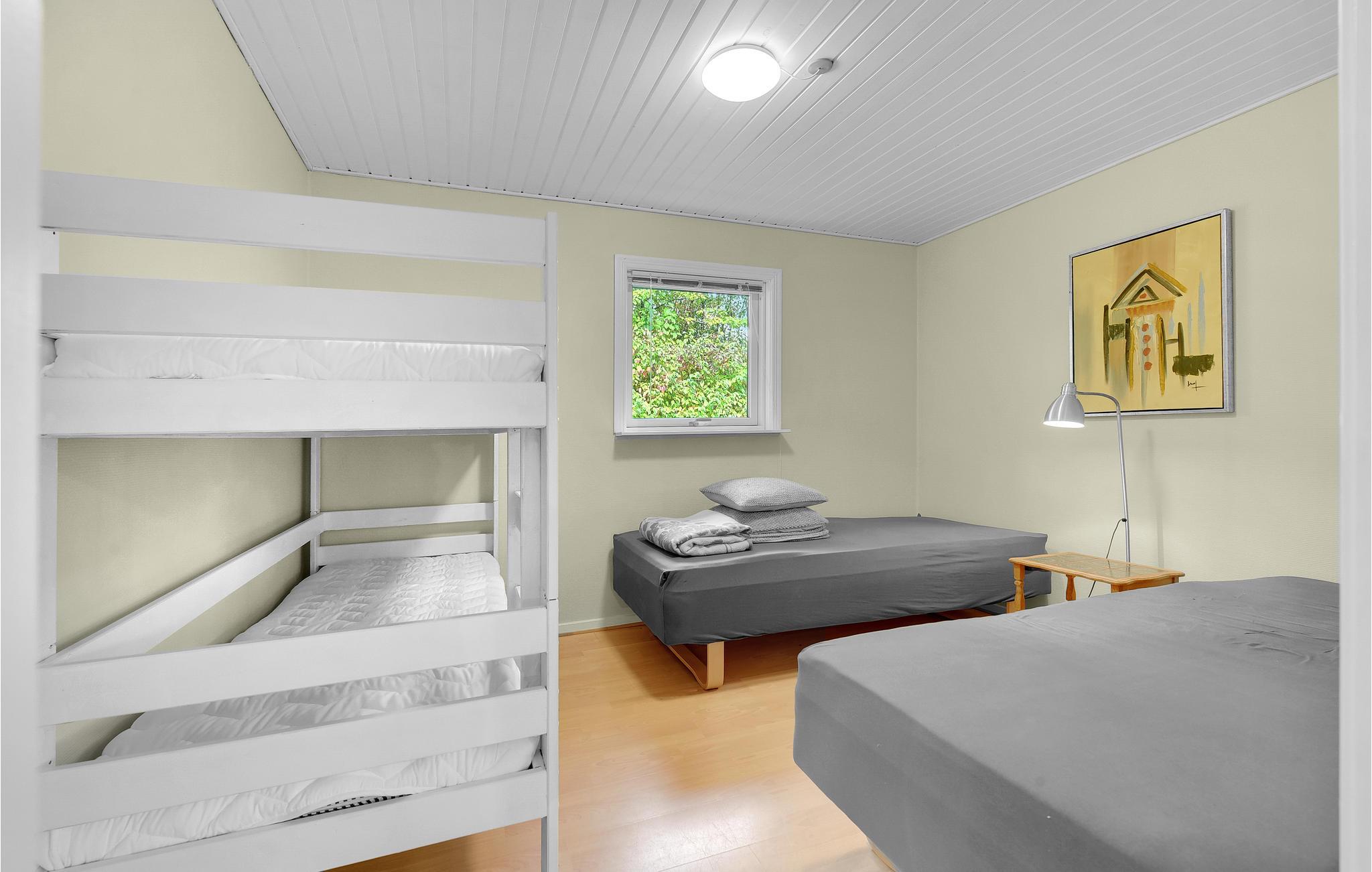 Huset er udstyret med et dejligt stor badeværelse med brus, et stort soveværelse og et soverum med 2 enkeltsenge og en køjeseng. Bemærk, at huset er husdyrfrit.