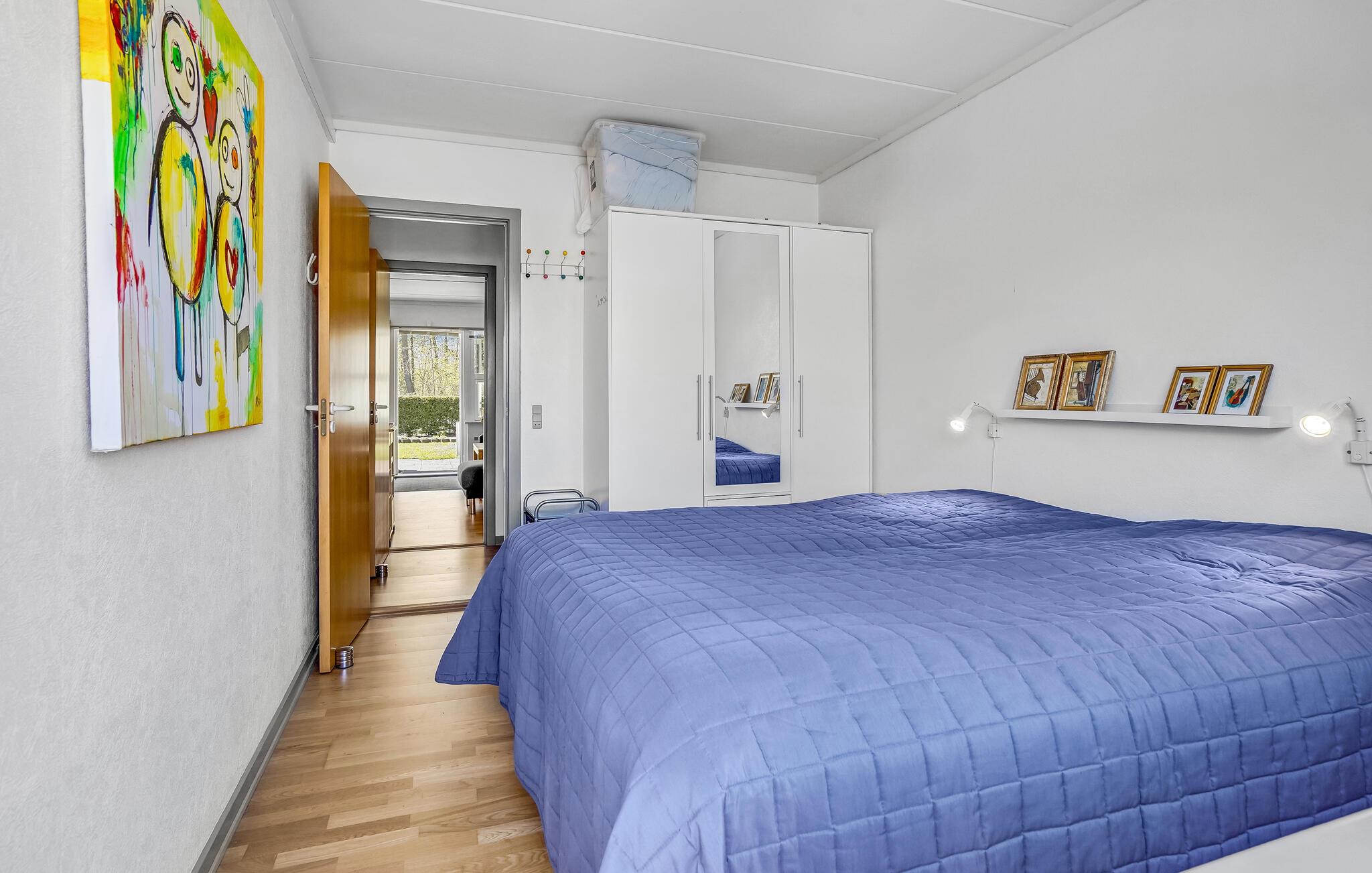 Der er kun få skridt ned til den børnevenlige sandstrand, hvor de små kan plaske løs i det lave vand. Glæd jer til nogle rolige dage, hvor I kan få mest muligt ud af den korte afstand til vandet. Om foråret og i efterårssæsonen er der gode chancer for at fange ørred. Gå en tur langs vandet i skumringen og fyld lungerne med den friske havluft.