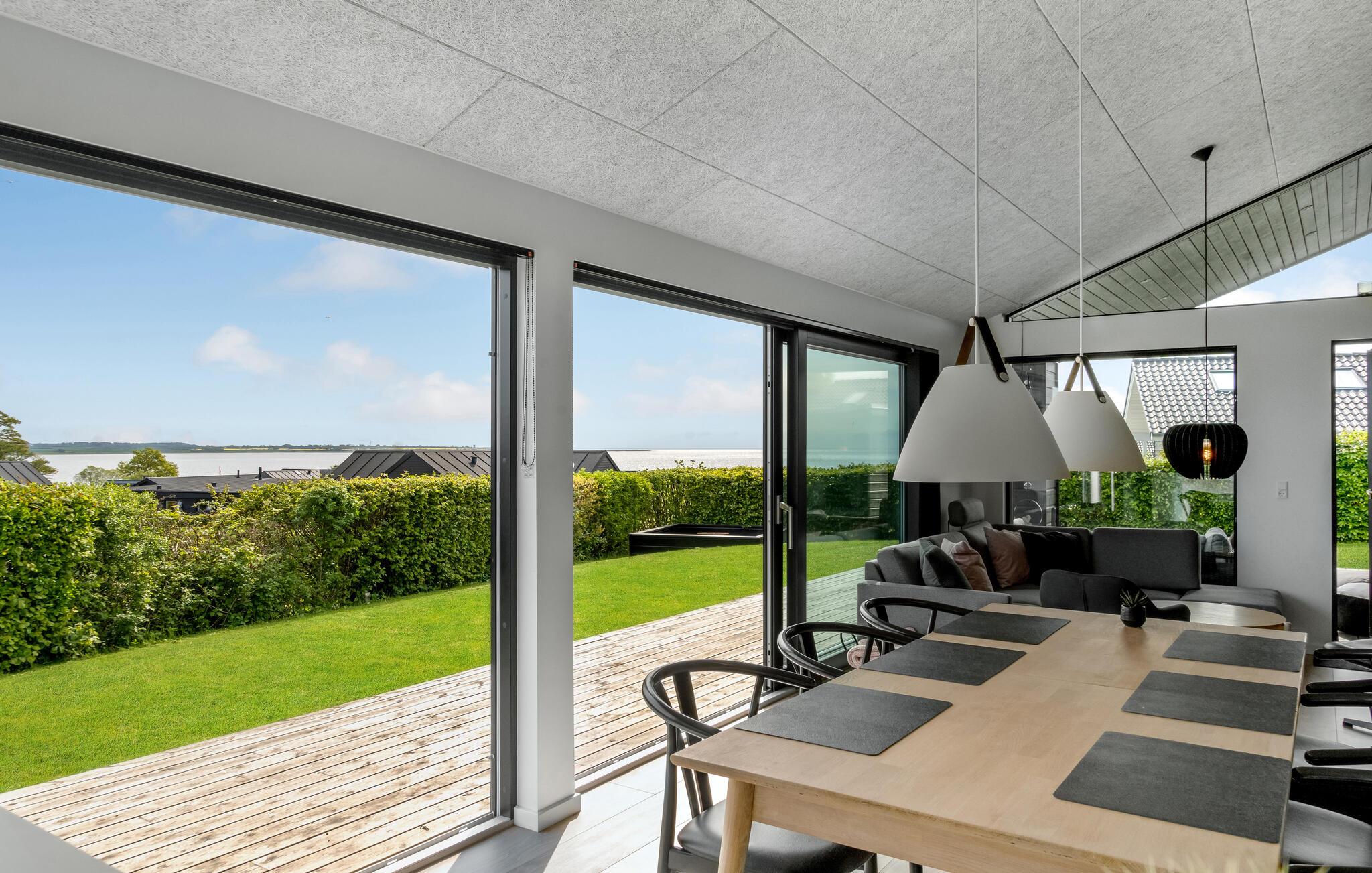 Elegant feriehus ved Kelstrup Strand med havudsigt, moderne indretning og dejlig terrasse.