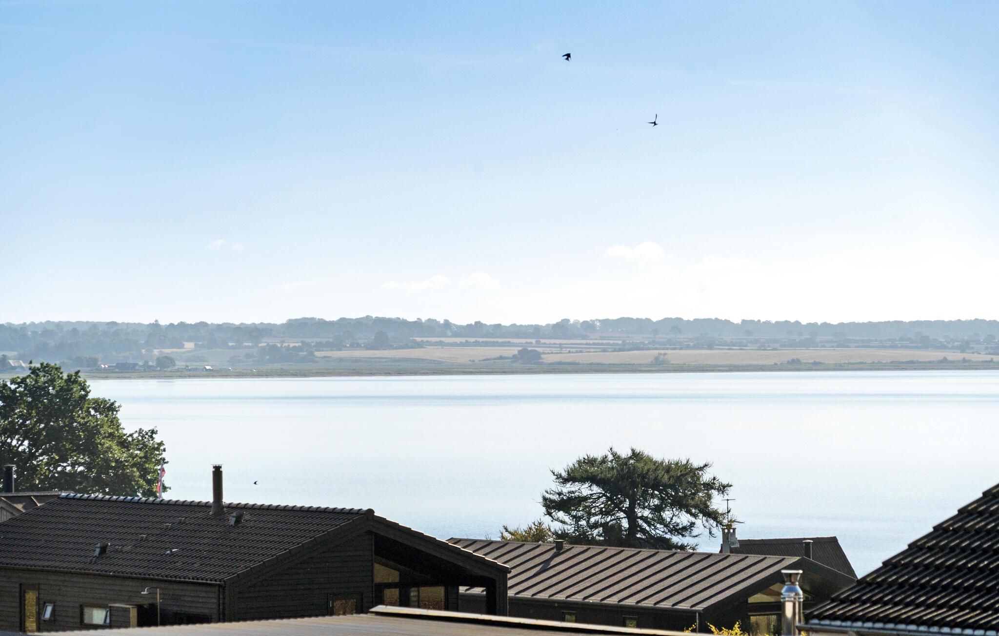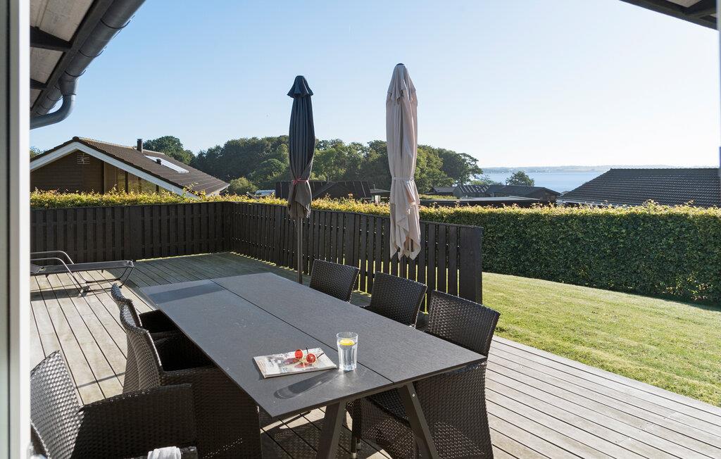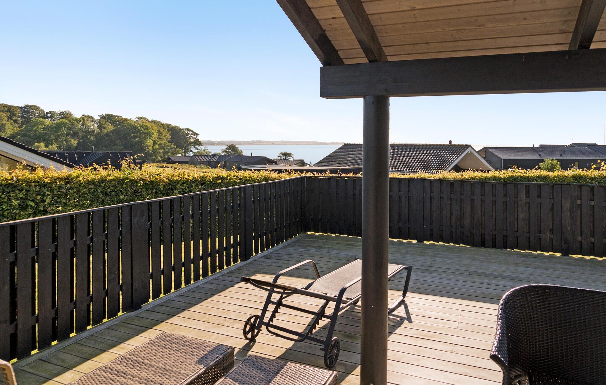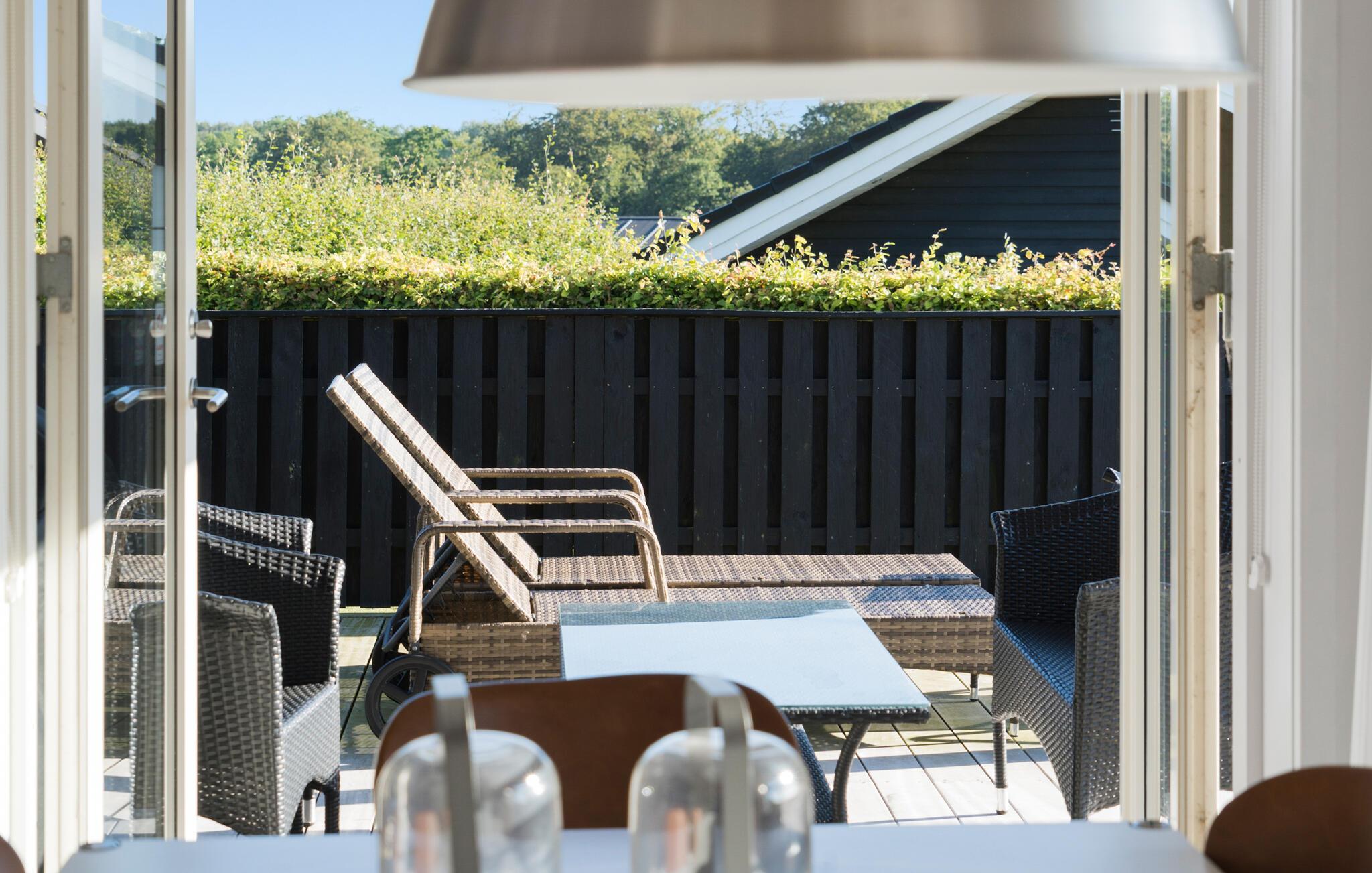 Lyst feriehus med havudsigt og stor terrasse tæt på familievenlig sandstrand i Kelstrup.