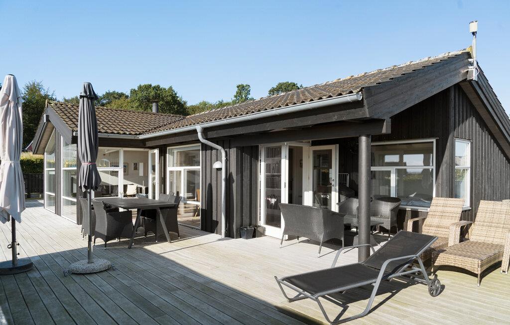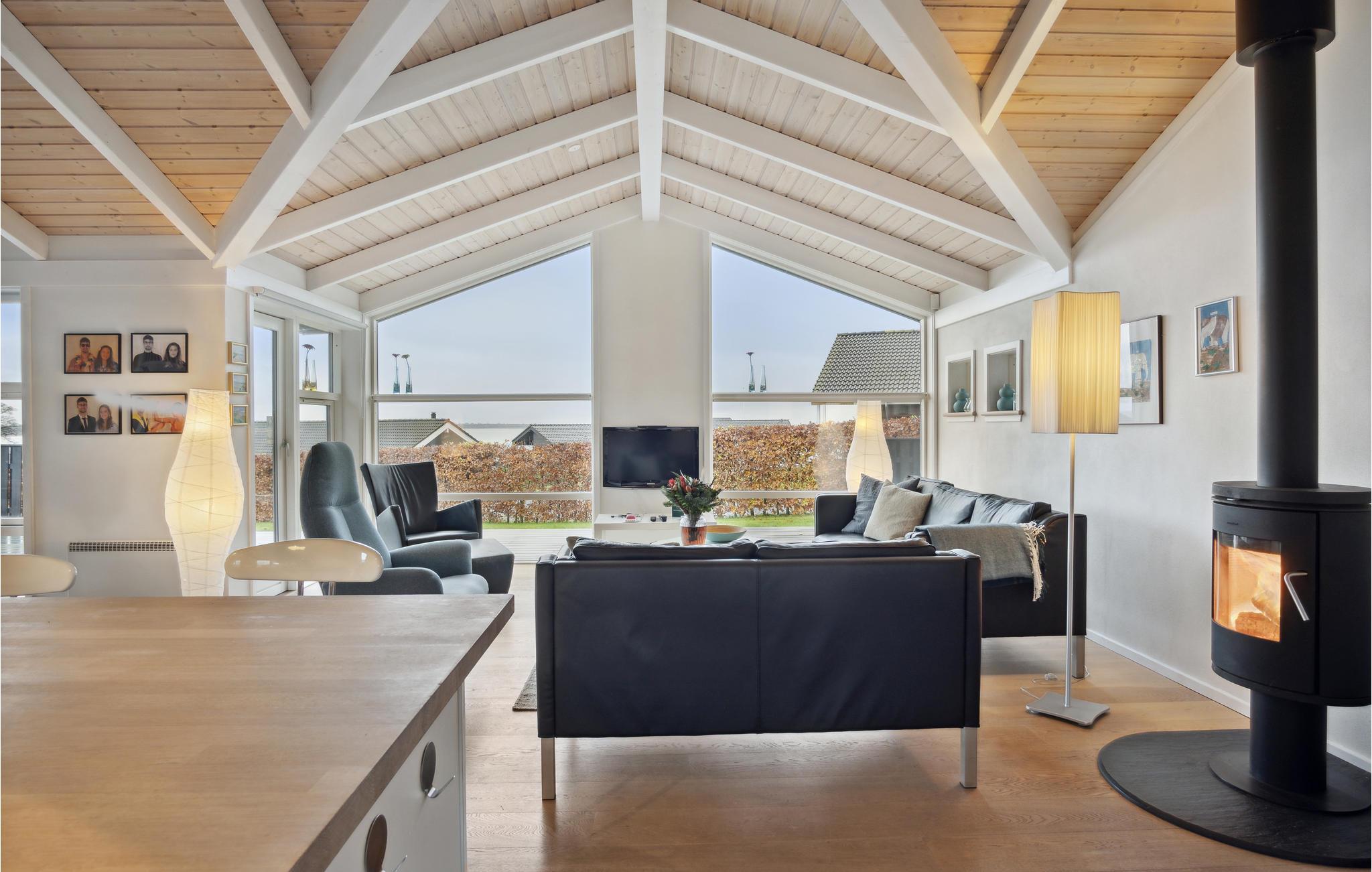Denne skønne ferieadresse byder jer velkommen tæt på den familievenlige sandstrand i Kelstrup. Det stilfulde feriehus med gode faciliteter er et dejligt sted at koble af, og I har udsigt over havet fra de tre opholdsområder i stuen. Tilbered lækre snacks i det veludstyrede køkken, mens de andre leger ved spisebordet eller slænger sig i sofaerne med en bog. Om aftenen spreder brændeovnen ekstra hygge i opholdsrummet, hvor I hurtigt vil føle jer hjemme. I sommermånederne bliver terrassen jeres anden stue. Den snor sig rundt om hele huset, således at I har mulighed for at finde sol og skygge alt afhængig af tidspunktet på dagen. Se jeres børn lege på græsplænen og lad duften af den sydende grill brede sig om aftenen. Om formiddagen kan I gå til den kilometerlange sandstrand, som er et paradis for store og små. Her kan I bade, lege i sandet og slikke sol, gå en lille tur langs vandet eller kaste fiskesnøren ud.