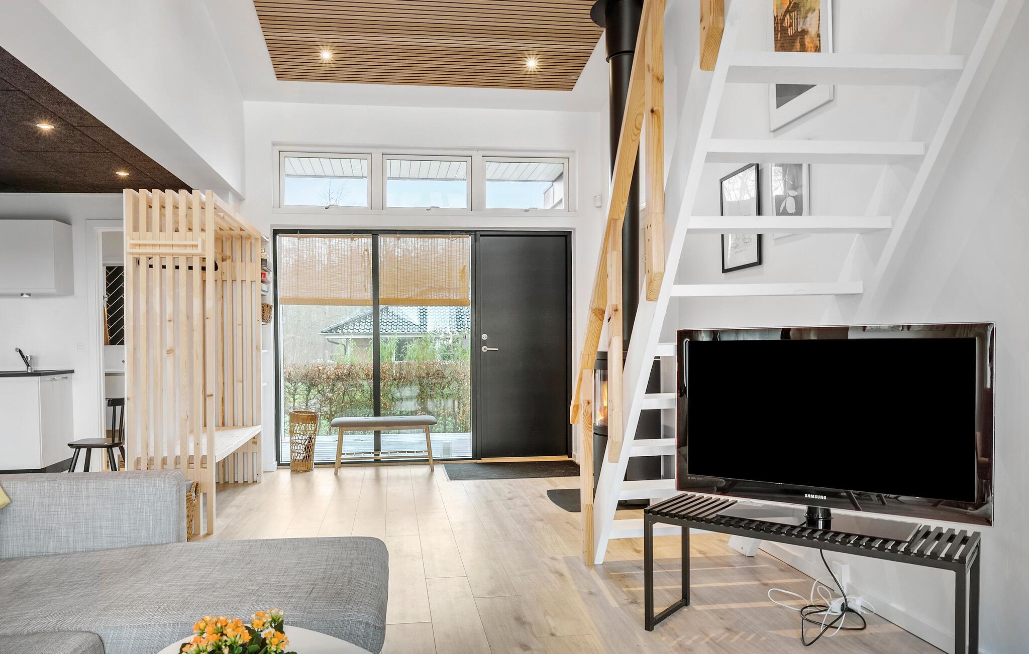 Glæd jer til en afslappende ferie i dette moderne, lyse feriehus med unik arkitektur.