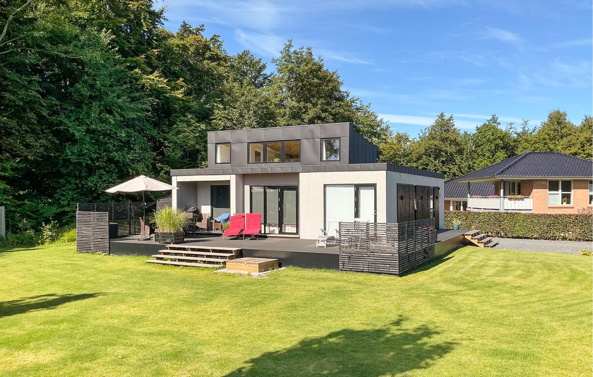 Oplev et moderne feriehus med unik arkitektur tæt på stranden og skøn natur i Kelstrup ved Haderslev.