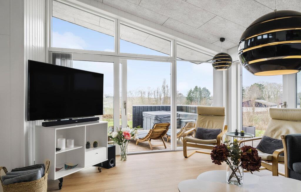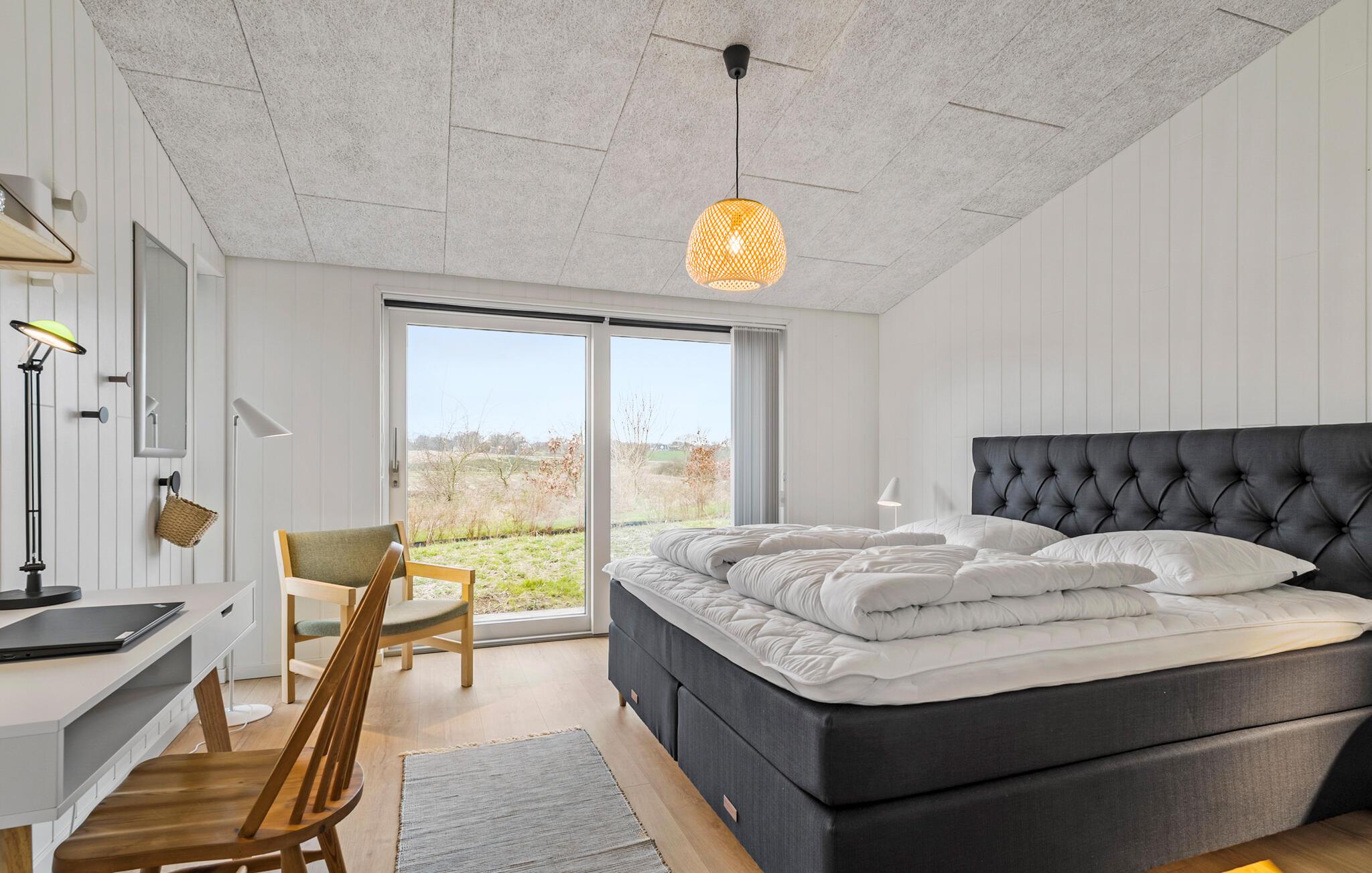 Tag familien under armen og rejs til Kelstrup, hvor I i skønne, rolige omgivelser finder dette hus til en herlig ferie tæt på vandet. Indvendigt fremtræder huset virkelig flot med gode indretningsløsninger, fine detaljer i udsmykningen og et komfortabelt møblement, der gør det nemt at sænke skuldrene og bare slappe af. Husets hjerte er det åbne opholdsrum, der får et skønt lysindfald gennem vinduespartierne, der samtidig giver en skøn udsigt til omgivelserne. Her kan I lade en hyggelig feriedag gå på hæld med en god bog i lænestolen, mens børnene ser en film eller bygger hule på hemsen. Og måske I skal have en turnering op at stå i bordtennis eller billard?