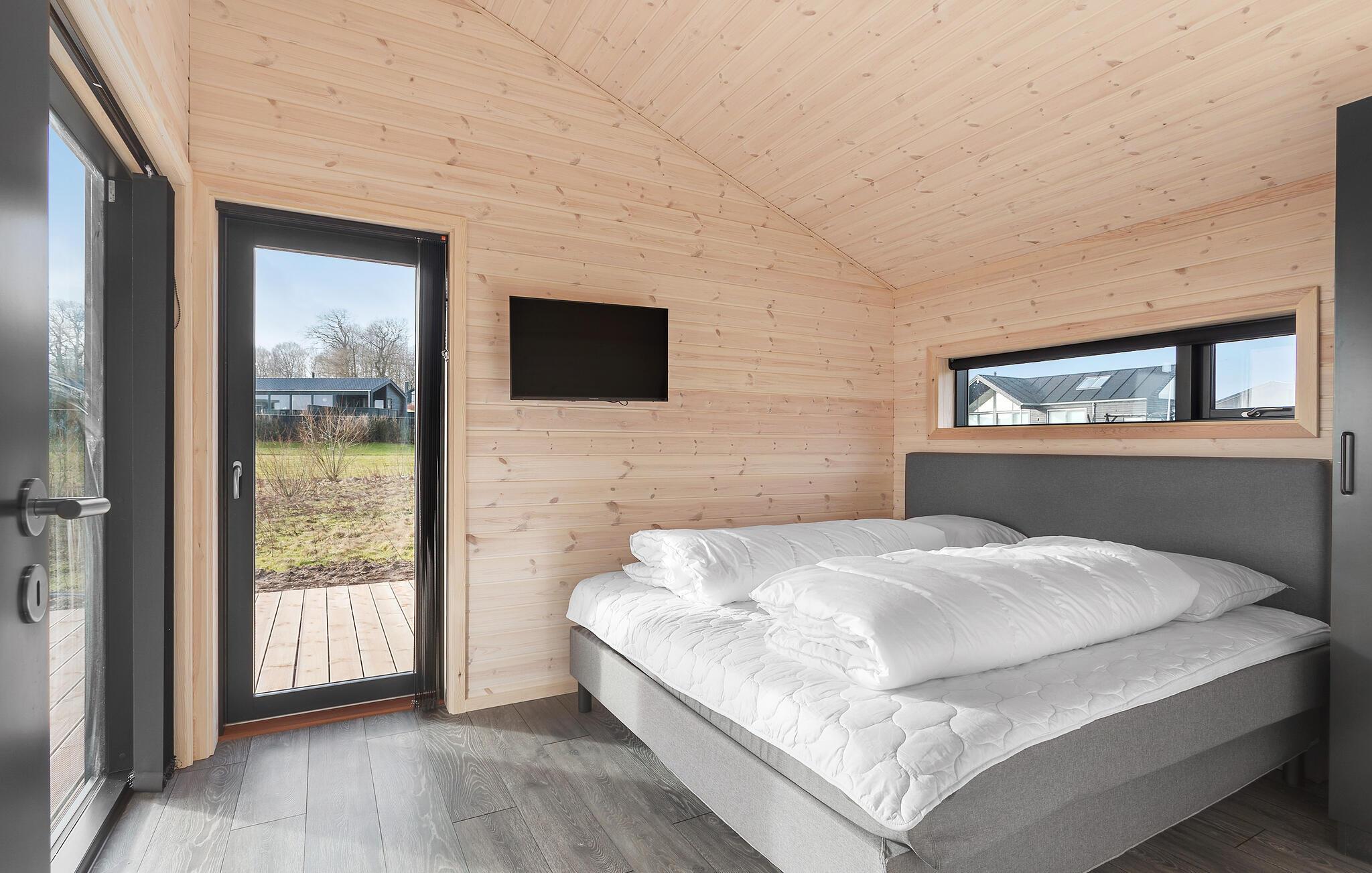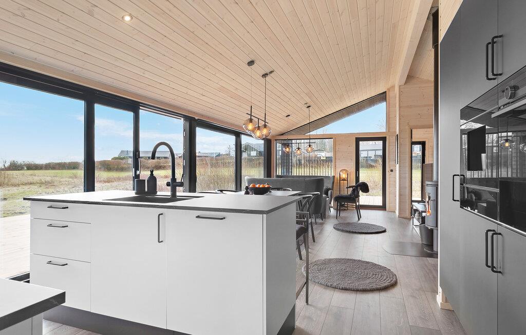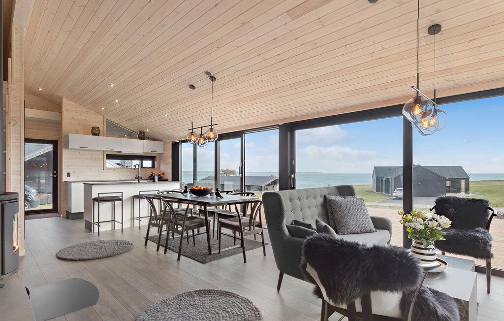 Tag familien under armen og se frem til årets bedste uger i dette virkelig flotte og komfortable feriehus ved Kelstup Strand. Der venter jer en lækker boligoplevelse her; indretningen fremstår yderst elegant med et vellykket samspil mellem tydelige træpaneler, mørke møbler og moderne designelementer. Husets hjerte er det åbne opholdsrum, hvor I, uanset om I hygger jer med madlavningen eller lægger puslespil med børnene, kan nyde den fantastiske udsigt over vandet. Lad blot dagen starte ud med en kop friskbrygget morgenkaffe på den delvist overdækkede terrasse og nyd udsigten, mens I lægger planer for dagen, der kommer. I kan også starte dagen et friskt skyl under udebruseren.