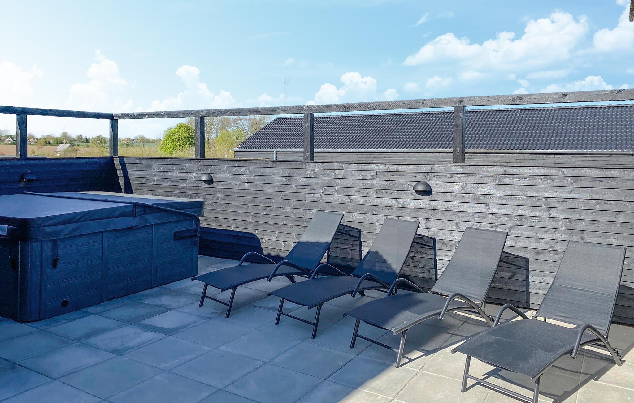 Slap af i dette stilfulde og moderne feriehus med spabad.