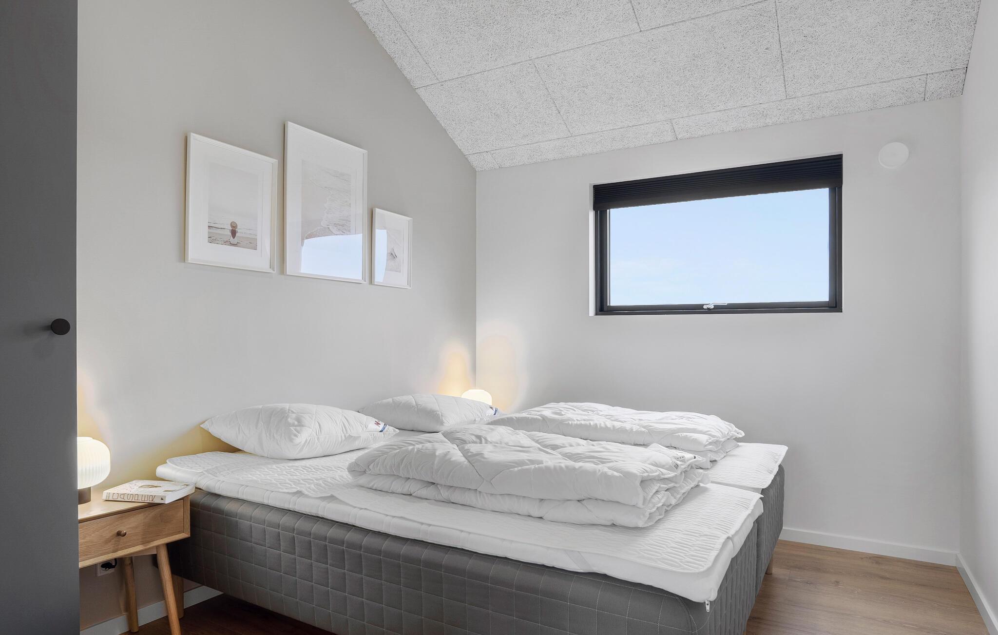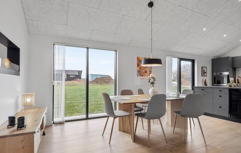 Velkommen til dette moderne og lyse feriehus, der med store vinduer og en åben planløsning skaber en helt særlig atmosfære. Her forenes madlavning, spisning og afslapning i en samlet oplevelse af velvære. Start feriedagen med morgenmad på den delvist overdækkede terrasse og nyd freden. De komfortable soveværelser sikrer afslappende nætter, mens børnene kan lege på den rummelige grund. Imens kan I nyde roen i spabadet og lade sjælen finde ro.