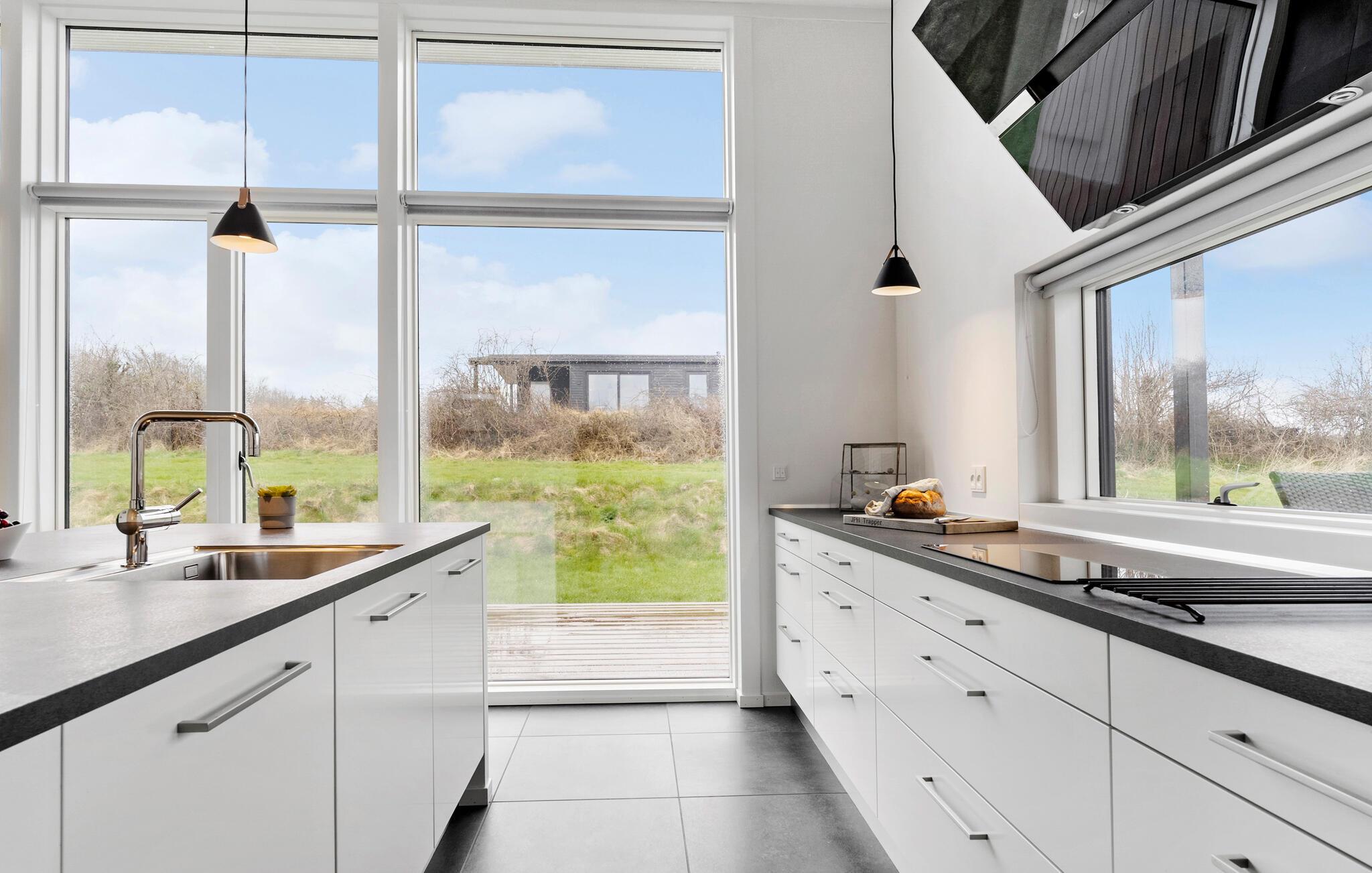 Udendørs lokker terrassen, der løber hele vejen rundt om huset, til mange skønne timer i det gode vejr. Find sol, skygge og læ efter behov og nyd den fantastiske udsigt, mens børnene leger eller spiller bold i haven. Lad en smuk sommerdag gå på hæld med saftige bøffer fra grillen og et godt glas vin i den lune aftensol, mens I lægger planer for de kommende dage.