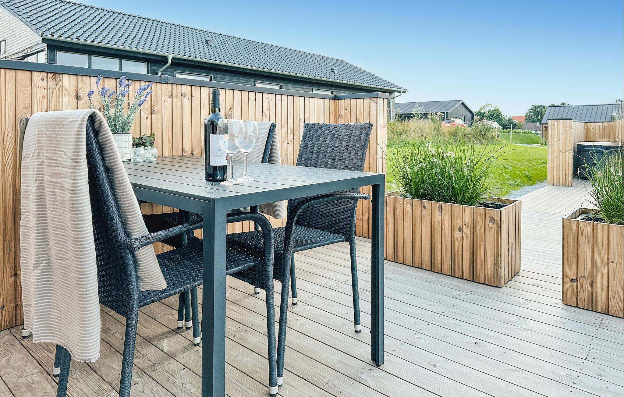 Træd udenfor med en velduftende kop kaffe i morgensolen og nyd den helt vidunderlige udsigt. Fra terrassen kan I se ned til vandet og de grønne omgivelser. Læn jer tilbage i det afskærmede spabad, når I trænger til ekstra forkælelse eller fordyb jer i en god bog på terrassen. Rund dagene af med en skøn grillmiddag og et glas vin oven på dagens udflugter.