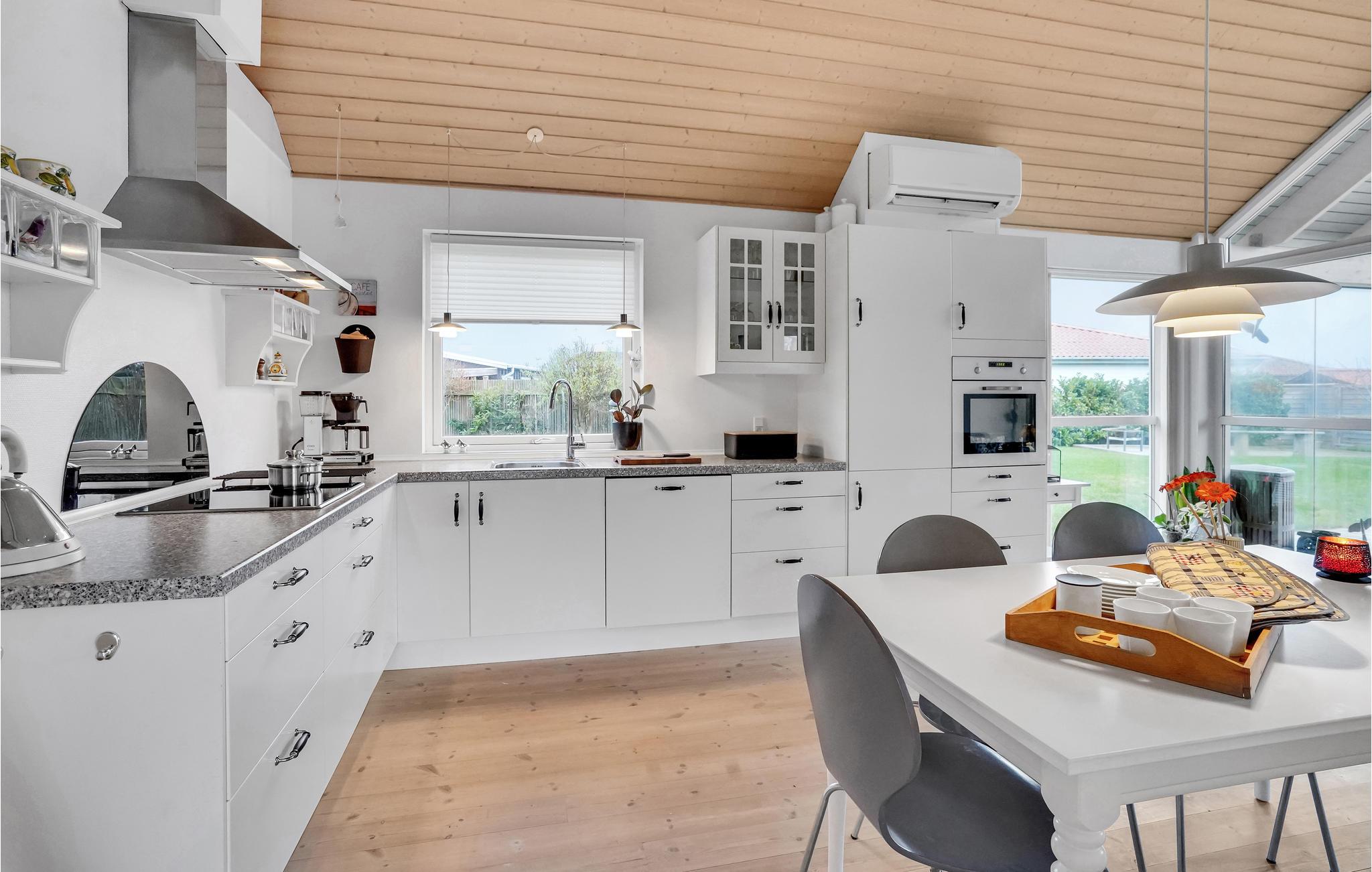 Her i dette moderne feriehus finder I alt hvad I behøver på en afslappet og tilbagelænet ferie. Indretningen oser af kvalitet og livsglæde: lyse rum, højt til loftet og fine detaljer i træ. På terrassen er der grill og bålsted, så I både kan tilberede aftensmaden ude og nyde sommeraftenerne i det fri.