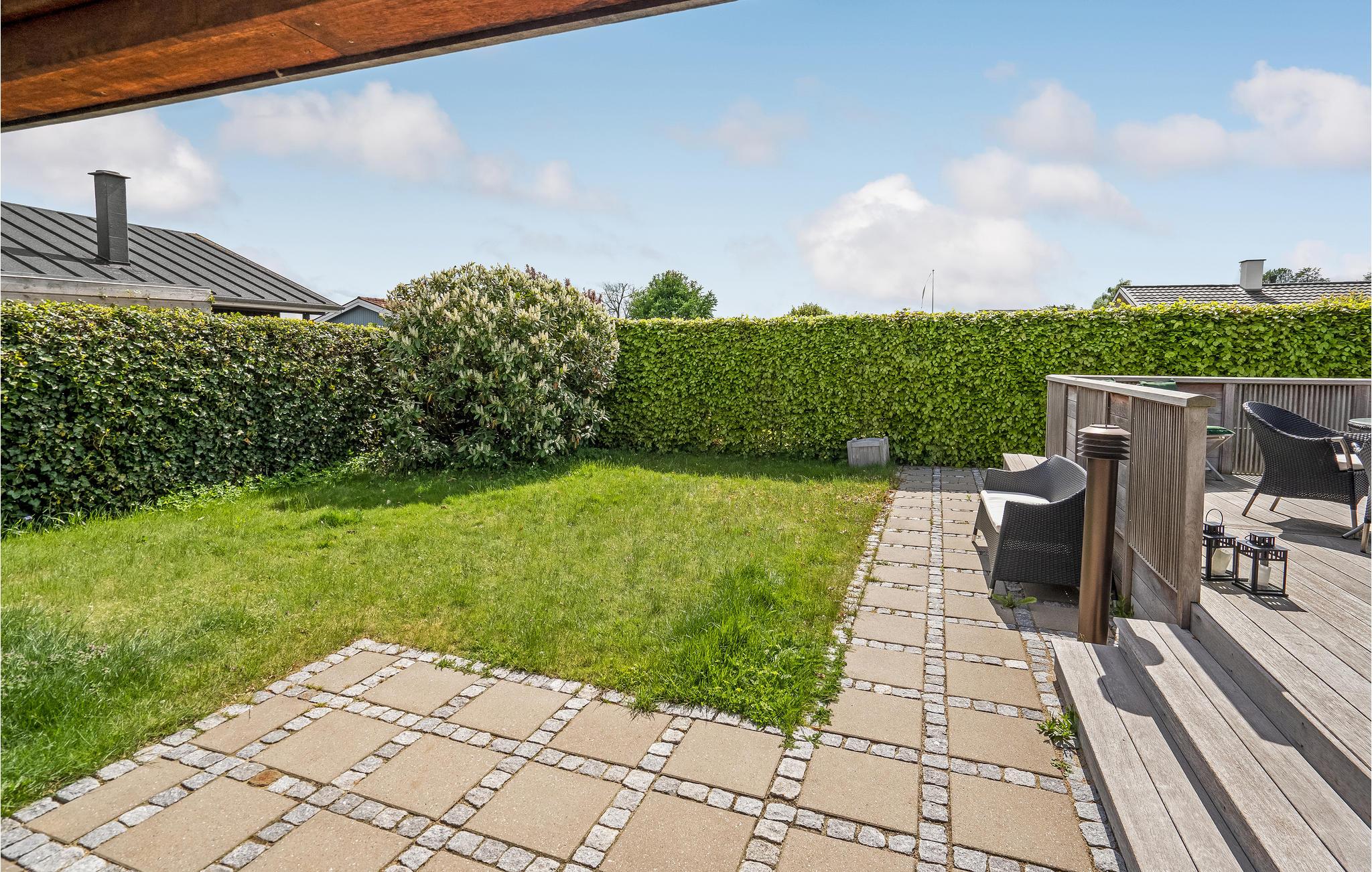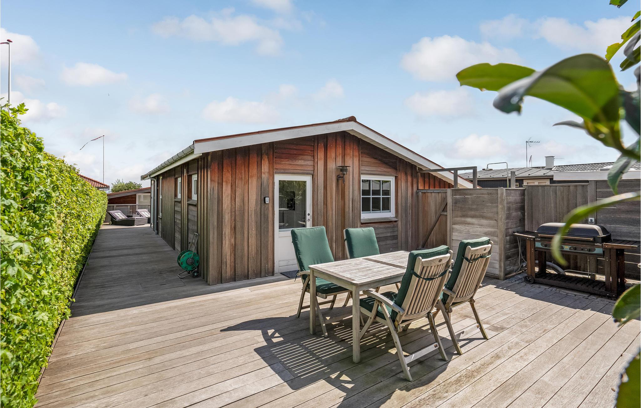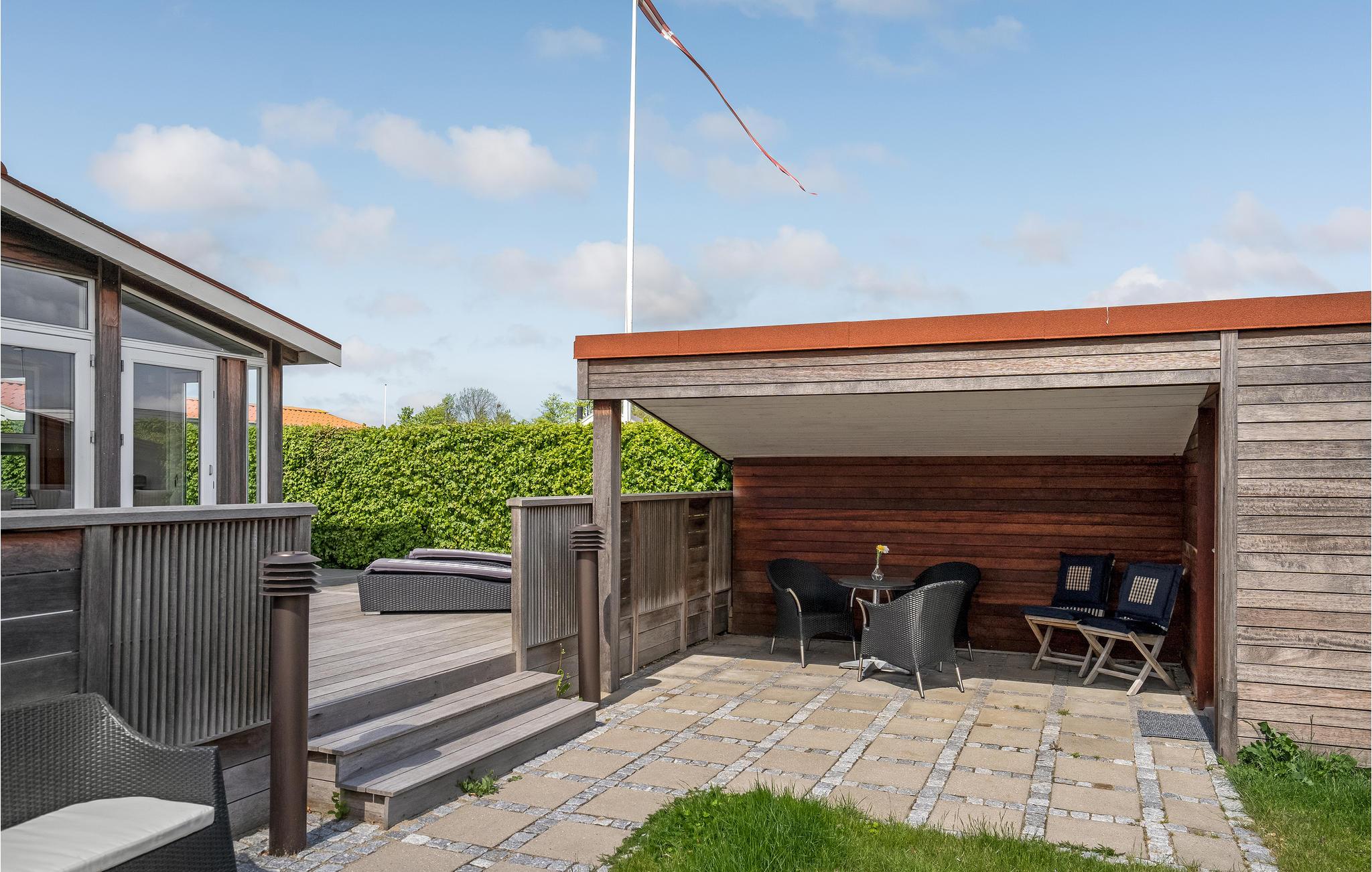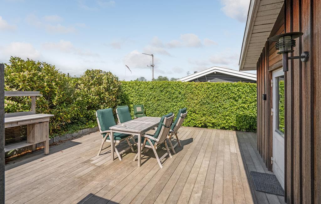 Den store terrasse med havemøbler er det perfekte sted at slappe af i solen med en god bog eller nyde måltider med familien i den friske luft. Efter et besøg på stranden er den udendørs bruser praktisk til at skylle sandet af eller til at køle ned på terrassen efter solbadning på de varme sommerdage.