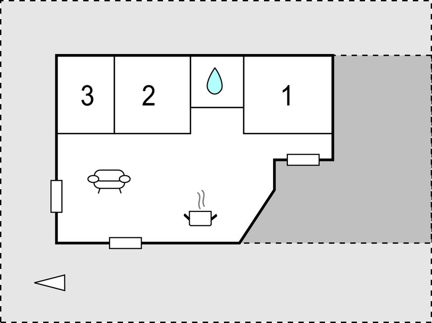 Huset består af en stort, åbent opholdsrum med sofaarrangement og spiseplads, som ligger i forlængelse af det åbne køkken. Derudover er der 3 soveværelser og 1 badeværelse. Hele huset er lyst og indrettet i moderne stil med masser ad hygge. Der er desuden gulvvarme i hele huset, så I kan lade hjemmeskoene blive hjemme.