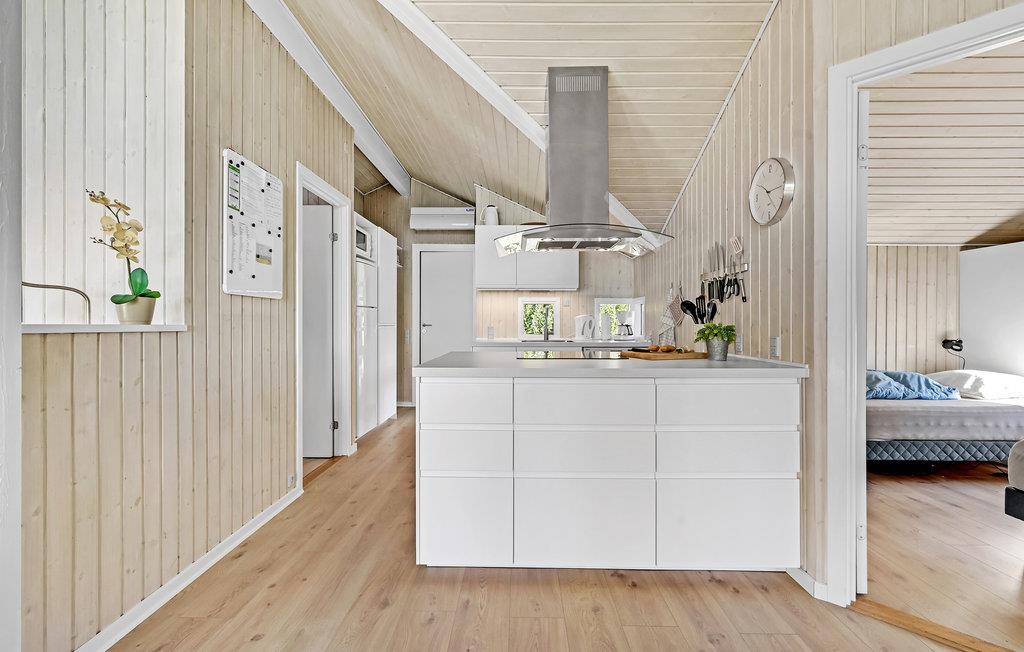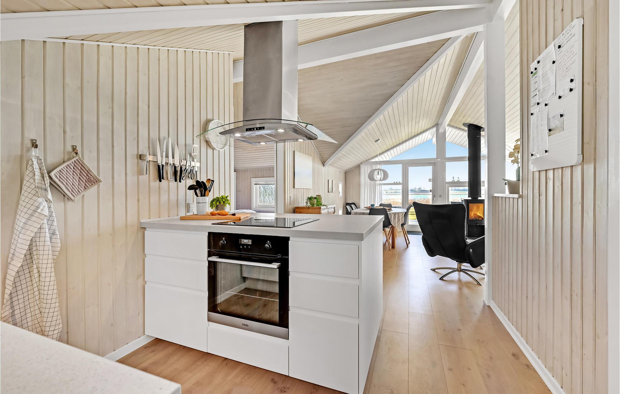 Tilbring en vidunderlig ferie her med en fantastisk udsigt lige ved vandet. Med 3 soveværelser kan feriehuset rumme op til 6 personer. Gennem gulv til loft-vinduerne i stuen kan I nyde et smukt lysindfald og en vidunderlig udsigt over vandet. Gør jer komfortable ved brændeovnen og lyt til de knitrende flammer.