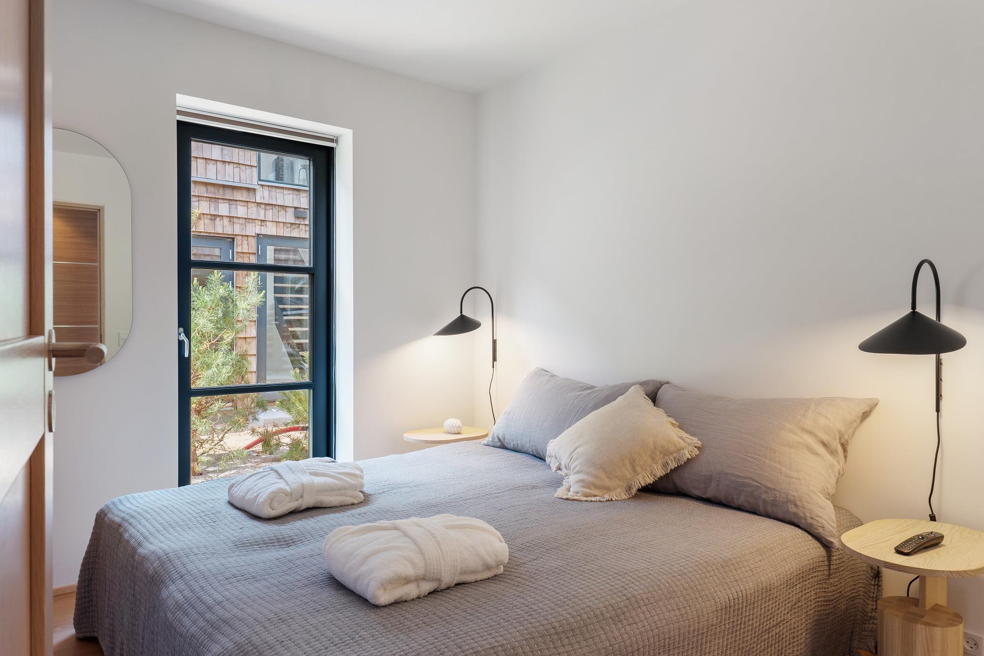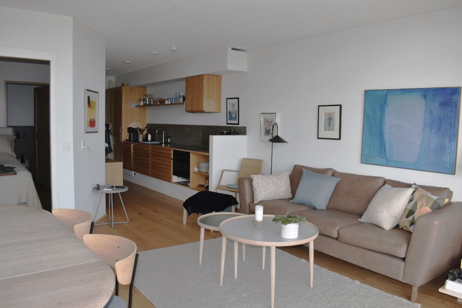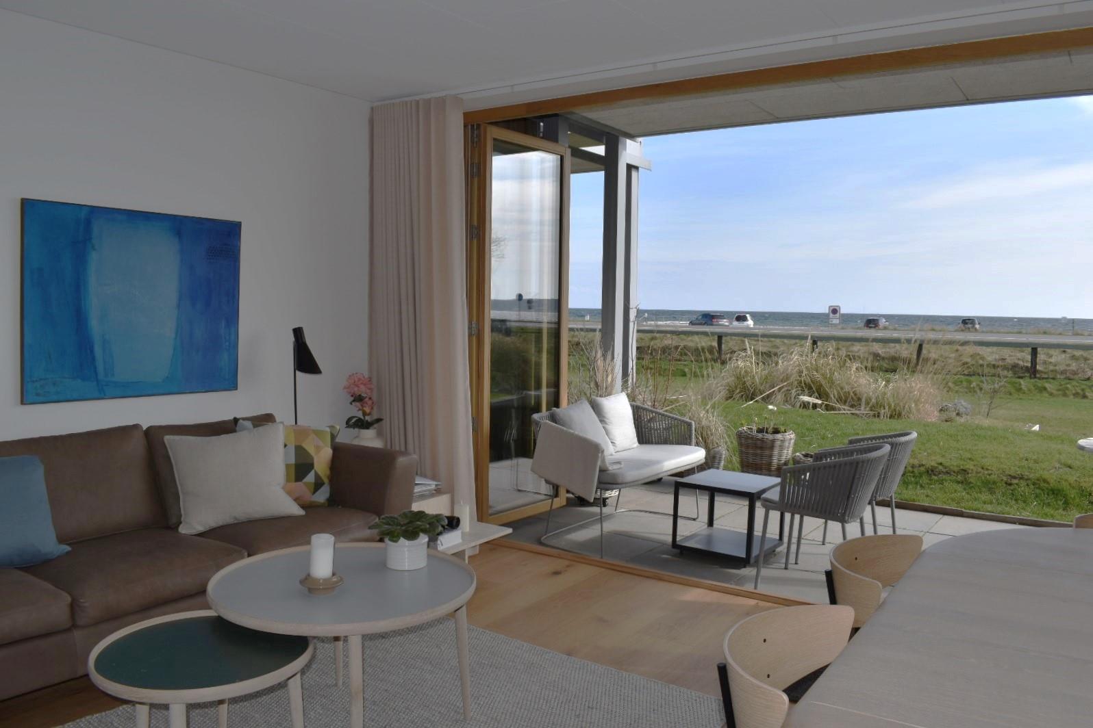 Boligen ligger i stueplan og er indrettet med smukt interiør og skønne detaljer. Fra stue og køkken har du adgang til den rummelige terrasse. På en lun sommerdag kan de store foldedøre skydes til side, så du får naturen og stranden helt tæt på. Boligen er indrettet med 1 soveværelse med en dobbeltseng samt et dejligt stort badeværelse. Boligen har smart TV med mulighed for streaming (ingen TV-programmer).