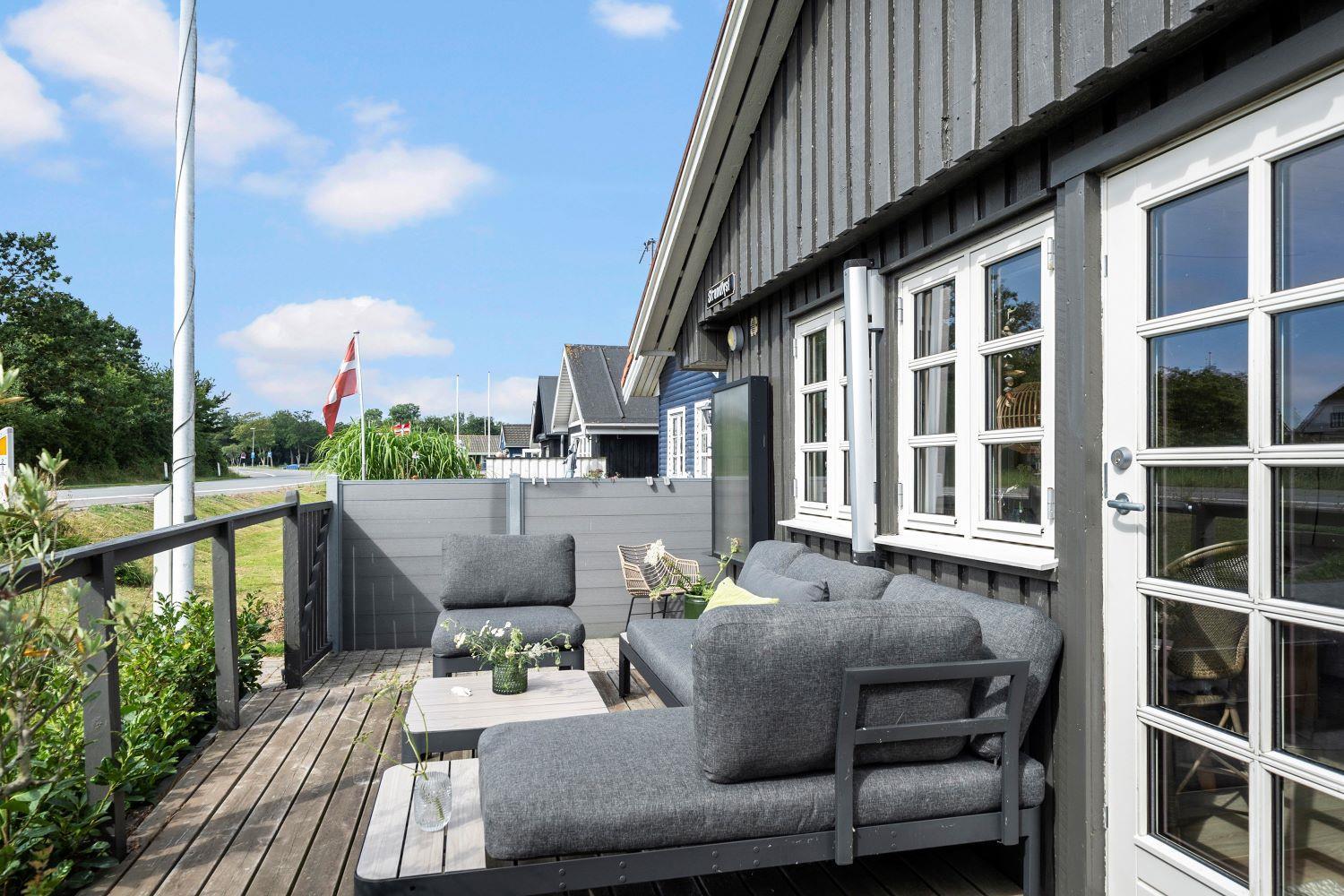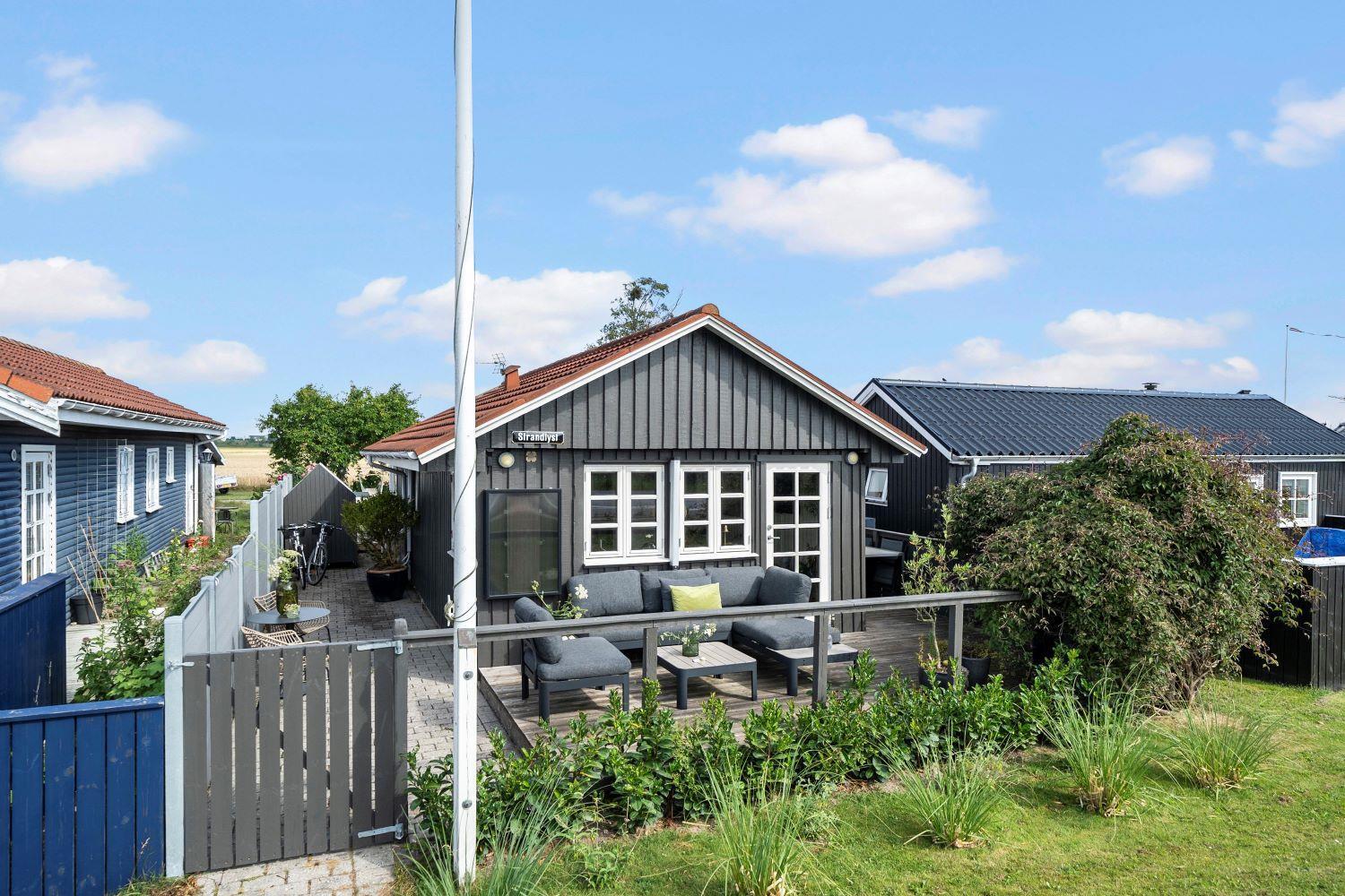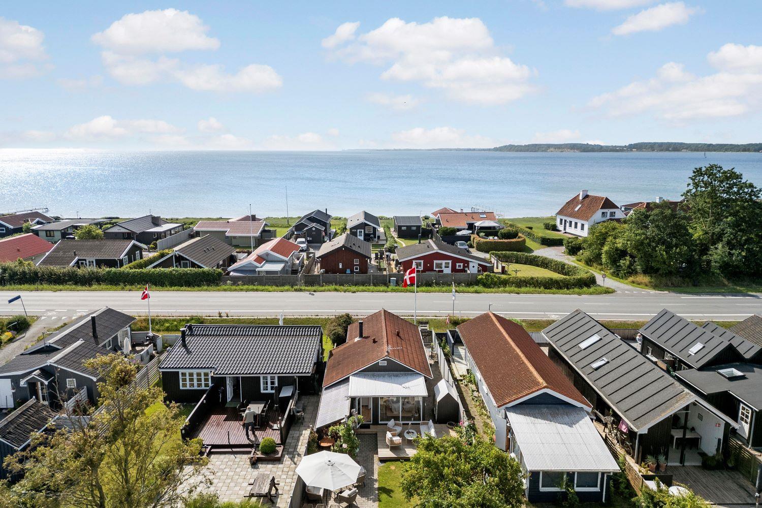 Sommerhuset ligger i 3. række til stranden, hvor du kan bade fra badebro. Stranden ud for huset er stenet, men en kort gåtur langs Nordstranden ind mod marinaen fører dig til en børnevenlig sandstrand med lavt vand og fint sand.