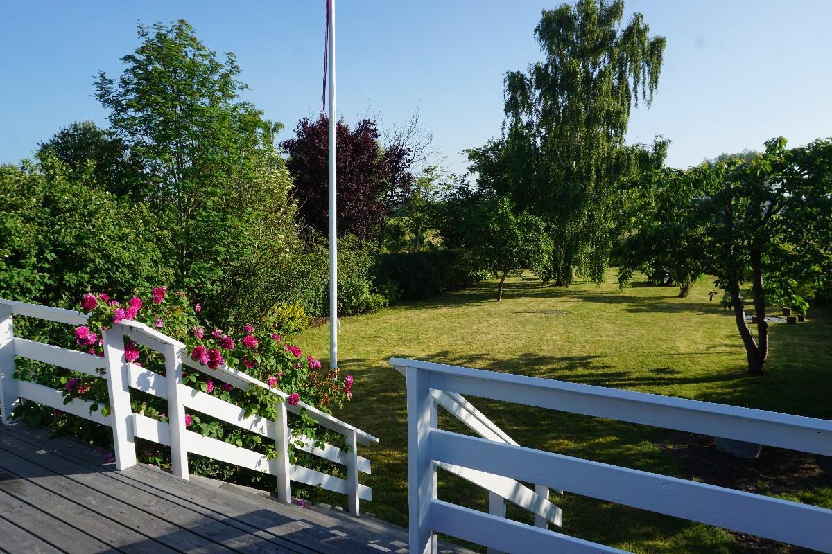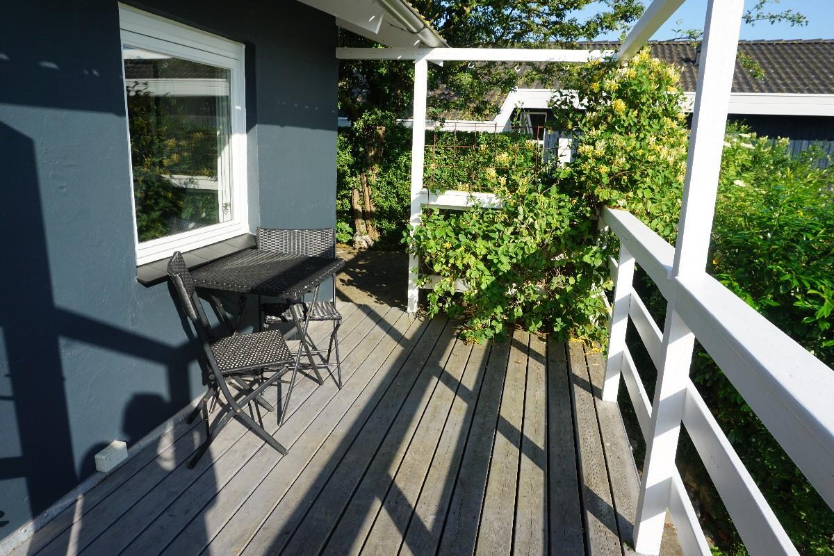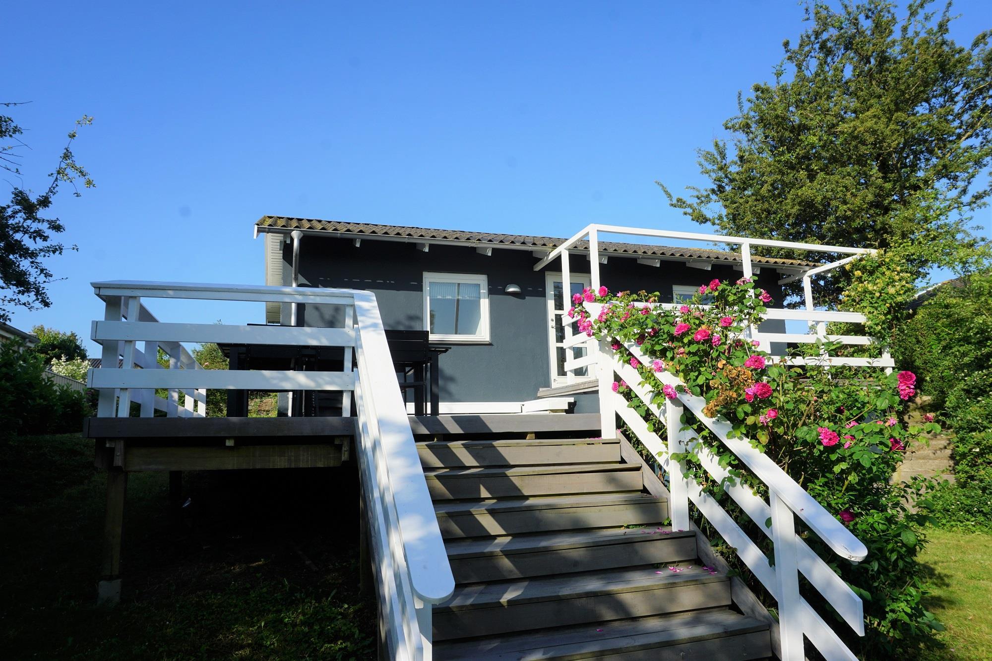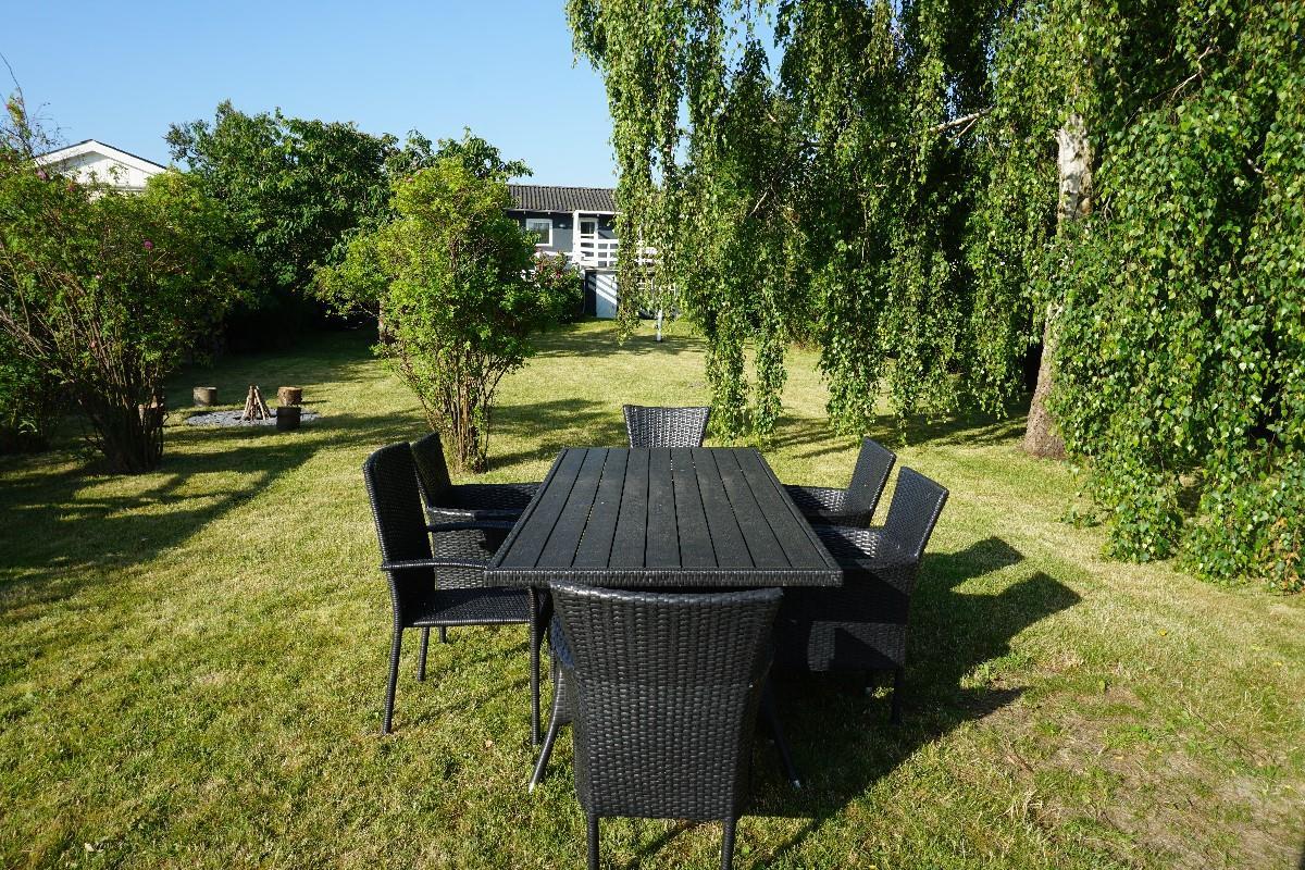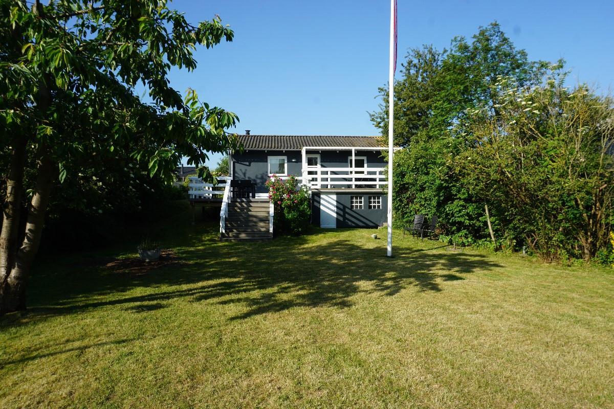 Fra stuen fører en gennemgang via køjerummet ud til den store terrasse, hvor I kan nyde den rolige atmosfære og udsigten over haven. Her finder I også en bålplads, perfekt til hyggelige aftener under åben himmel, og en smuk udsigt til de omkringliggende marker. Sommerhuset ligger på den sidste vej i sommerhusområdet, så her er stille og roligt. Sommerhuset ligger ved et dejligt stisystem, hvor du kan gå eller cykle til naturområdet Sybergland og videre ud på halvøen Hindsholm.