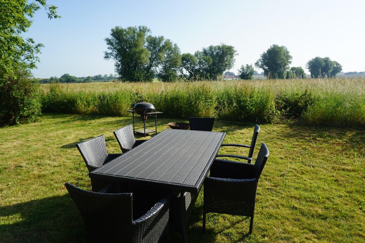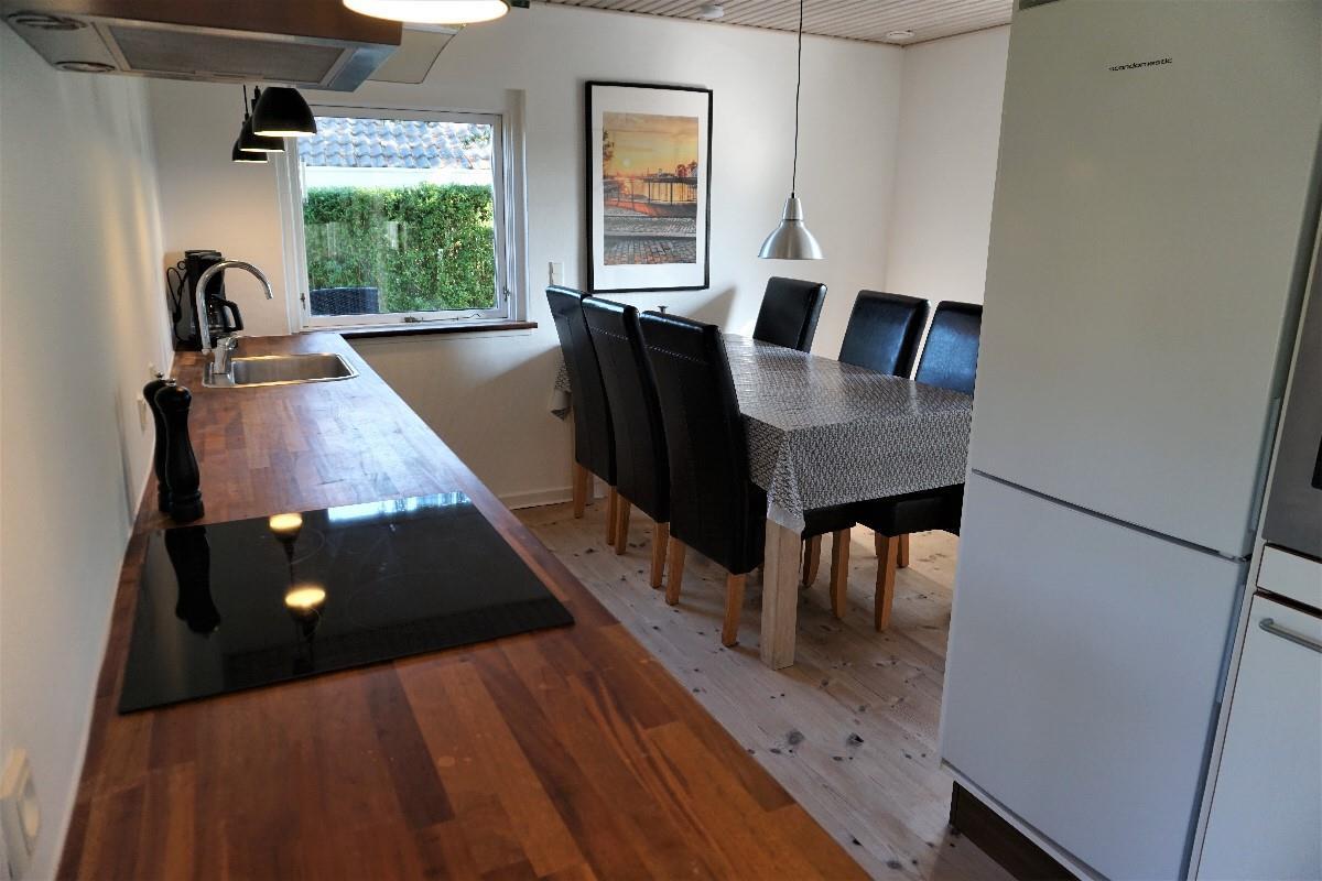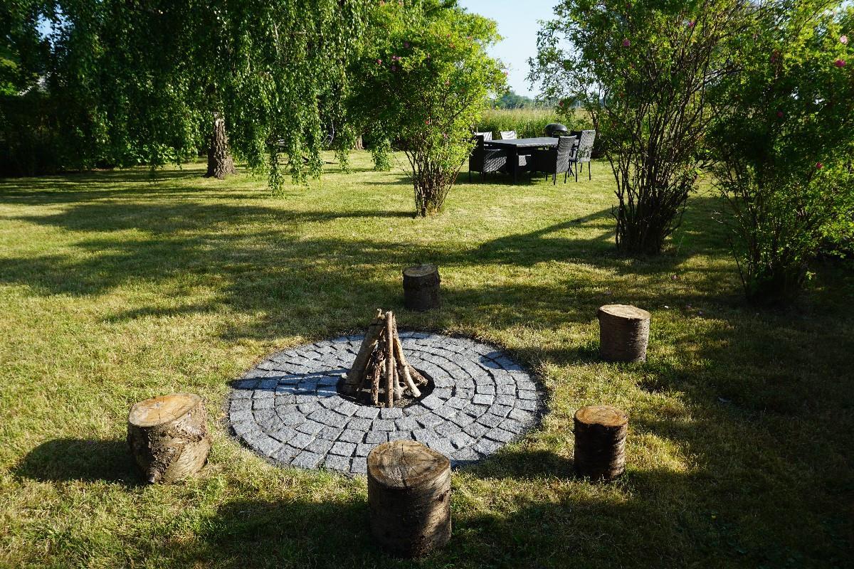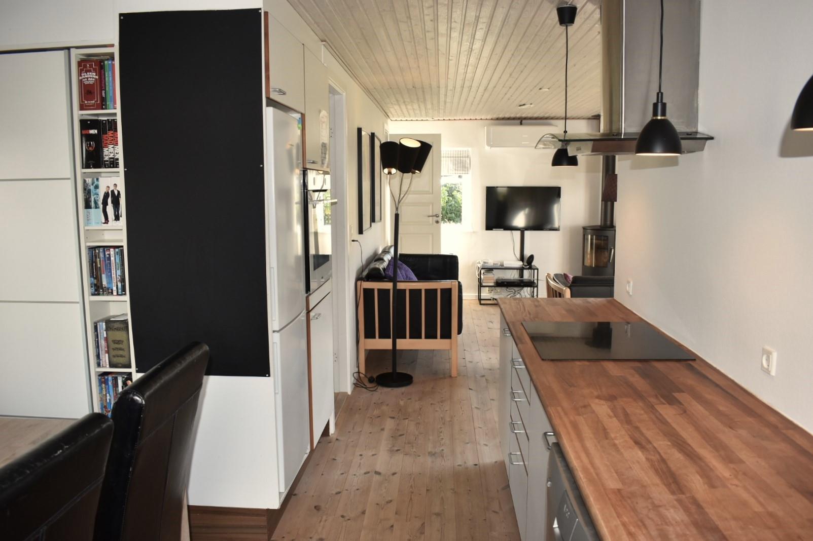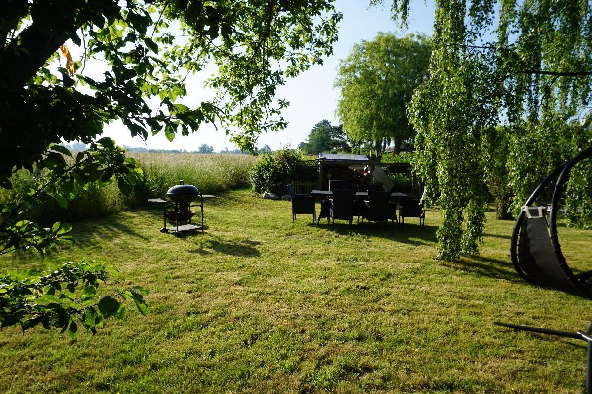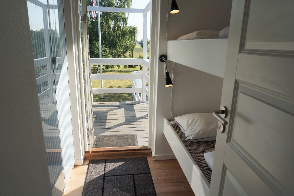 Fra stuen fører en gennemgang via køjerummet ud til den store terrasse, hvor I kan nyde den rolige atmosfære og udsigten over haven. Her finder I også en bålplads, perfekt til hyggelige aftener under åben himmel, og en smuk udsigt til de omkringliggende marker. Sommerhuset ligger på den sidste vej i sommerhusområdet, så her er stille og roligt. Sommerhuset ligger ved et dejligt stisystem, hvor du kan gå eller cykle til naturområdet Sybergland og videre ud på halvøen Hindsholm.