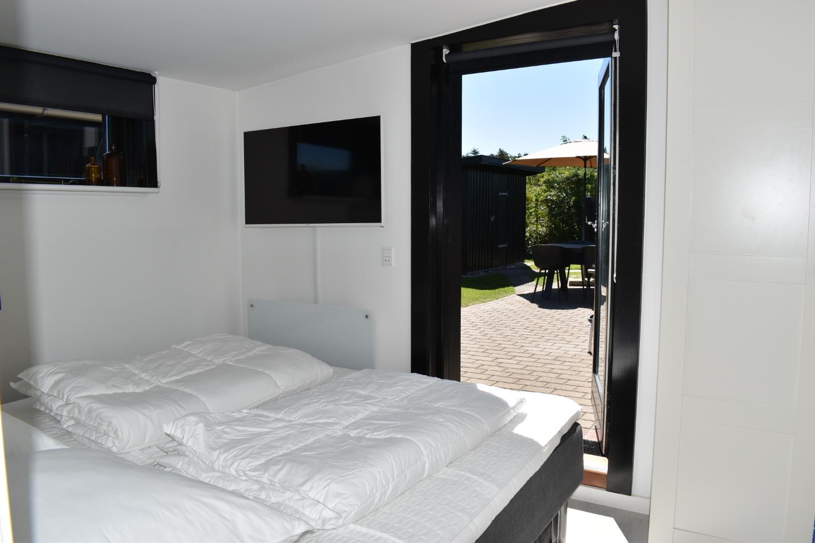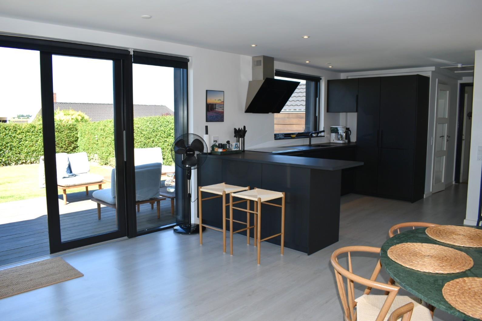 Huset er smagfuldt renoveret og byder på en rummelig stue i åben forbindelse med et funktionelt køkken. Her er to soveværelser – ét med to enkeltsenge og ét med en dobbeltseng – samt to store badeværelser. Derudover er der et hyggeligt anneks med to køjesenge, ideelt til børn eller gæster.