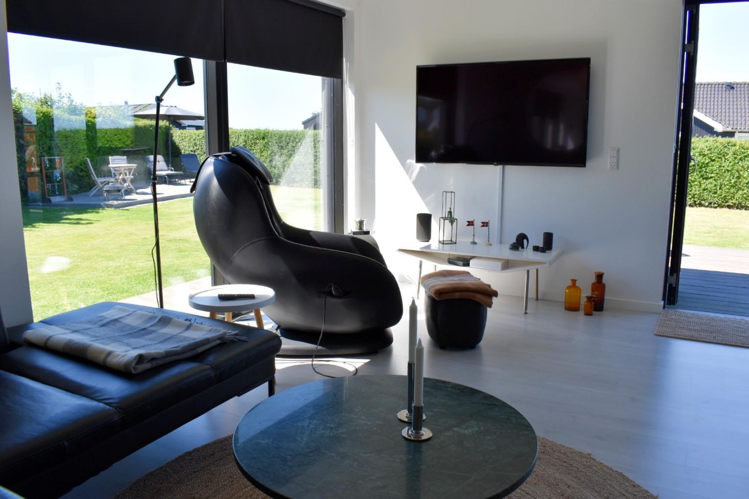 Med en brændeovn og en energibesparende varmepumpe er huset velegnet til ophold året rundt. Den høje hæk omkring grunden gør det trygt for hunden at løbe frit, mens I slapper af. Et fantastisk sommerhus med masser af plads og muligheder – både inde og ude!