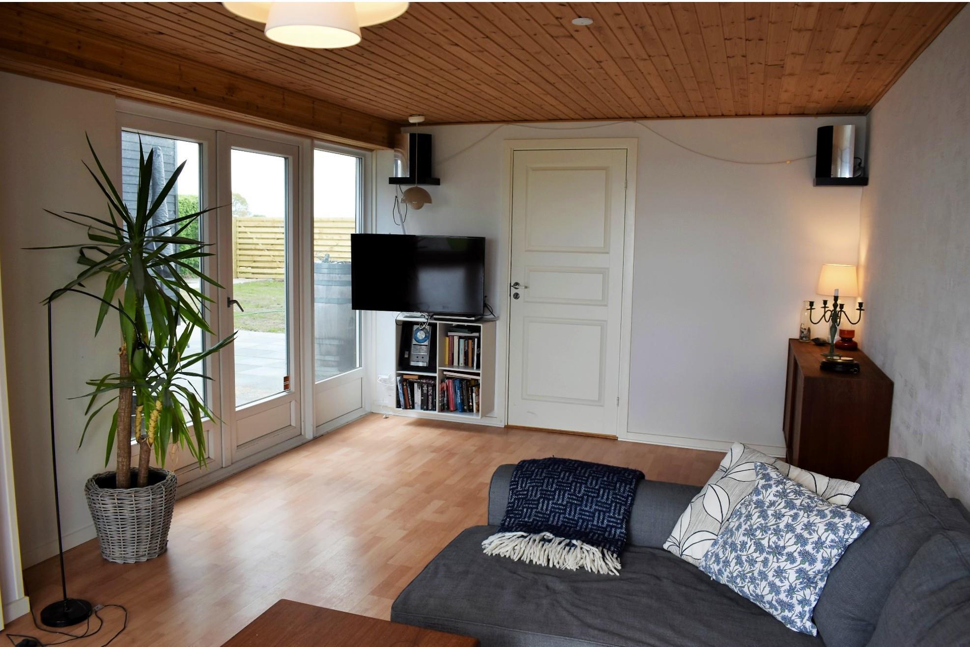 Sommerhuset blev renoveret i 2021 og er indrettet med plads til hele familien. Huset rummer tre komfortable soveværelser: to med dobbeltsenge og ét med en enkeltseng. Desuden er der en hyggelig stue med sovesofa og Smart-TV med Chromecast, samt et lyst køkken-alrum udstyret med et amerikanerkøleskab med isdispenser. Badeværelset er ikke så stort, men funktionelt.
