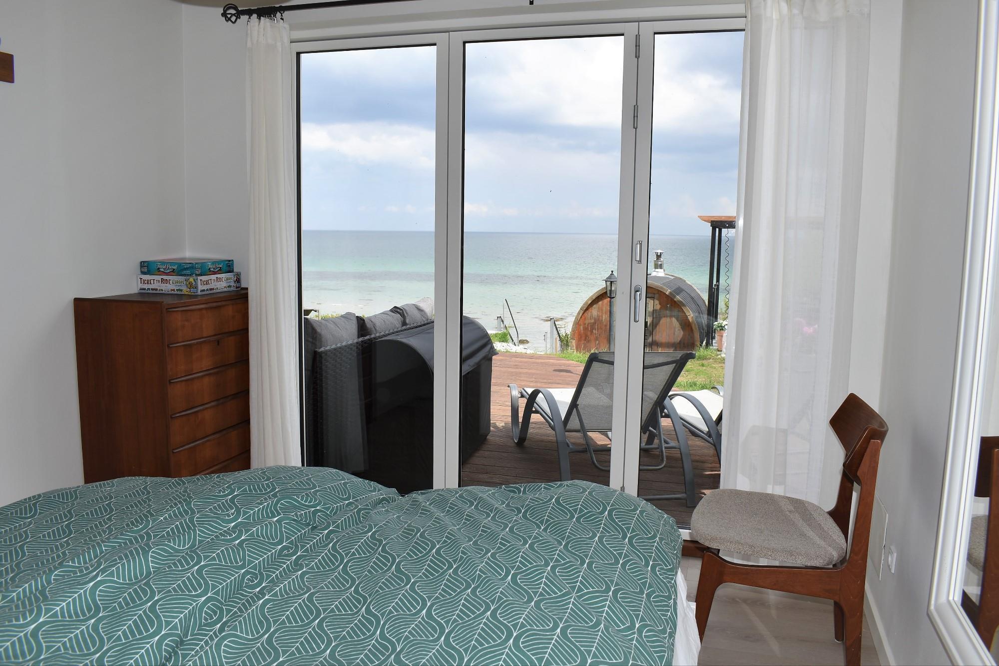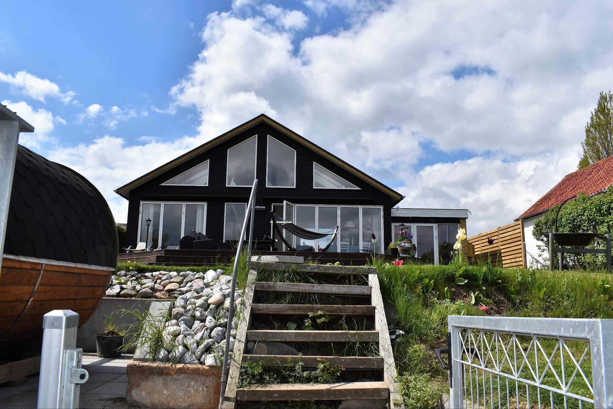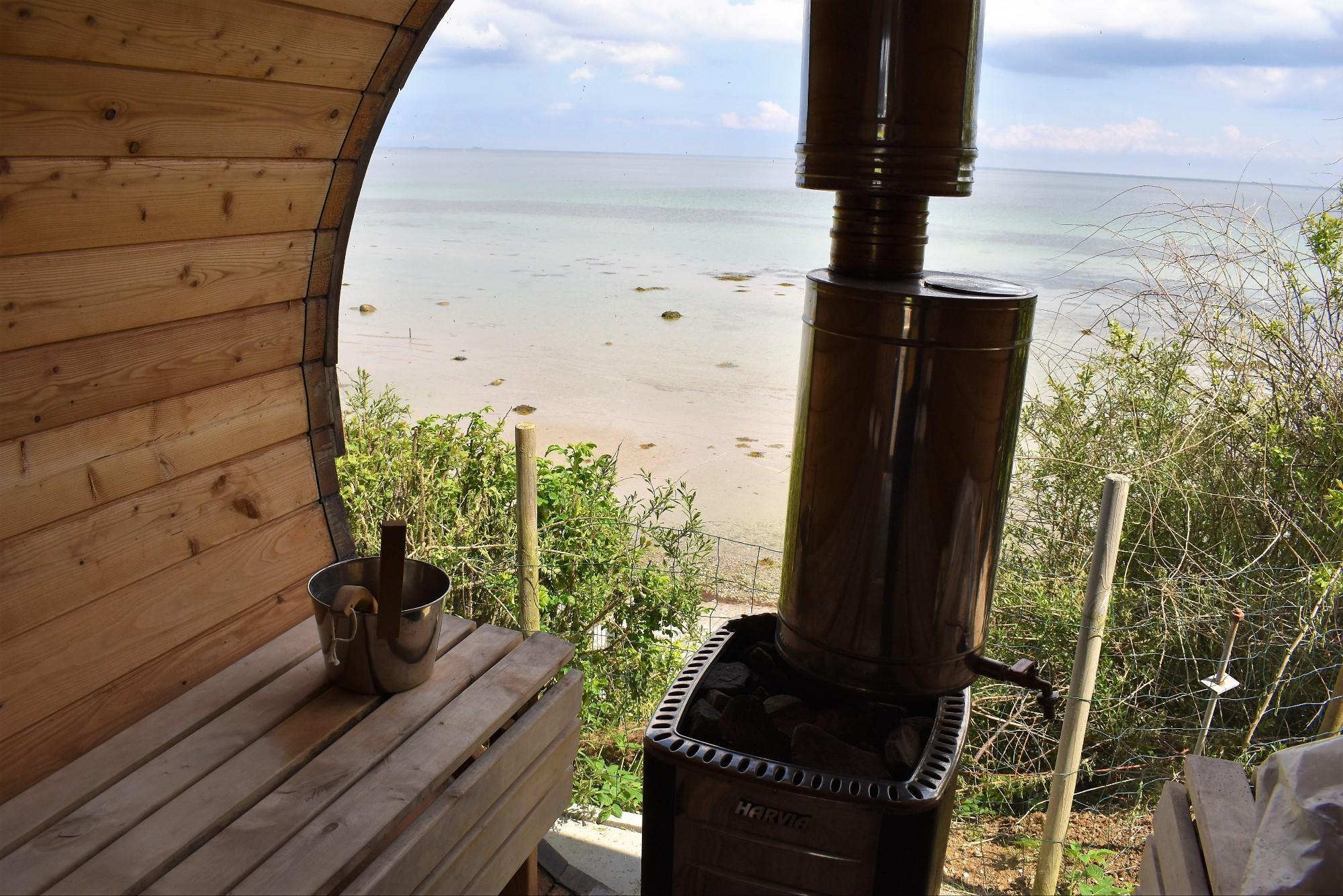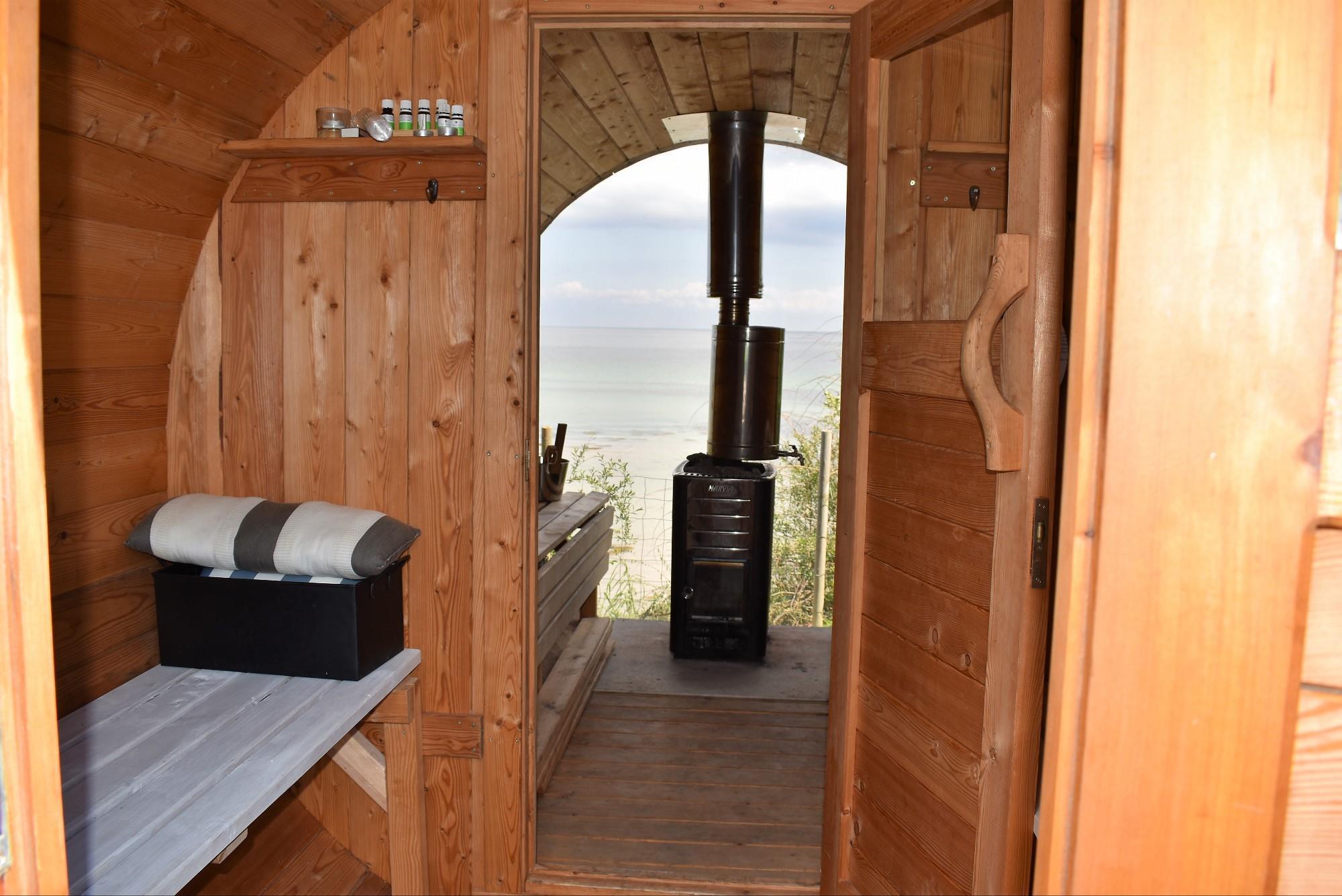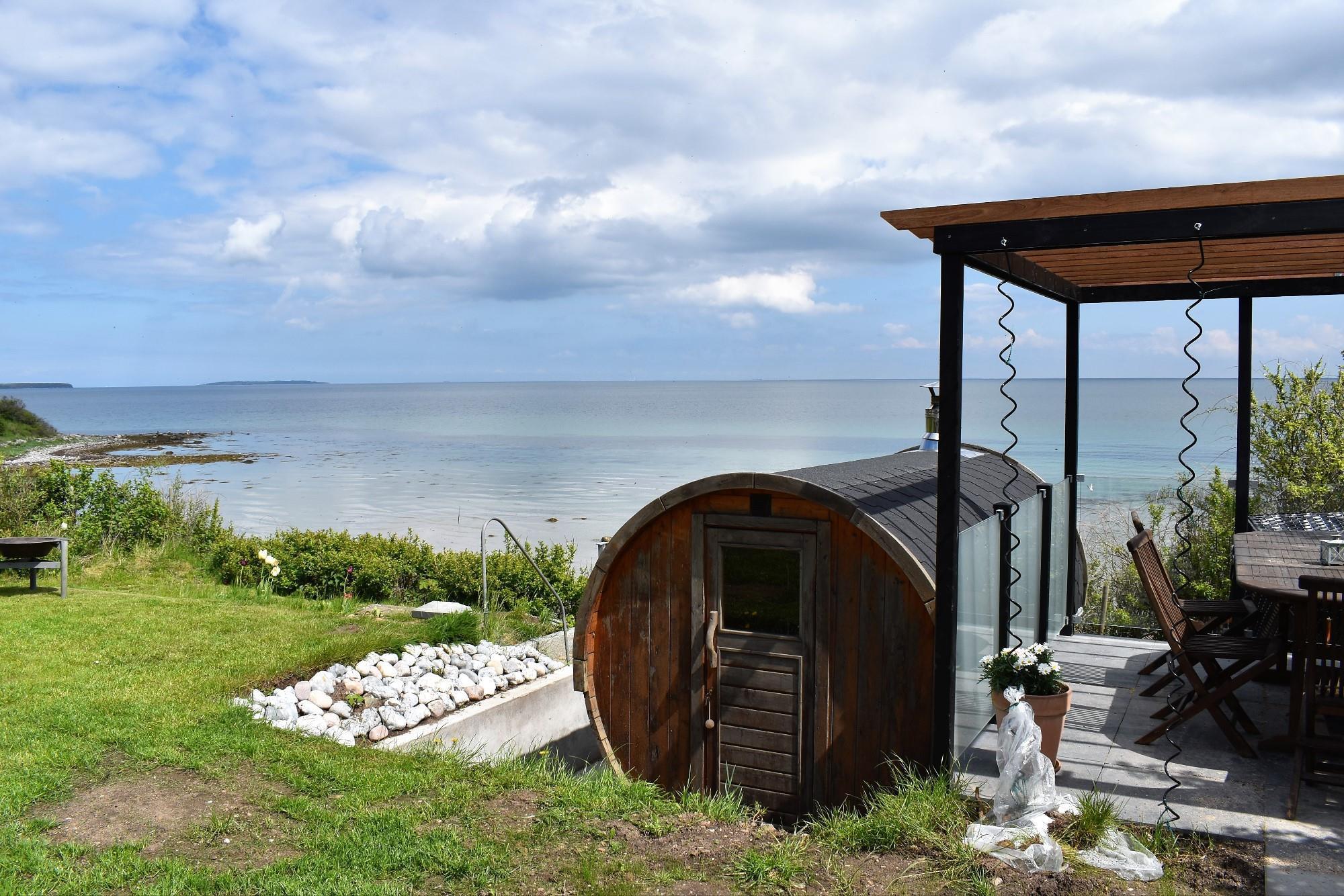Som en ekstra luksus har huset en fritstående, tøndeformet brændeopvarmet sauna. Her kan du nyde varmen og den spektakulære udsigt over vandet – en oplevelse i særklasse.