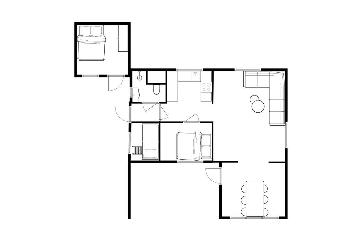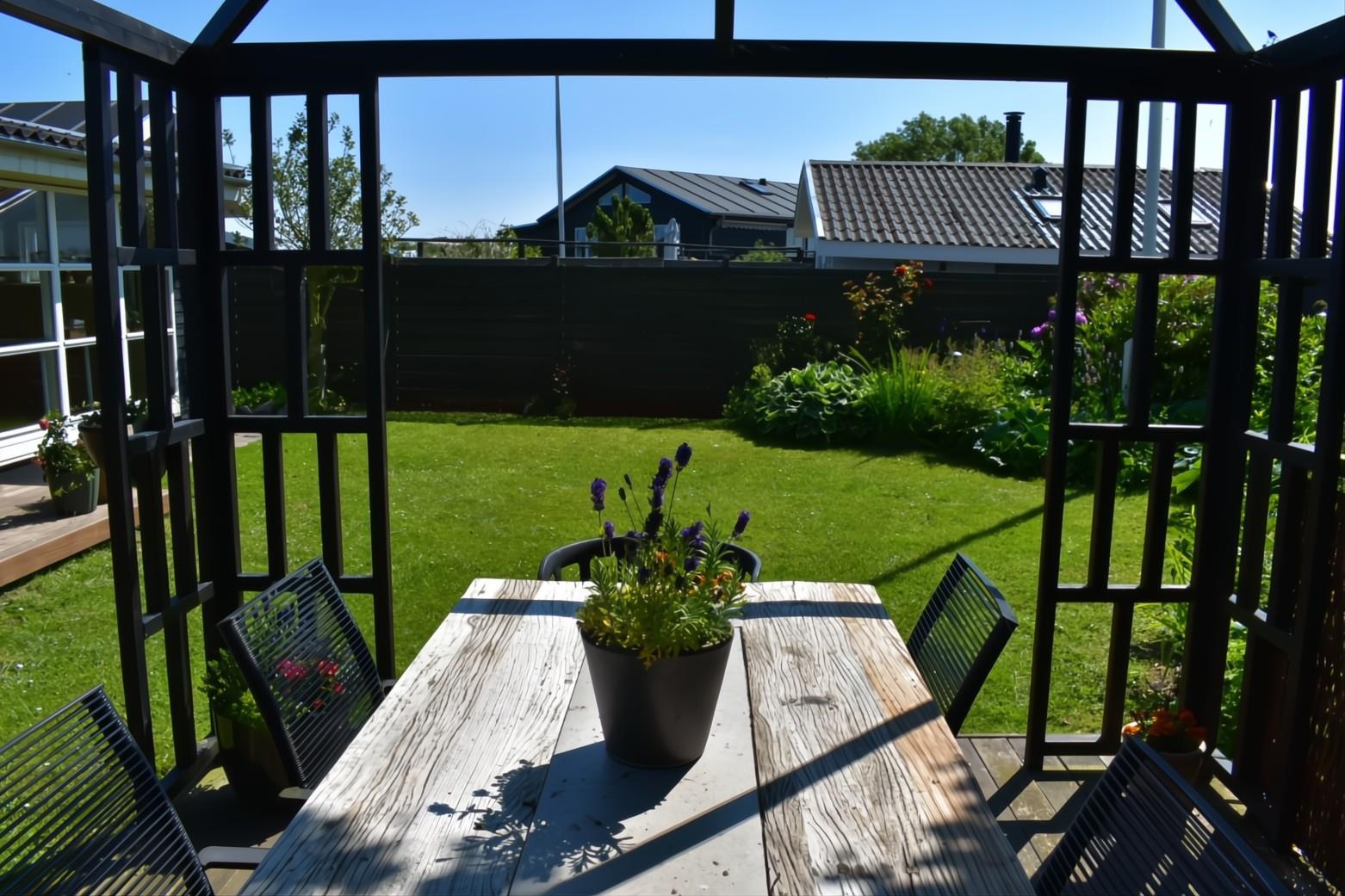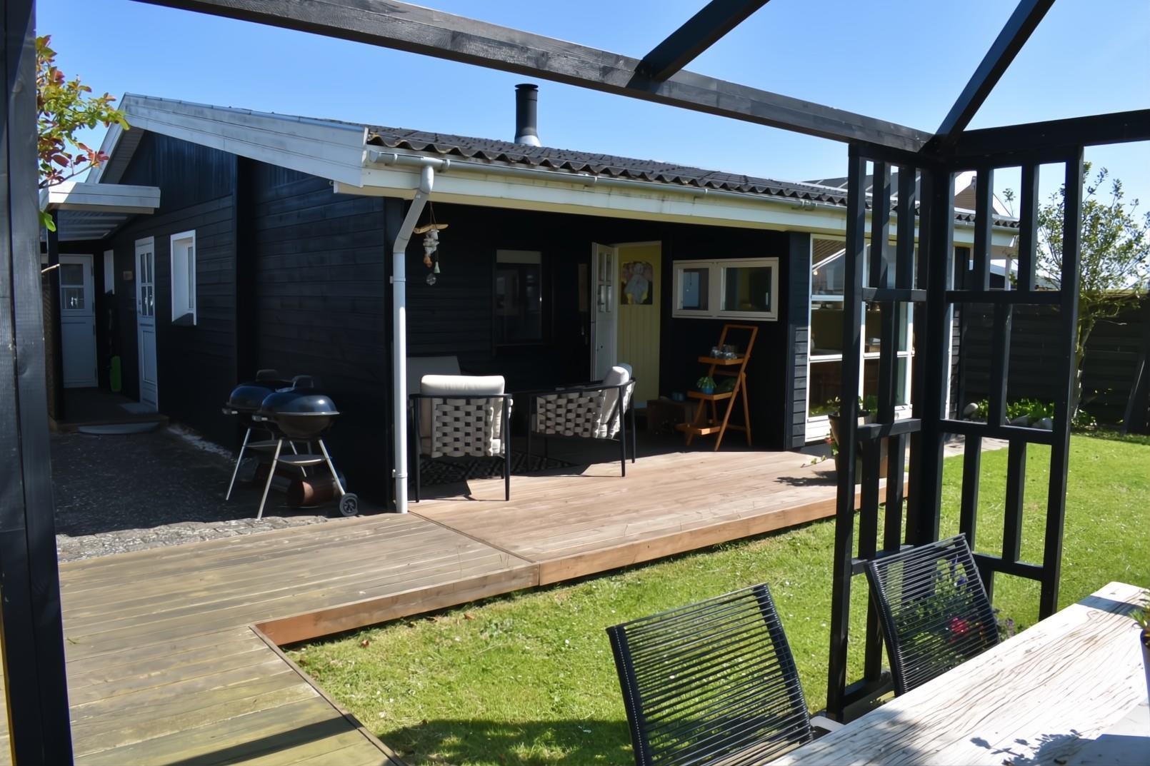 Sommerhuset har 3 soverum, et med en dobbeltseng (120cm) et lille soverum med 2 køjer samt et lyst og indbydende anneks med en dobbeltseng (140cm). Pænt badeværelse med brusekabine og vaskemaskine. Fra stuen er der adgang til en skøn, overdækket terrasse samt en pergola, hvor udelivet rigtig kan nydes. Grunden er helt indhegnet. Der er parkeringsplads ved fjorden ca. 50m fra huset.