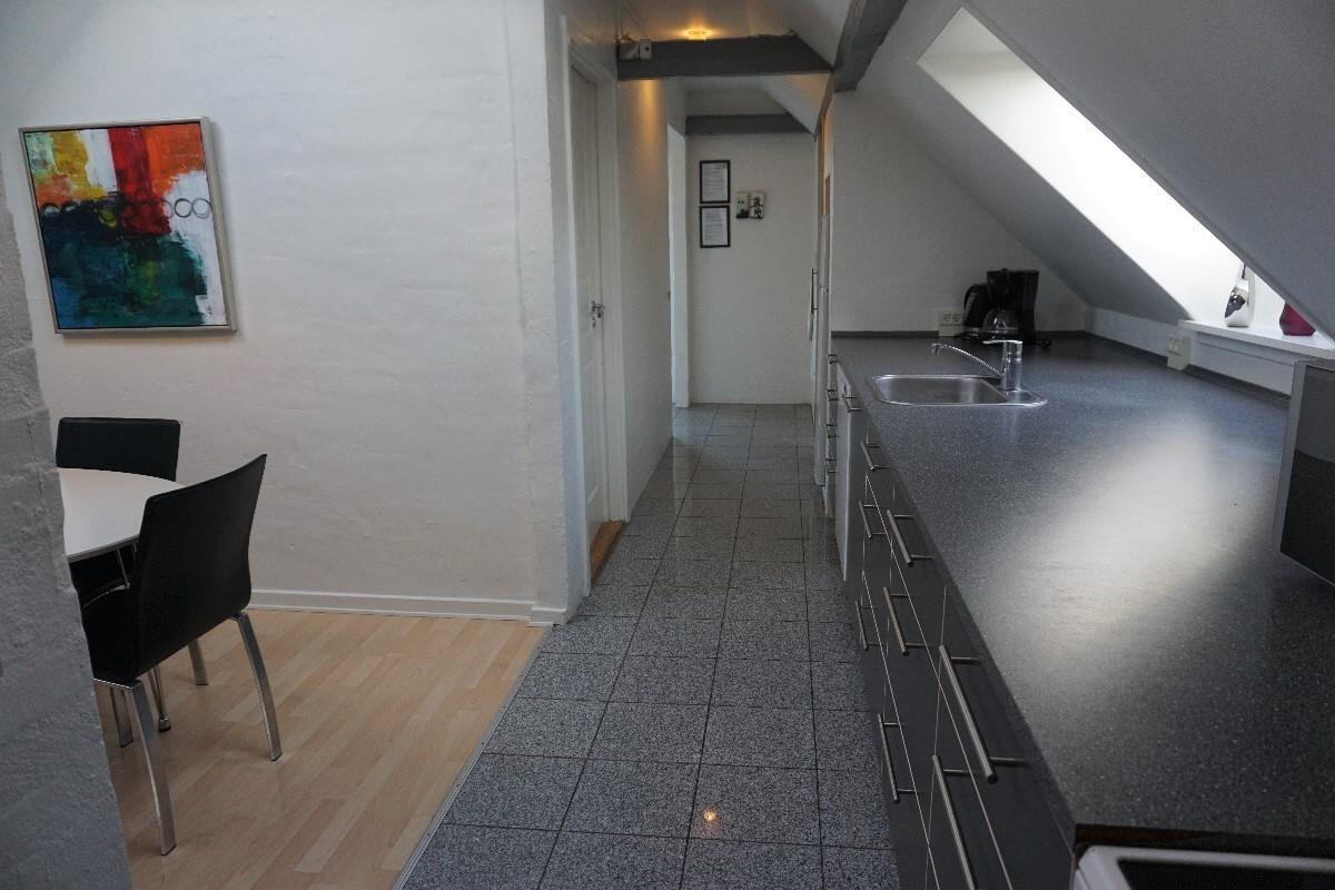 Dejlig, moderne ferielejlighed beliggende i det lille feriekompleks Kerteminde Byferie, blot 2km fra bymidten i Kerteminde og 800m fra den skønne strand. Lejligheden ligger på 1 sal over vores reception og er indrettet med stue i åben forbindelse med køkken, stort badeværelse, 2 soverum med henholdsvis 1 dobbeltseng + 2 enkeltsenge og 1 dobbeltseng. Nedenfor trappen til lejligheden er der terrasse med havemøbler til rådighed.