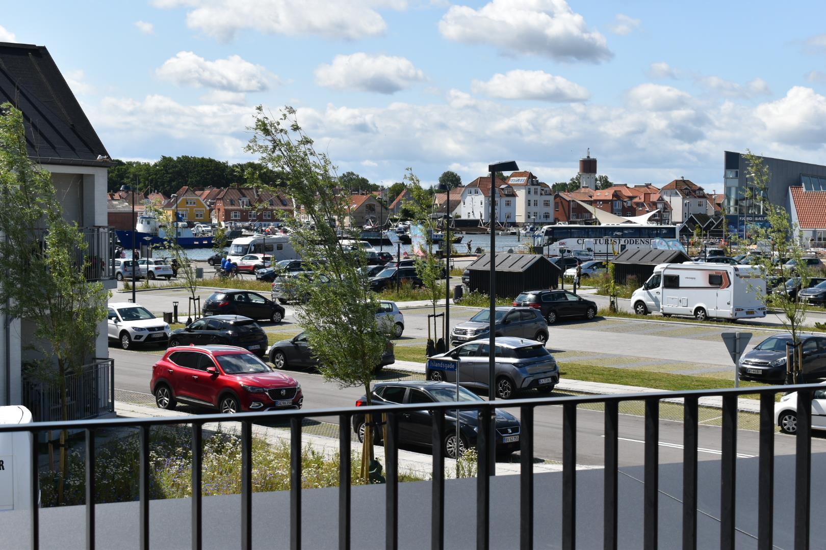 Fra stuen er der udgang til en privat terrasse, hvor komfortable havemøbler indbyder til afslapning og hyggelige stunder. Fra terrassen er der kig til havnen og byen.