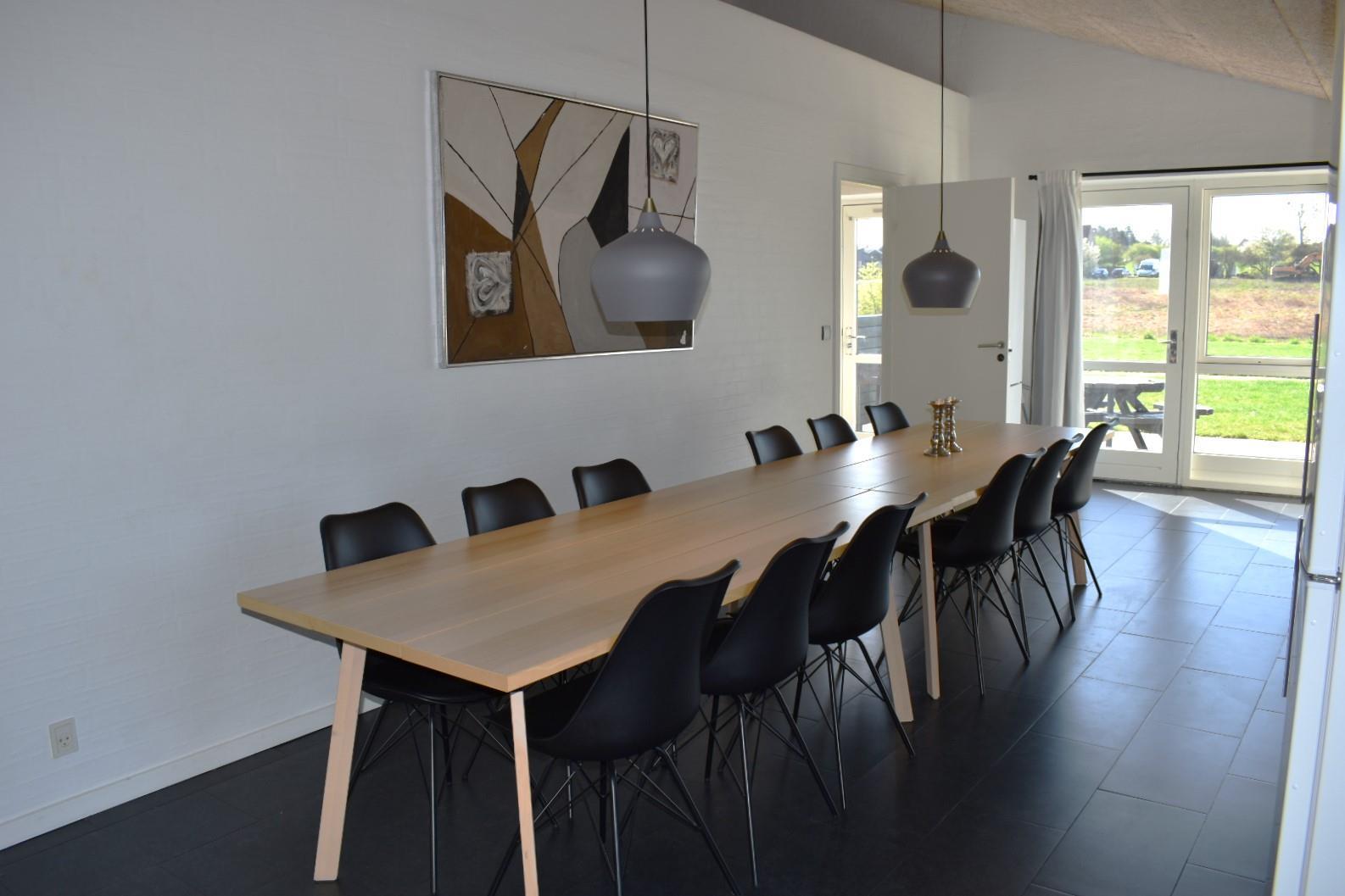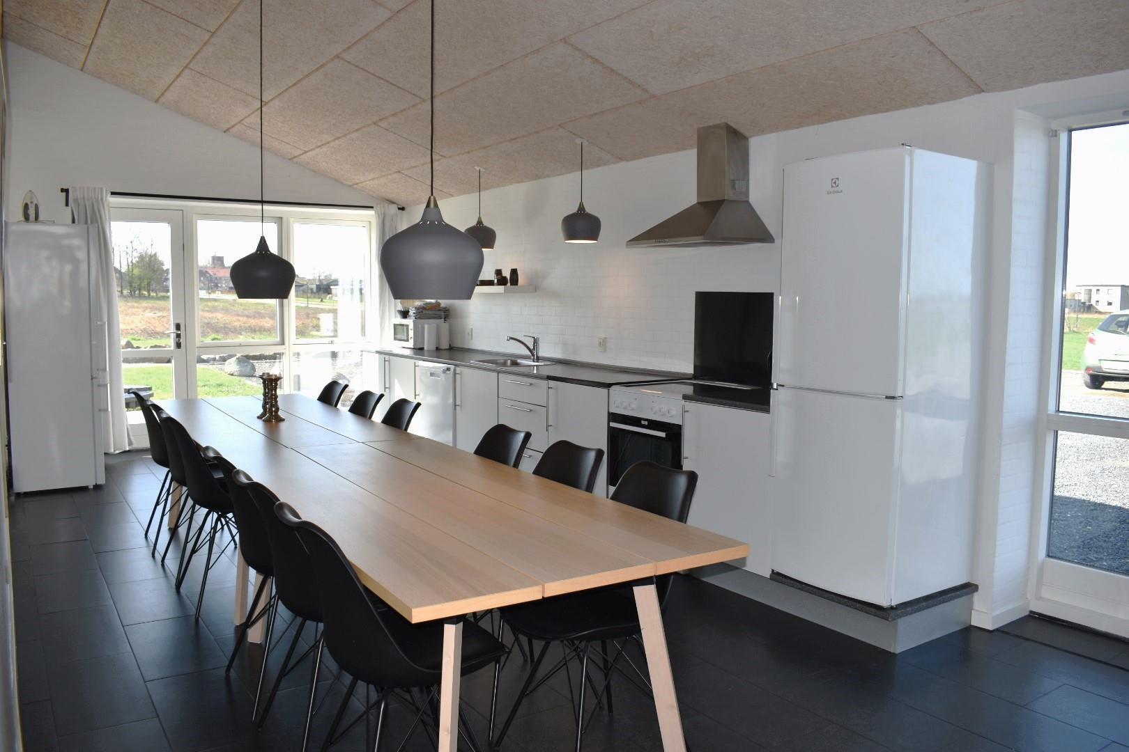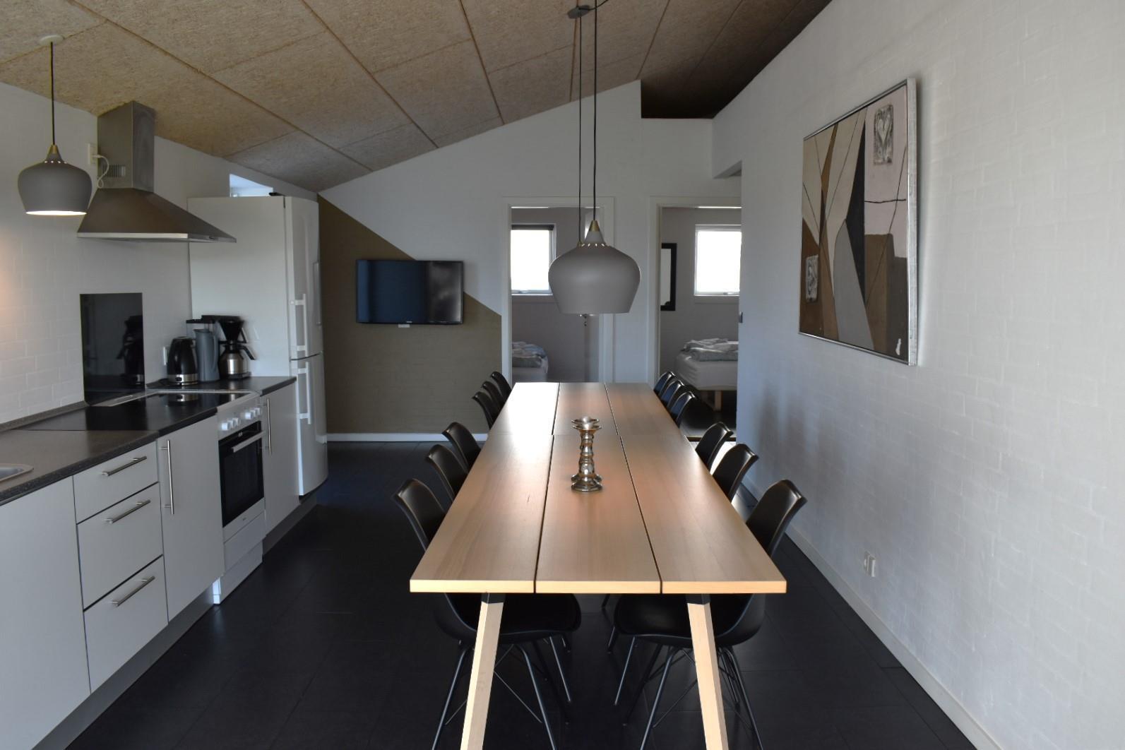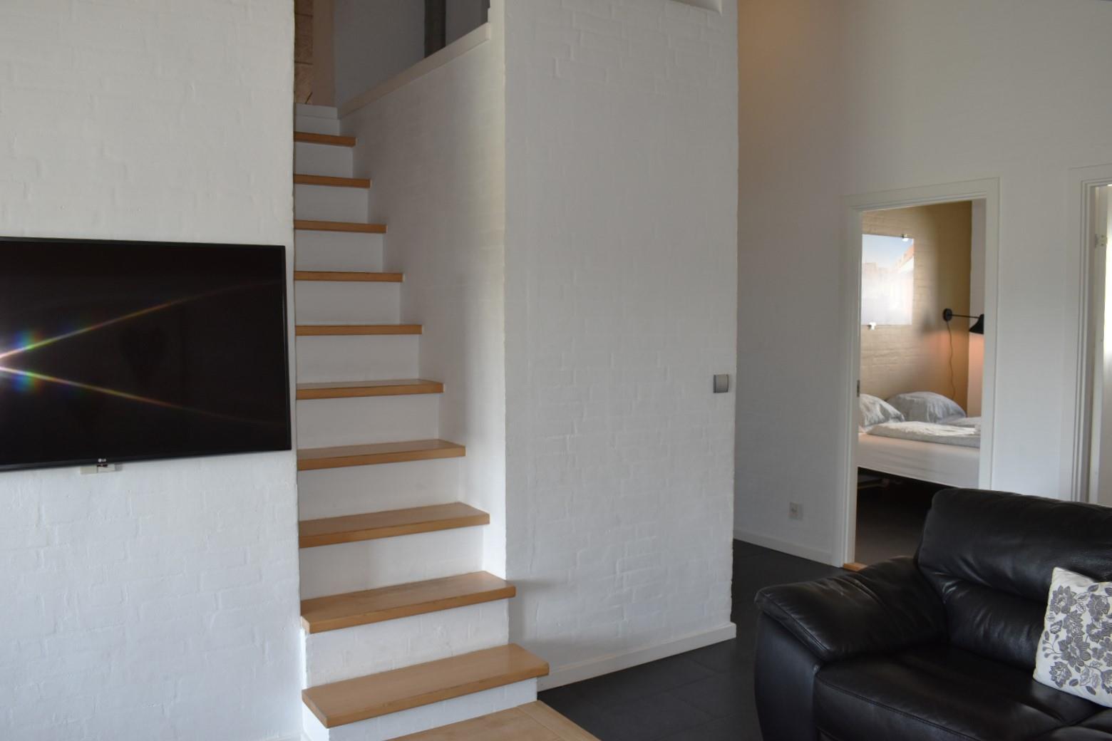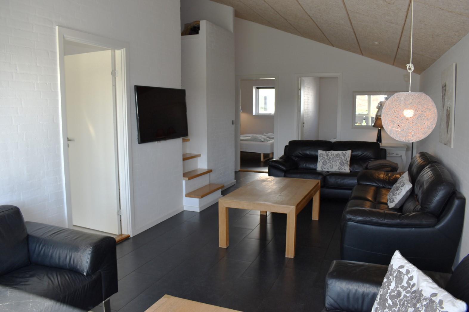 Stor, moderne ferielejlighed til 12 personer beliggende i udkanten af den idylliske fiskerby Kerteminde. Lejligheden er indrettet med stor stue med adgang til stor hems med 4 madrasser. Spisestue med åbent køkken, 2 badeværelser, hvoraf der er spa og sauna i det ene. Gæstetoilet samt 4 soverum med dobbeltseng. Fra stue og køkken er der udgang til en privat terrasse med udsigt til legepladsen og marker.